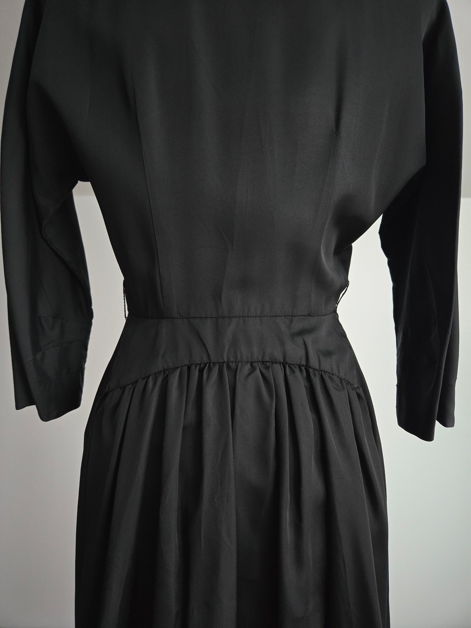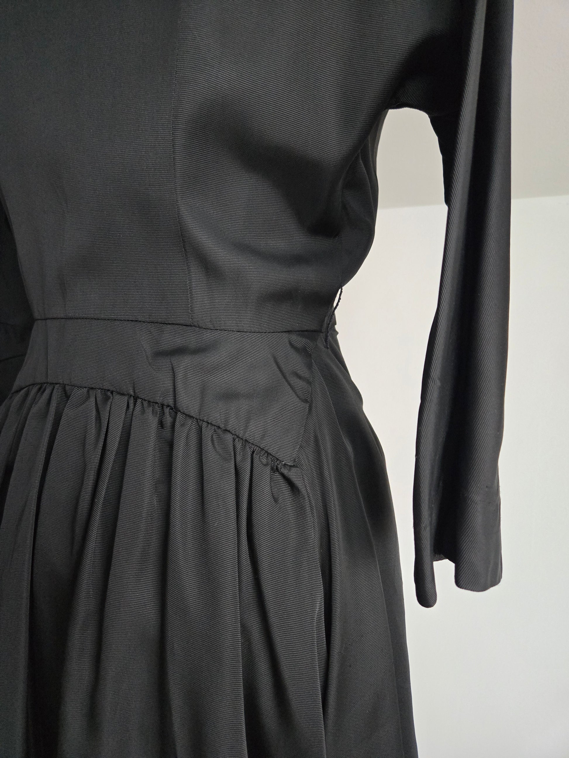 Vintage 1940s Black Satin Day Dress - Small