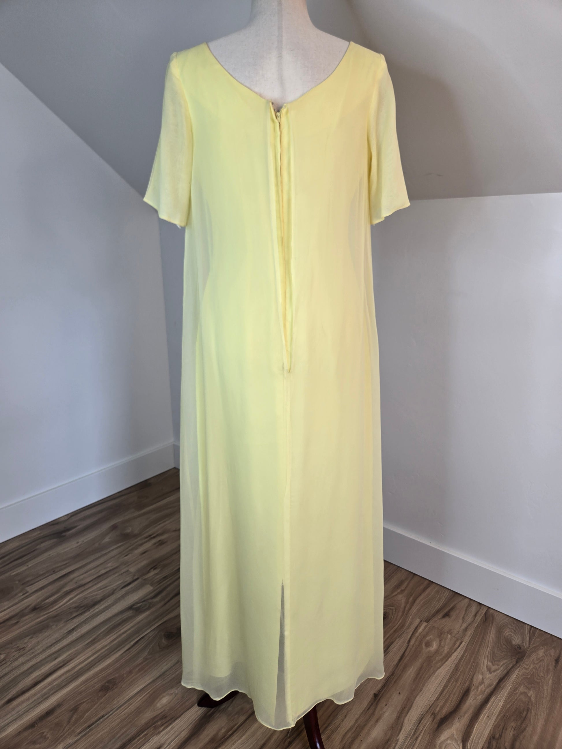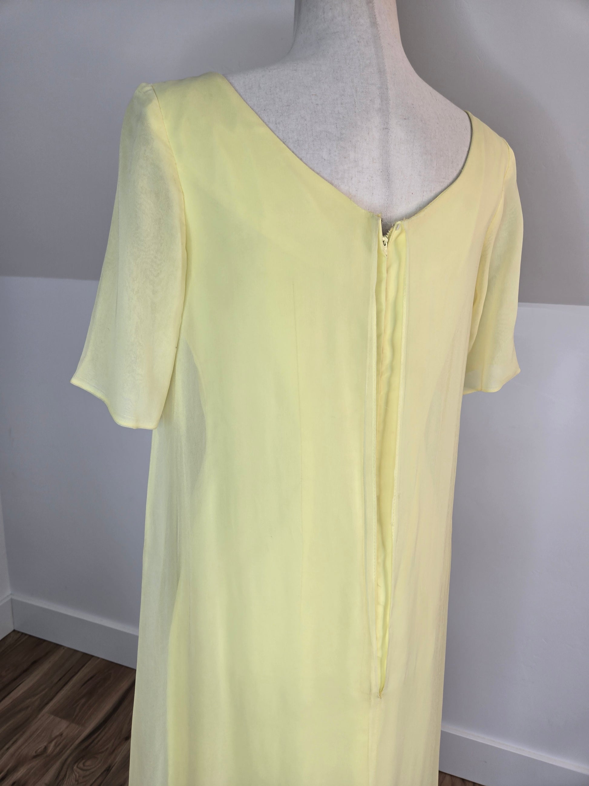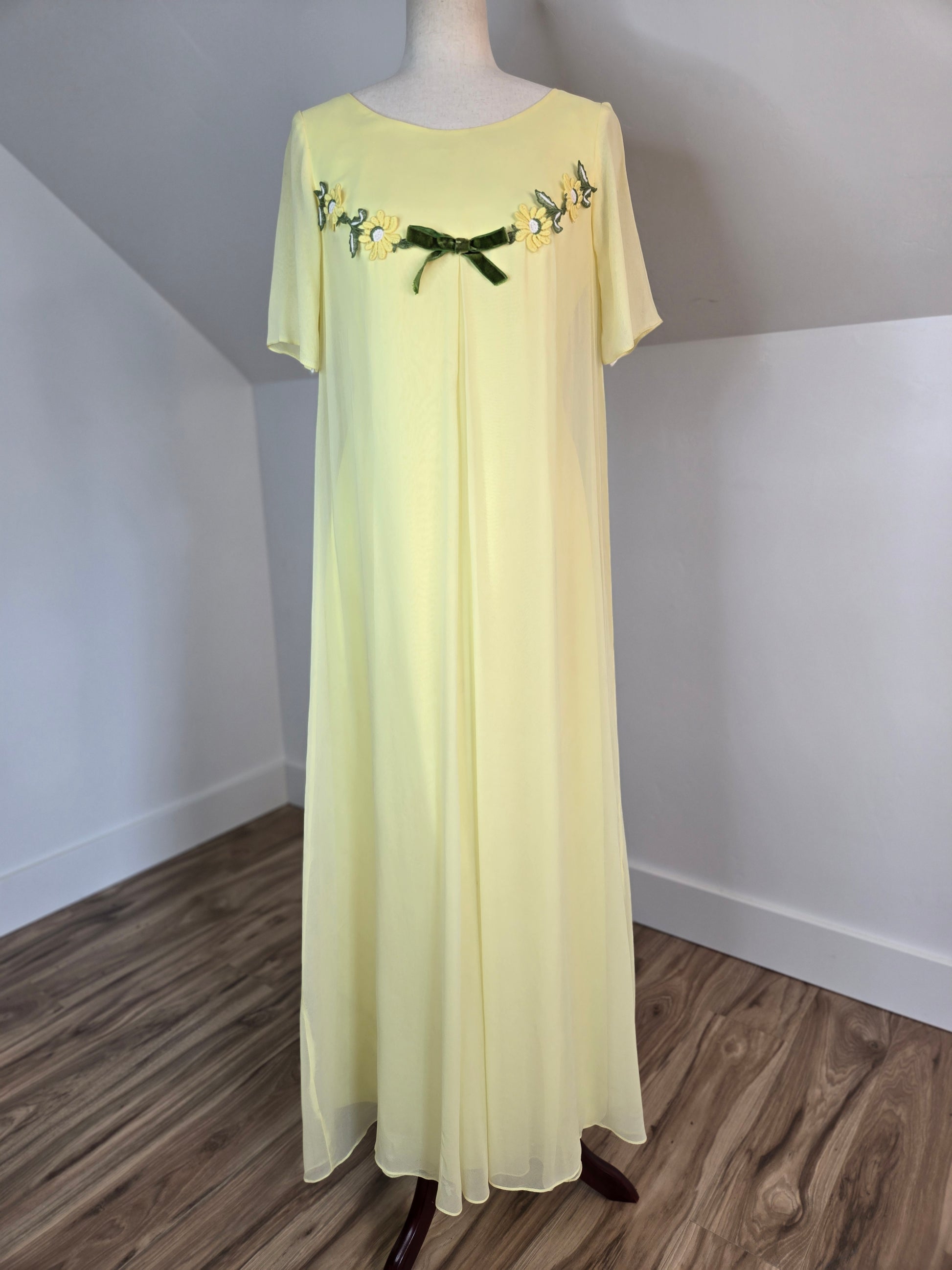 Jaks 1960s Yellow Chiffon Formal Dress with Velvet Bow - medium