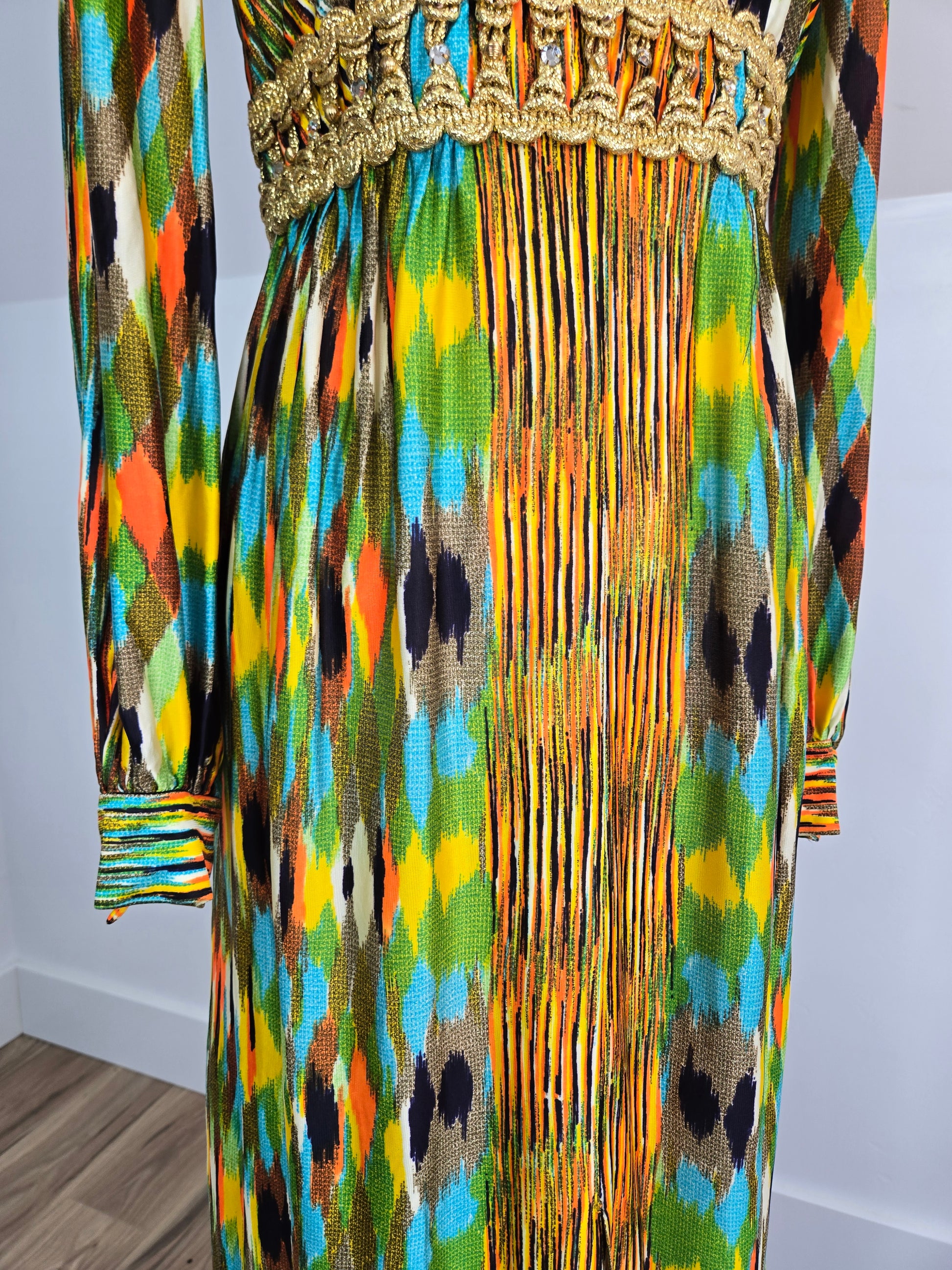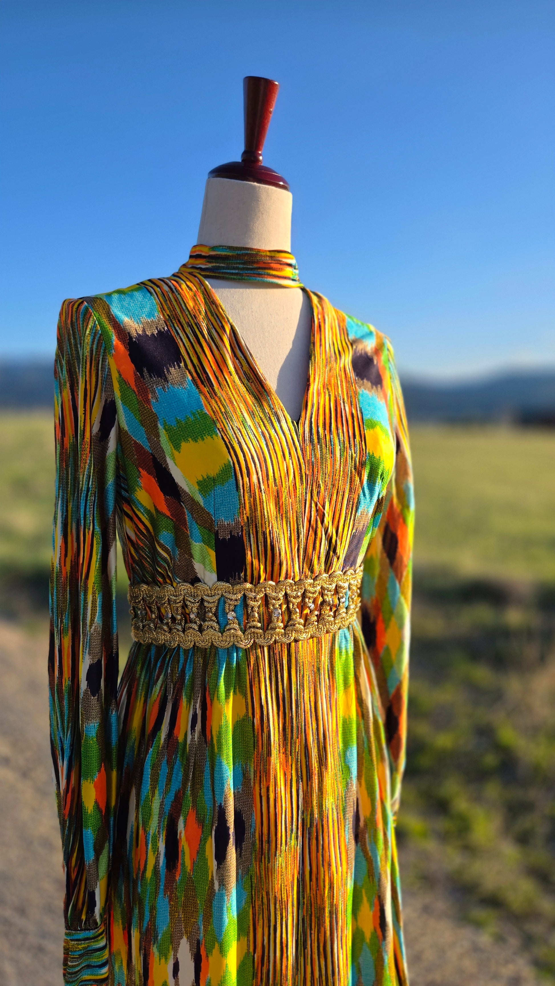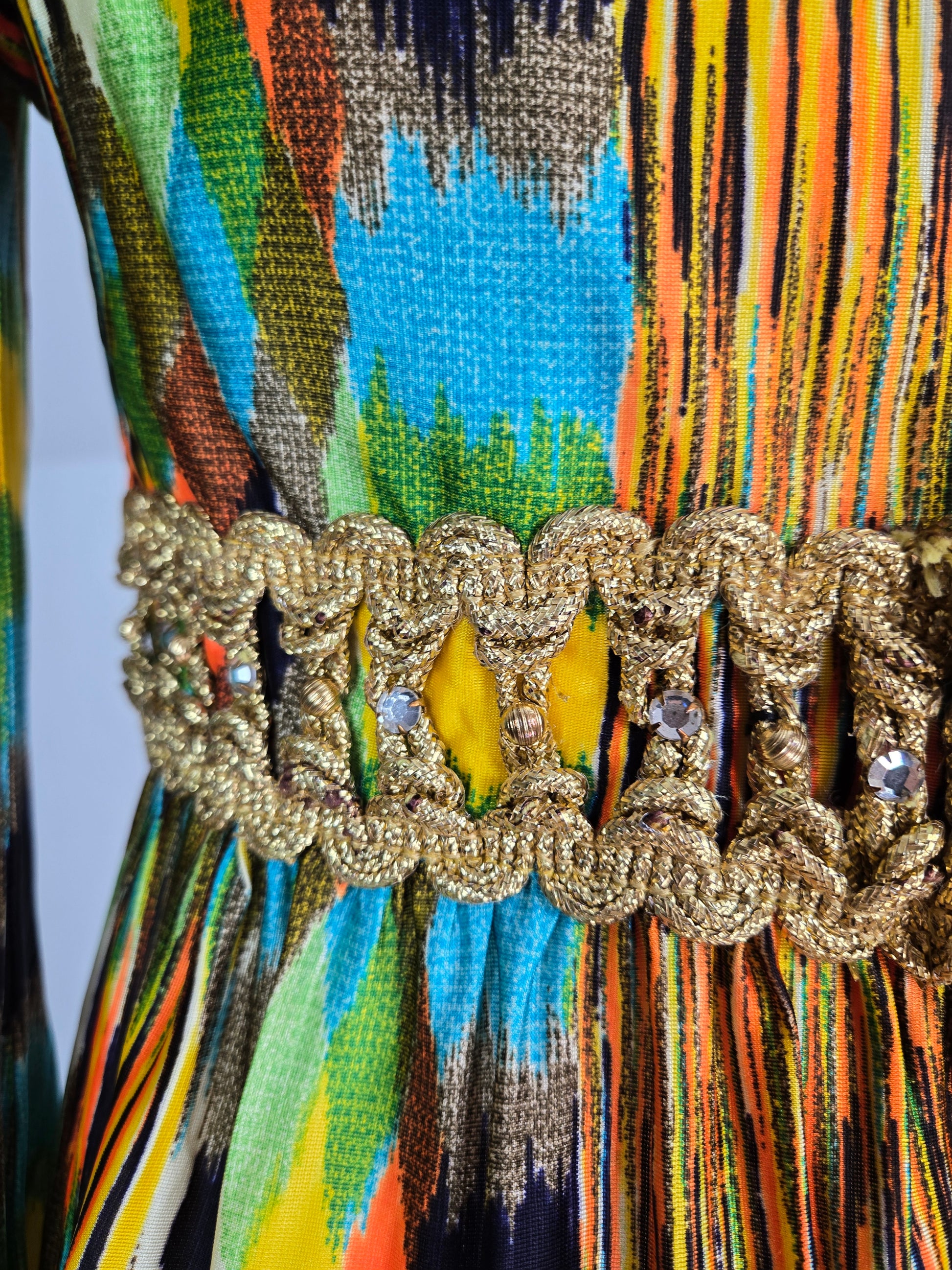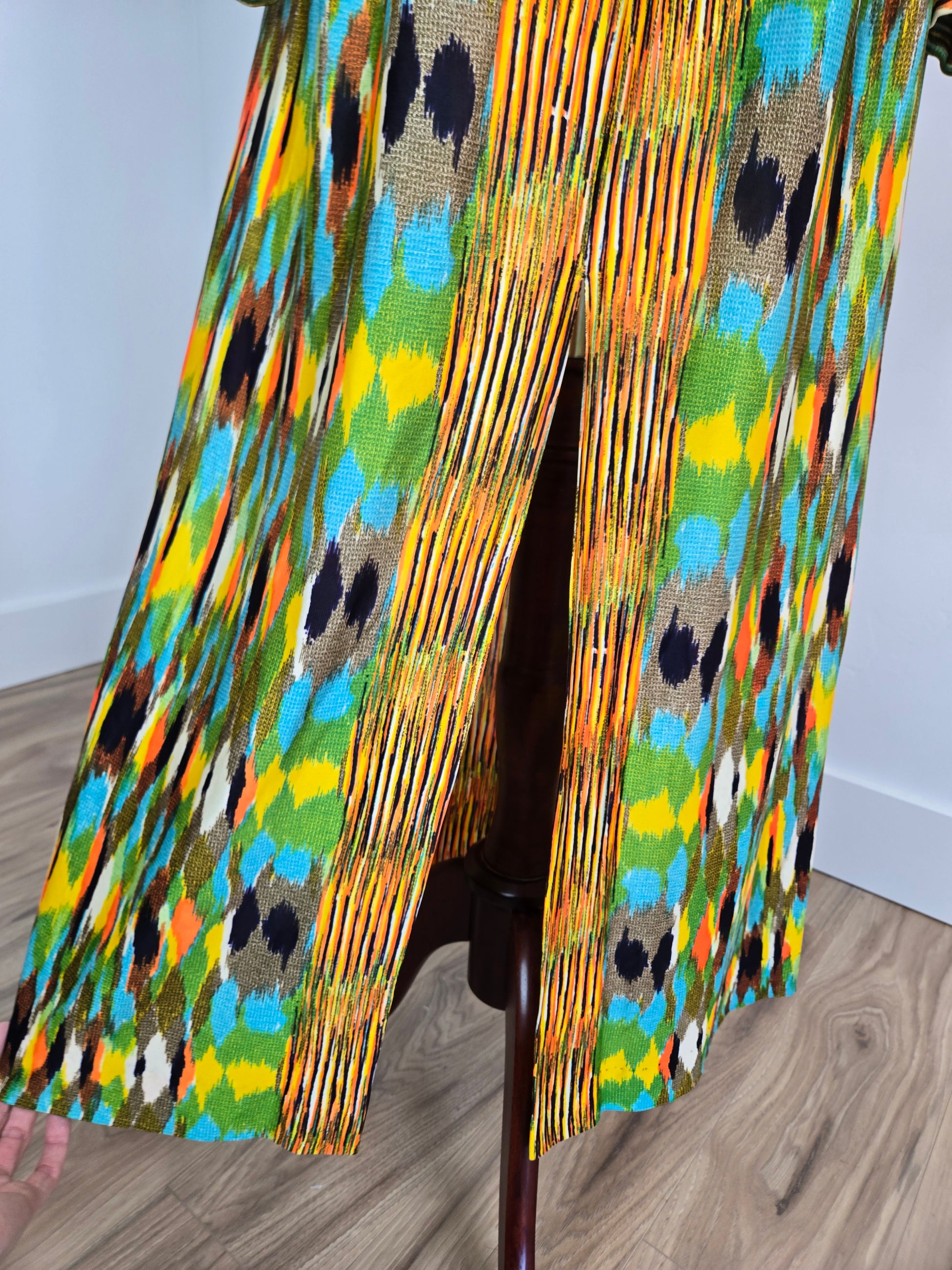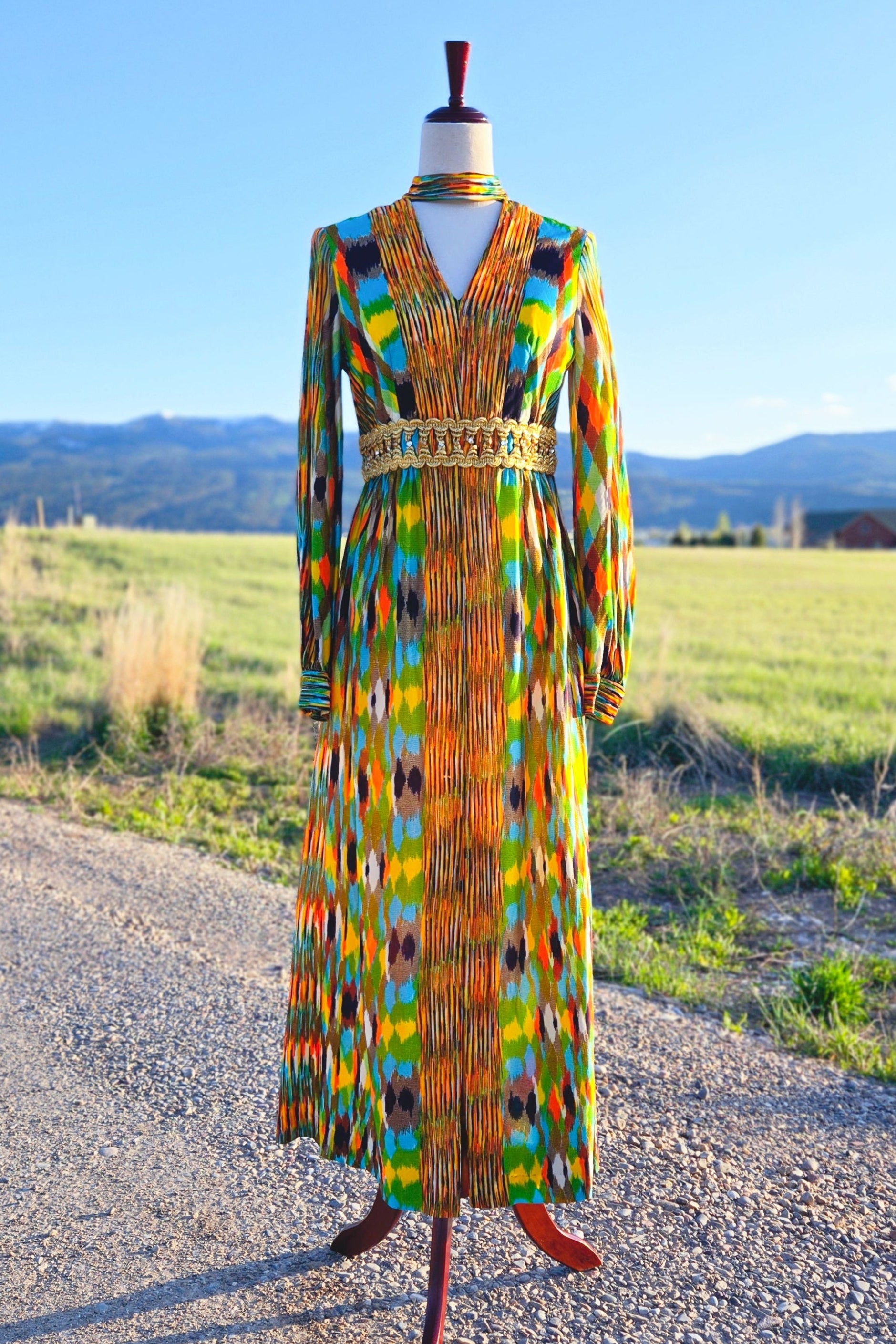 1970s Psychedelic Print Dress with Goddess Waist Belt - small/medium