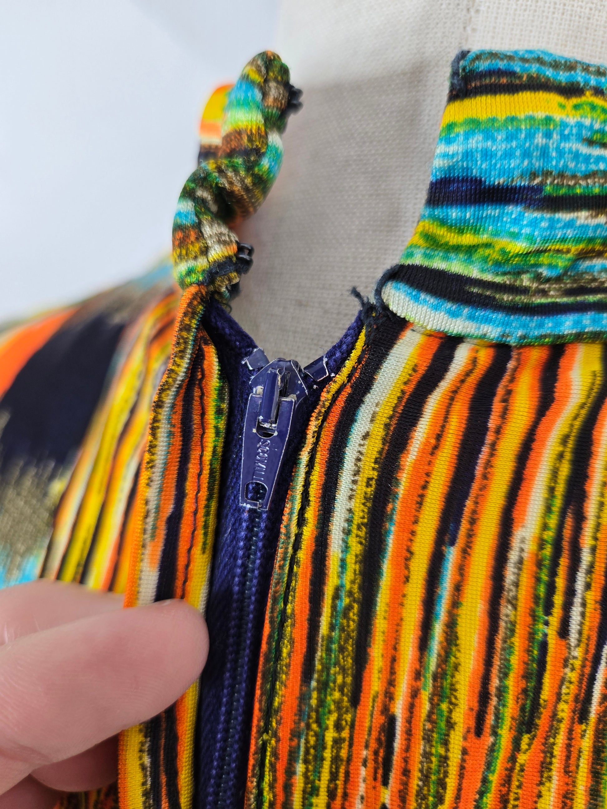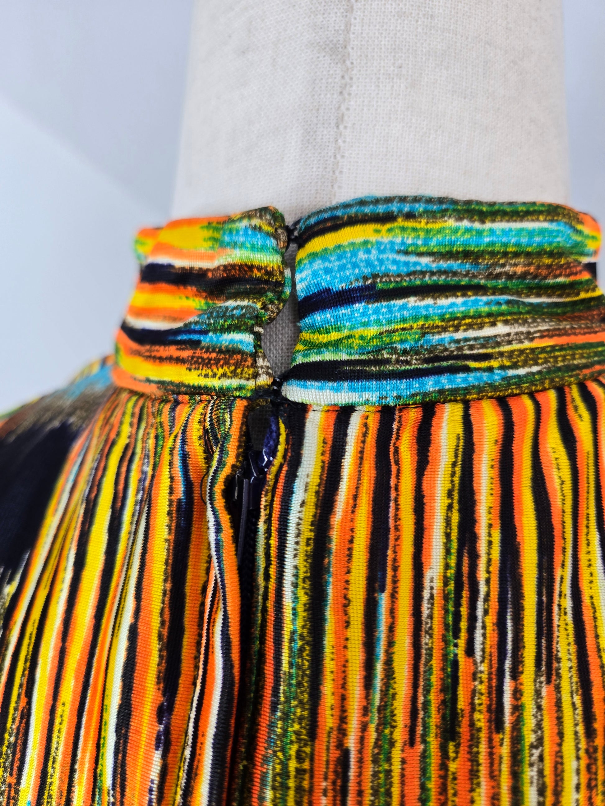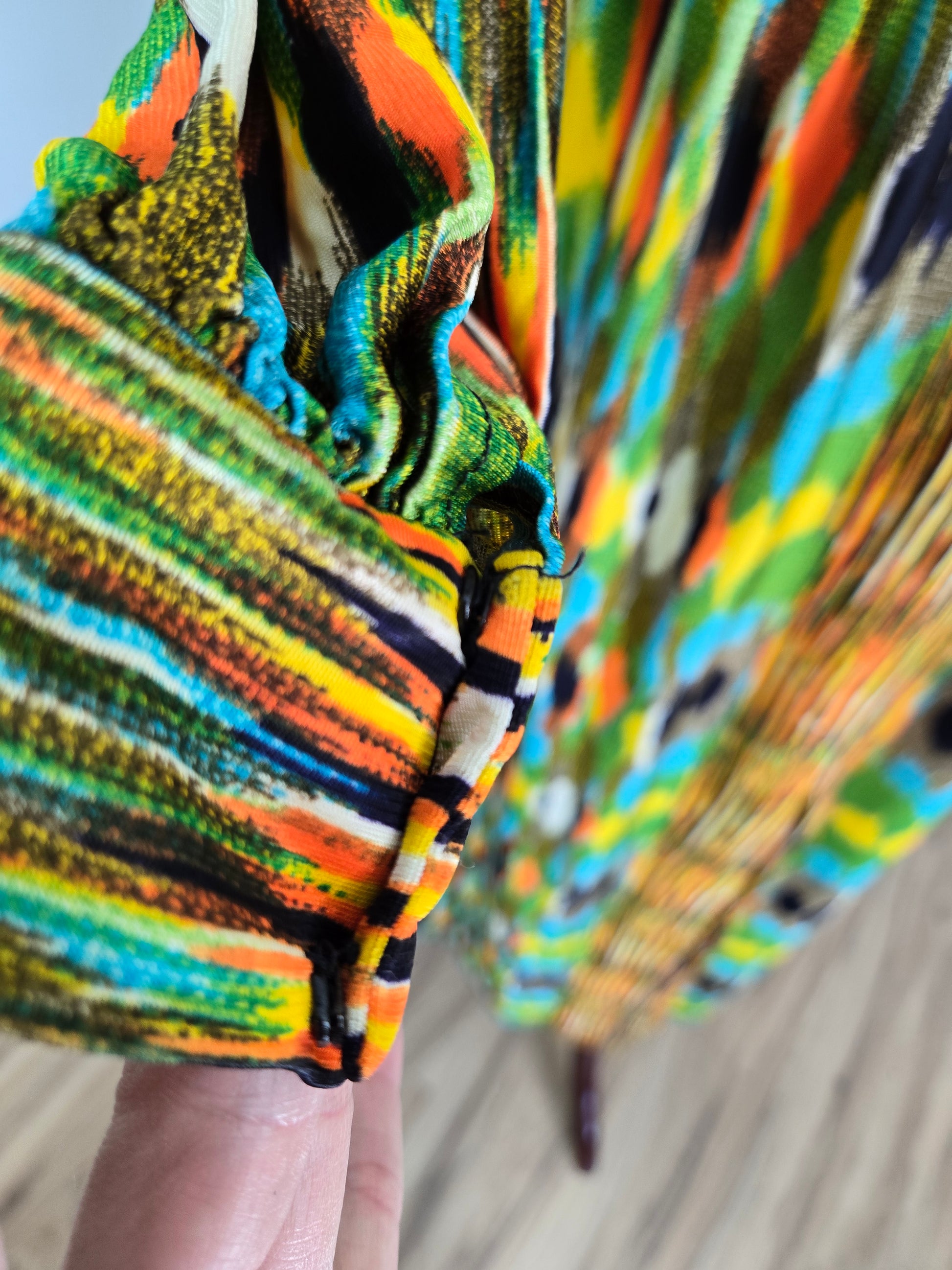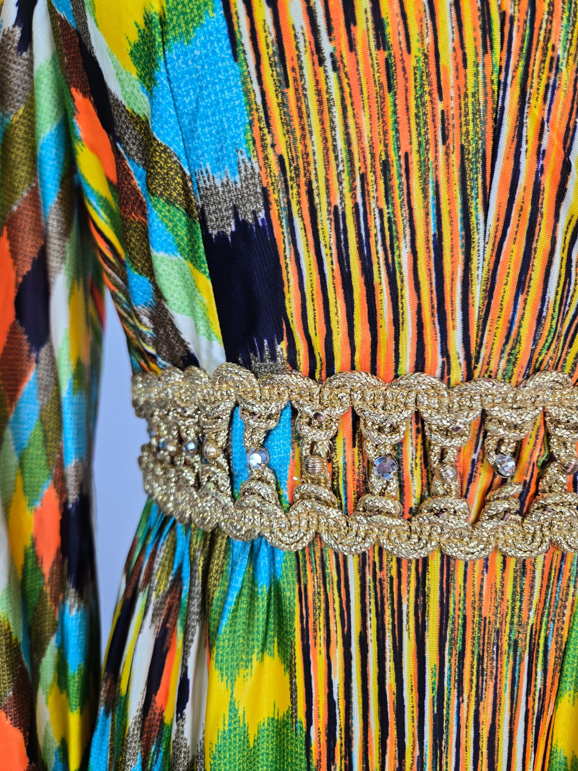 1970s Psychedelic Print Dress with Goddess Waist Belt - small/medium