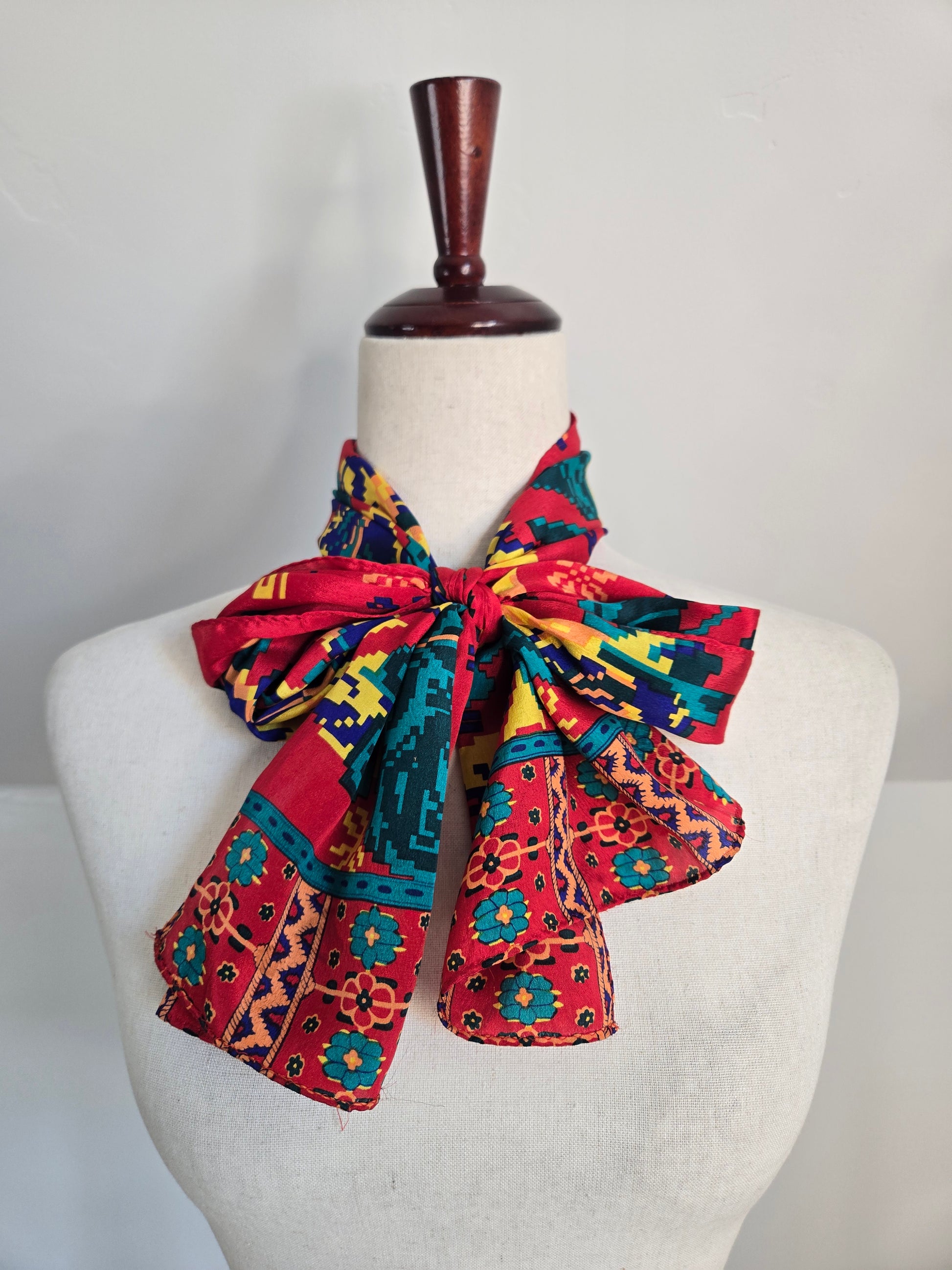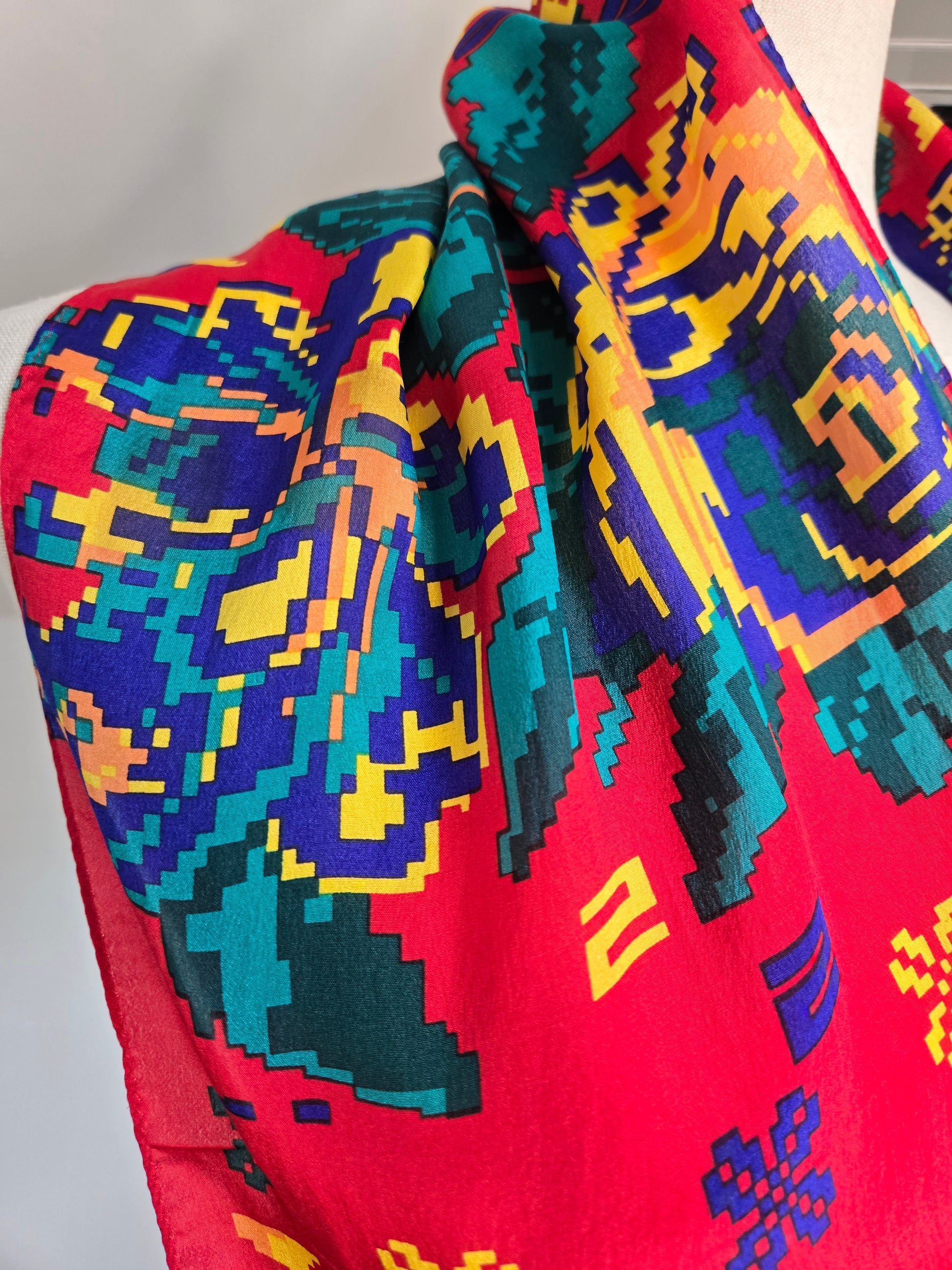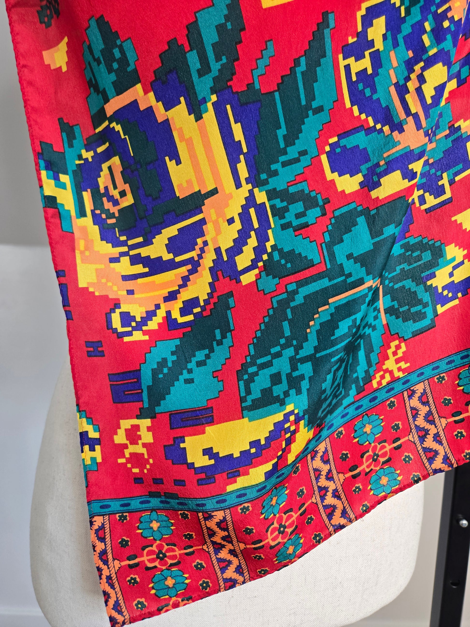 Vintage 100% Silk Made in Japan Red Digi Floral Scarf