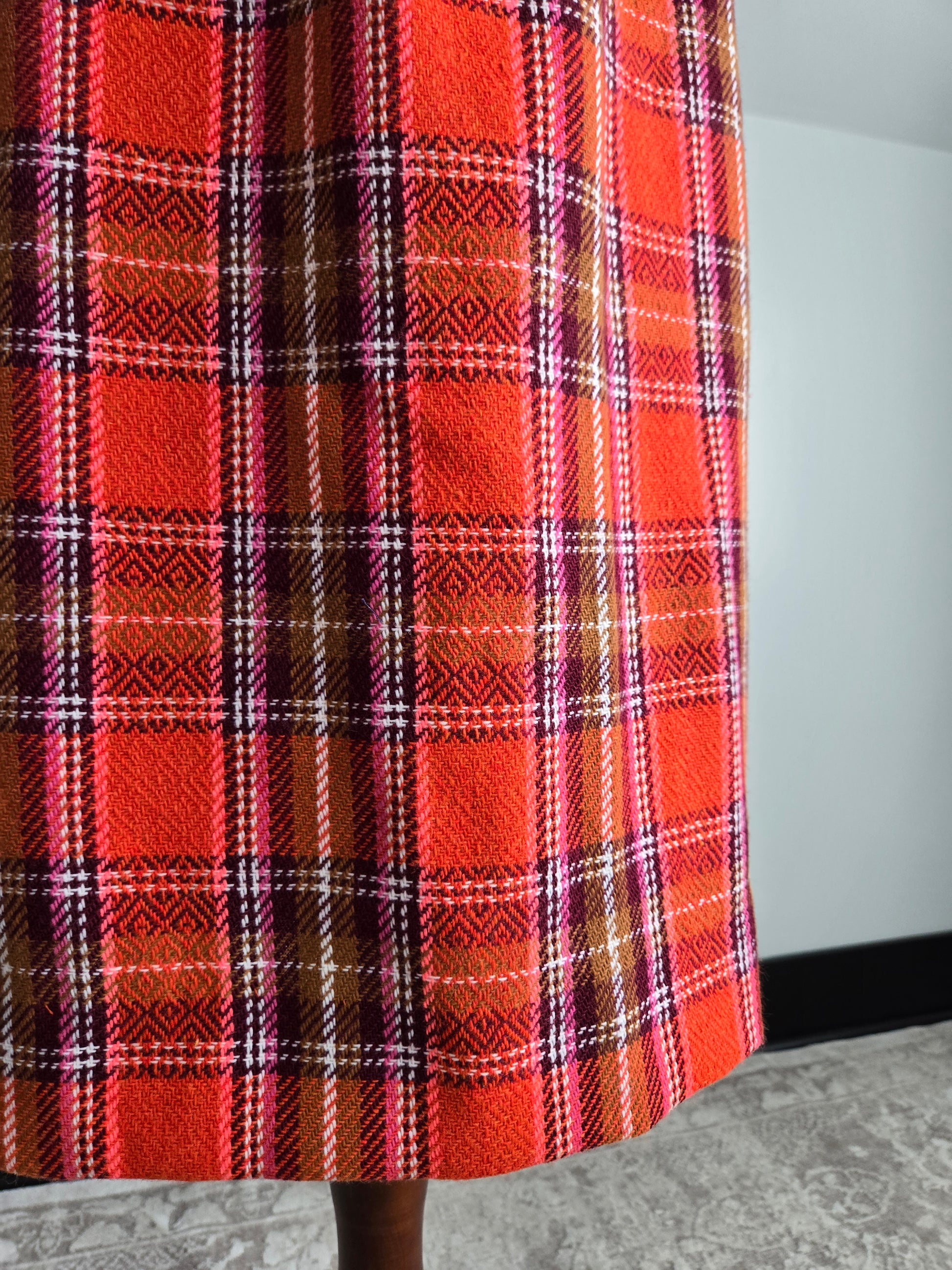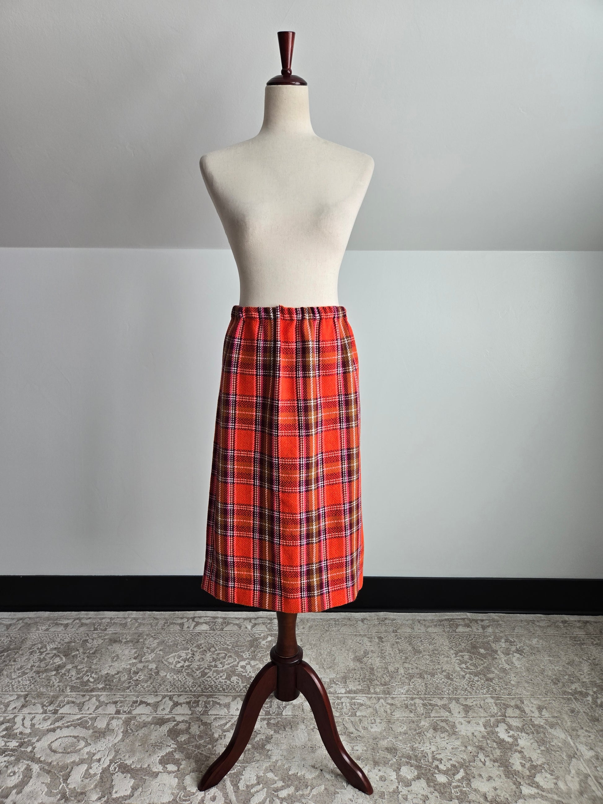 Vintage 70s Polyknit Plaid Skirt - W28-34"