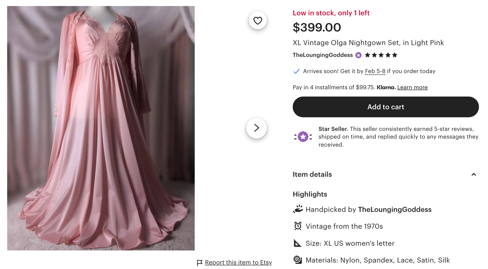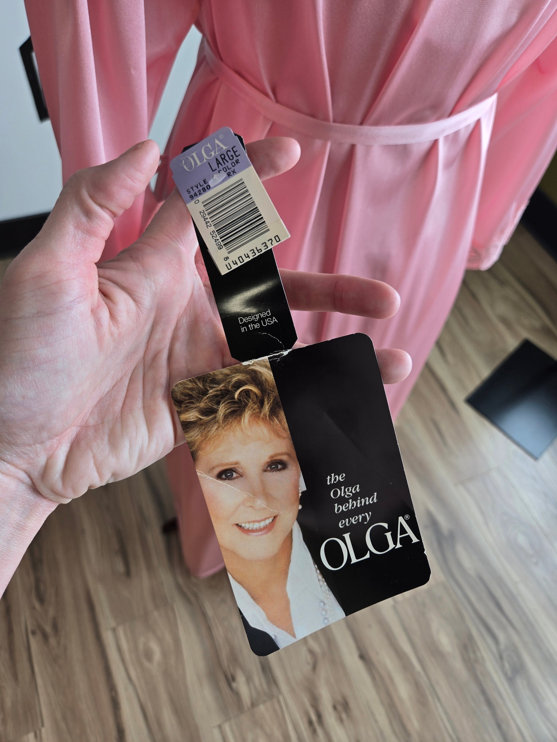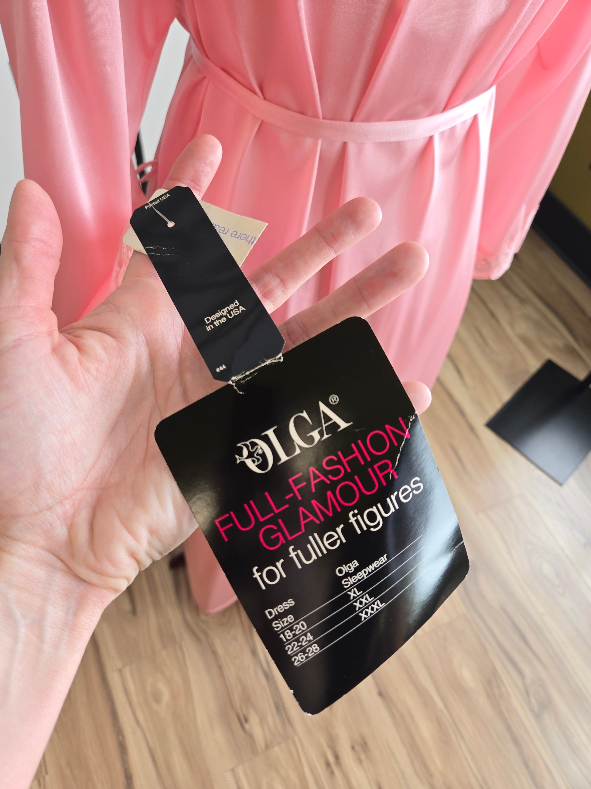 Deadstock vintage authentic Olga pink robe with belt and it's matching classic butterfly lace Olga maxi peignoir maxi dress. This is a very sought after brand and silhouette with the lace detail at center front. This style has been knocked off by many brands, but no one does it better than Olga as the original of this design. Robe is in perfect condition and has its original tags, and the dress is in amazing condition with on a few minor snag marks on the back side of the top of the dress (I am pointing at it in a picture). This is a gorgeous set!