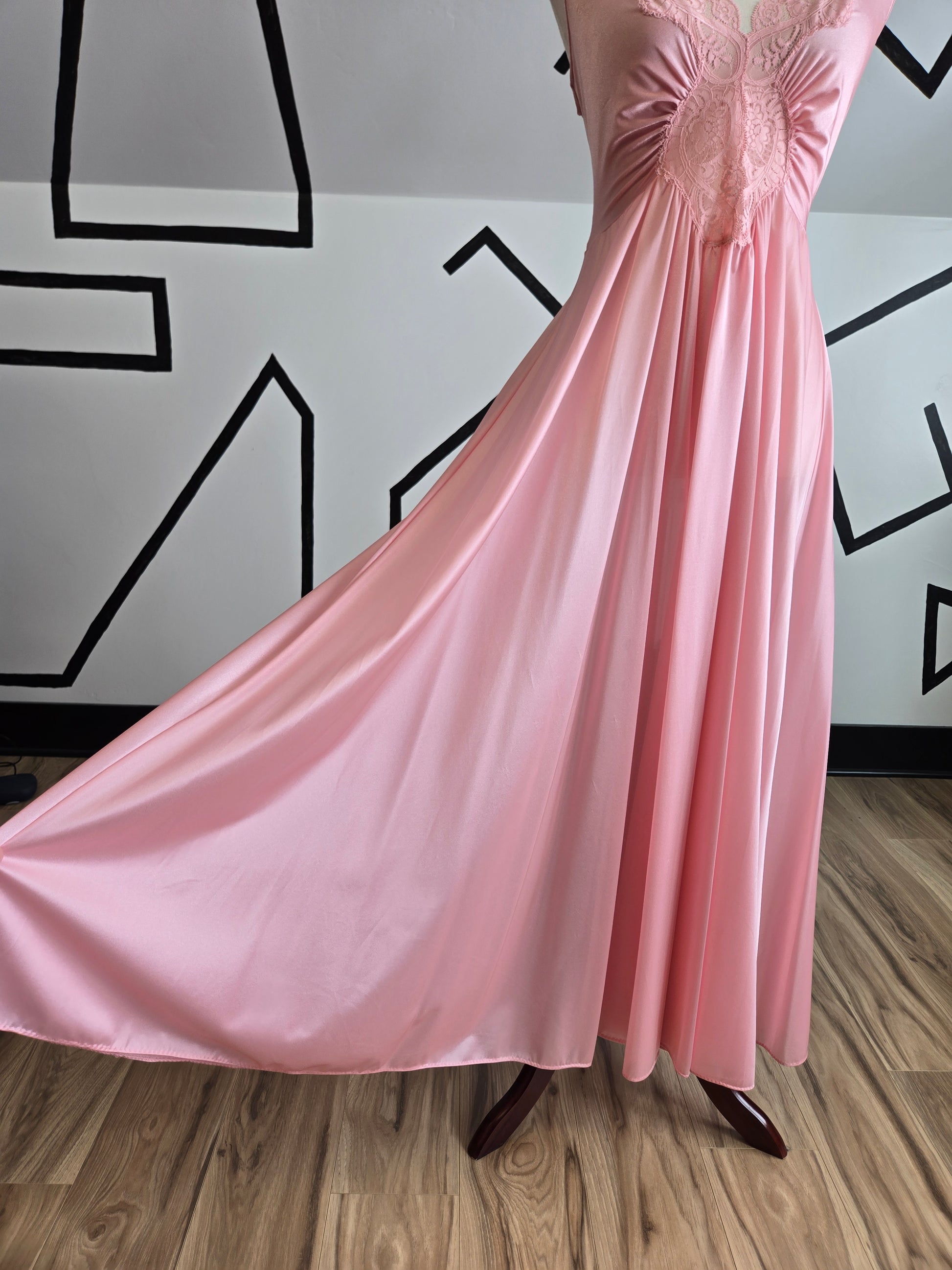 Authentic Olga Deadstock 70s Light Pink Robe with Butterfly Lace Peignoir - large