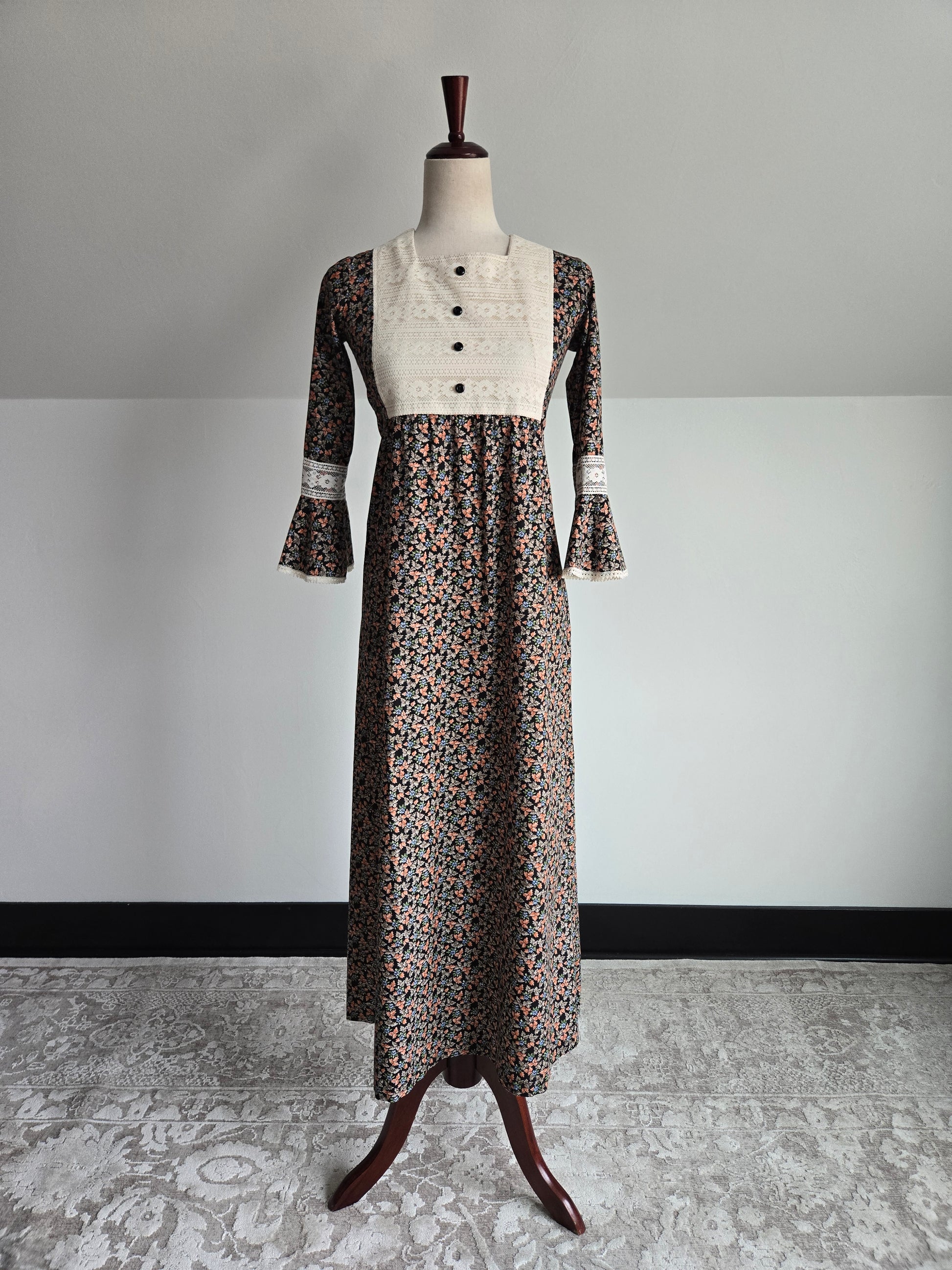 Wendy Bird Vintage 1960s Prairie Dress With Lace Bib - XS/S