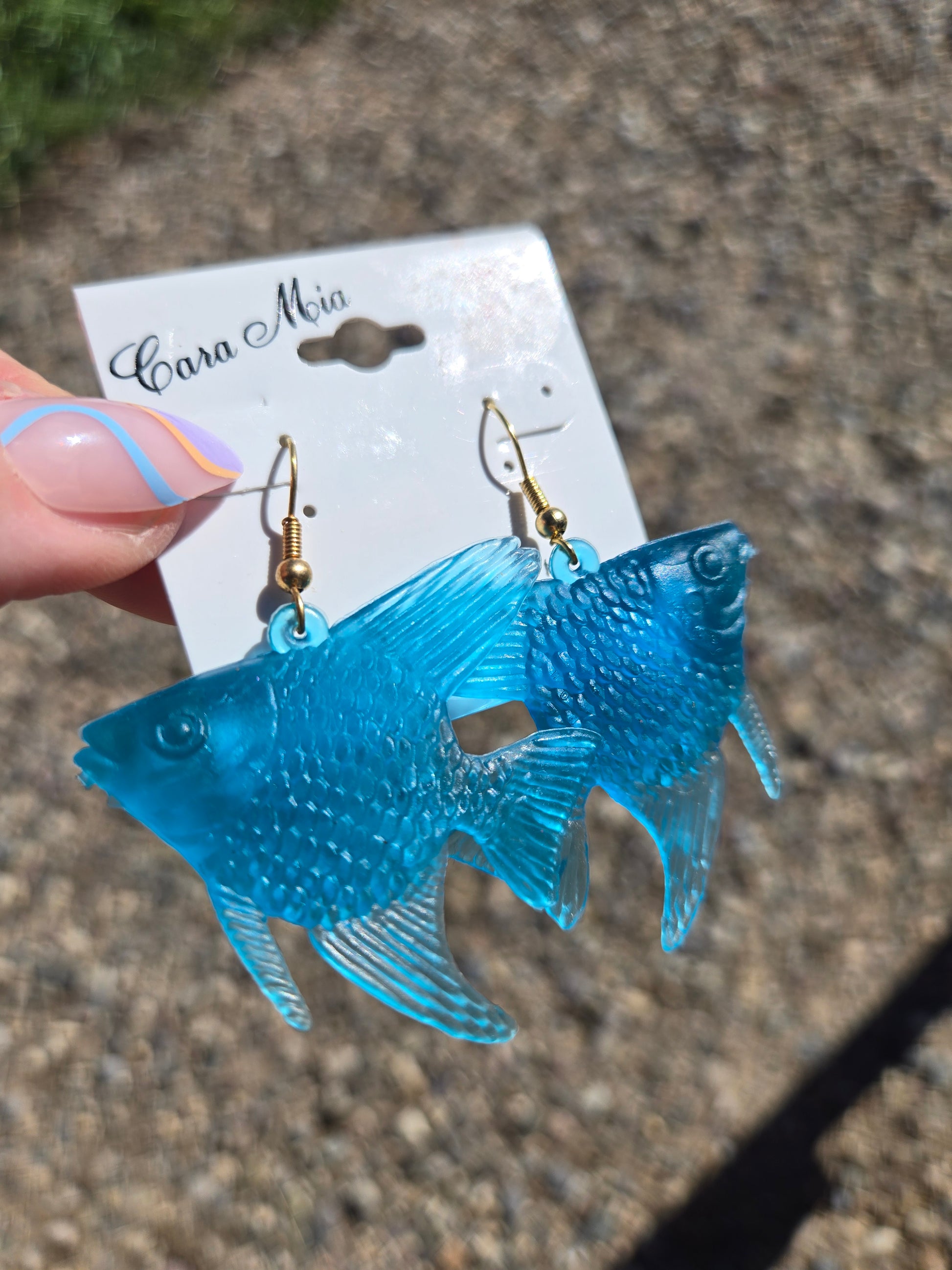 Deadstock Cara Mia Blue Rubber Small Tropical Fish Earrings