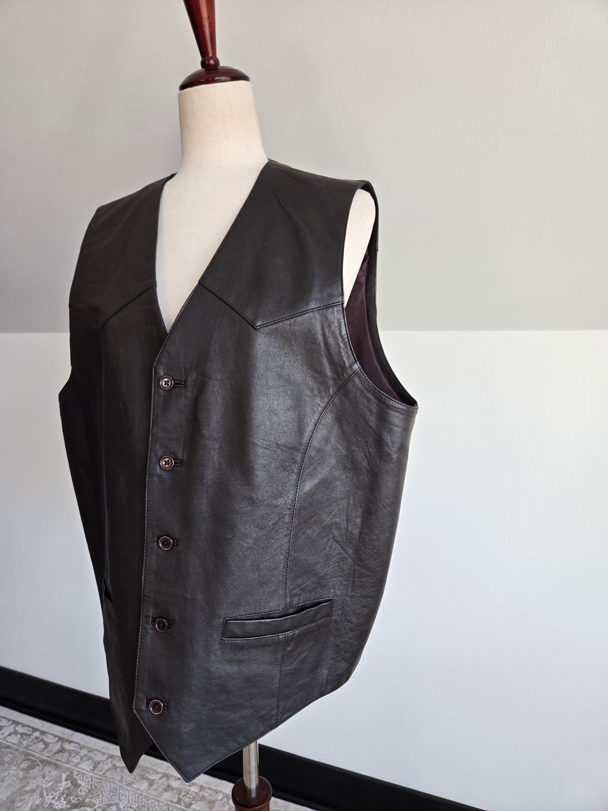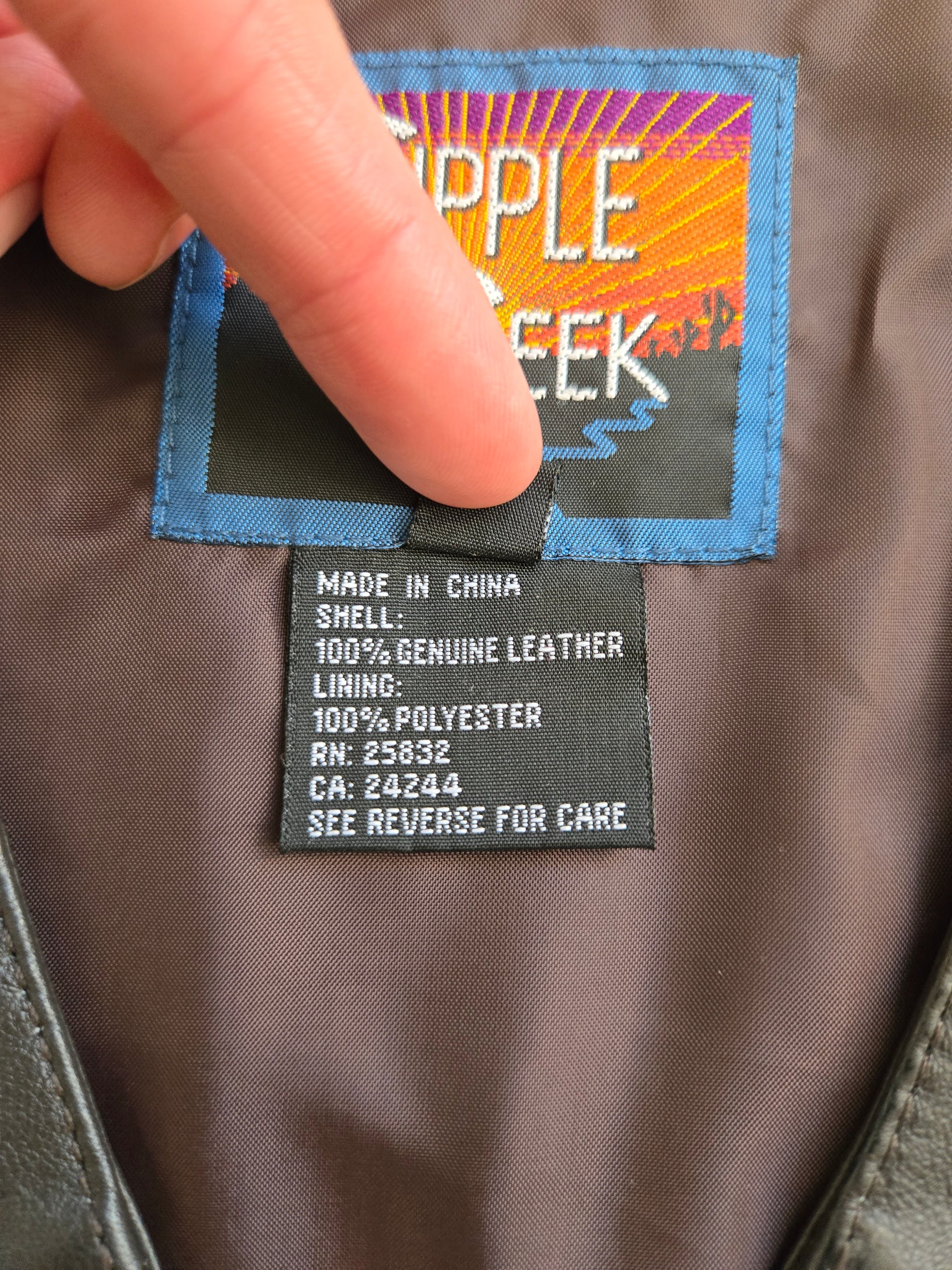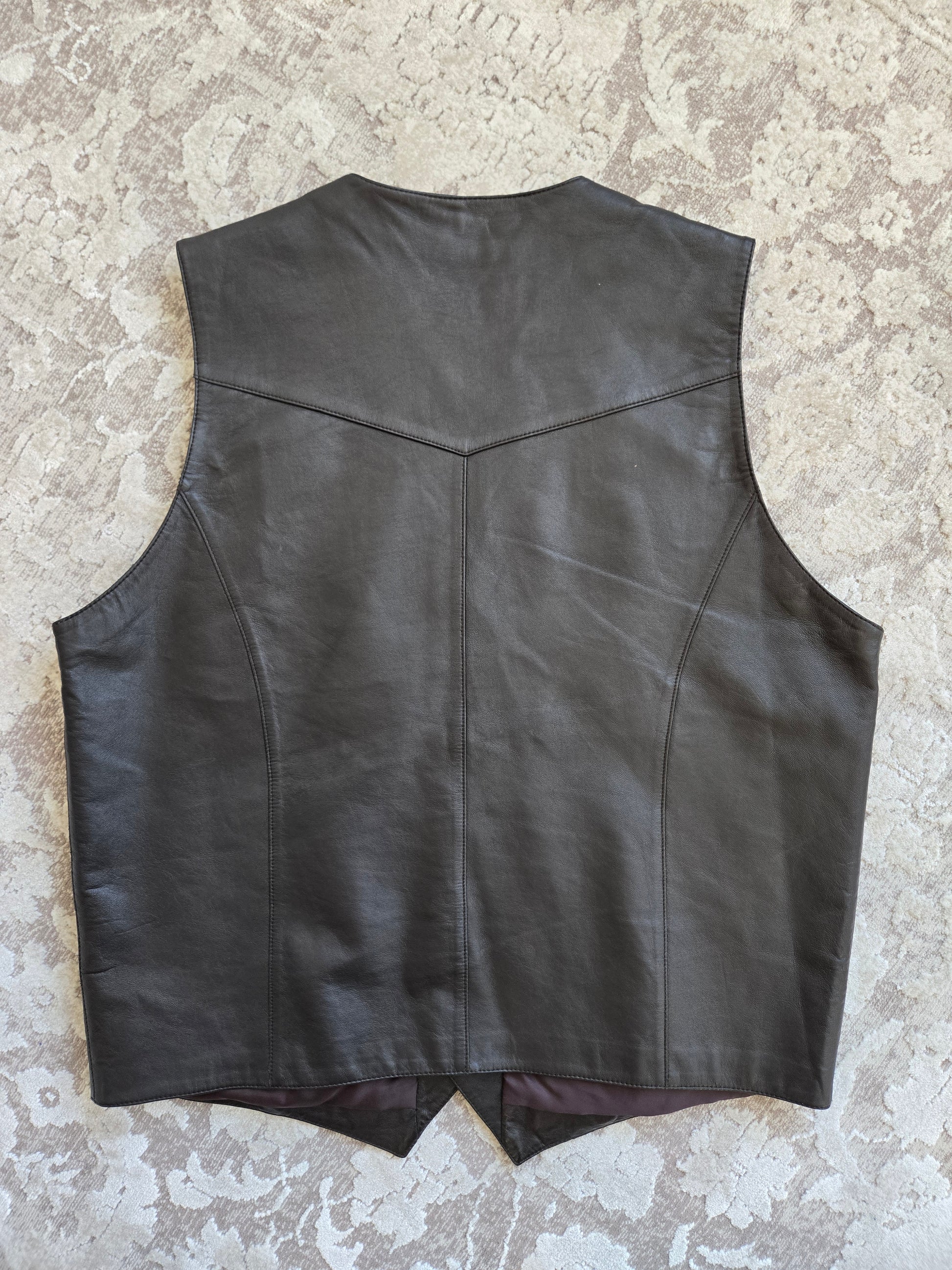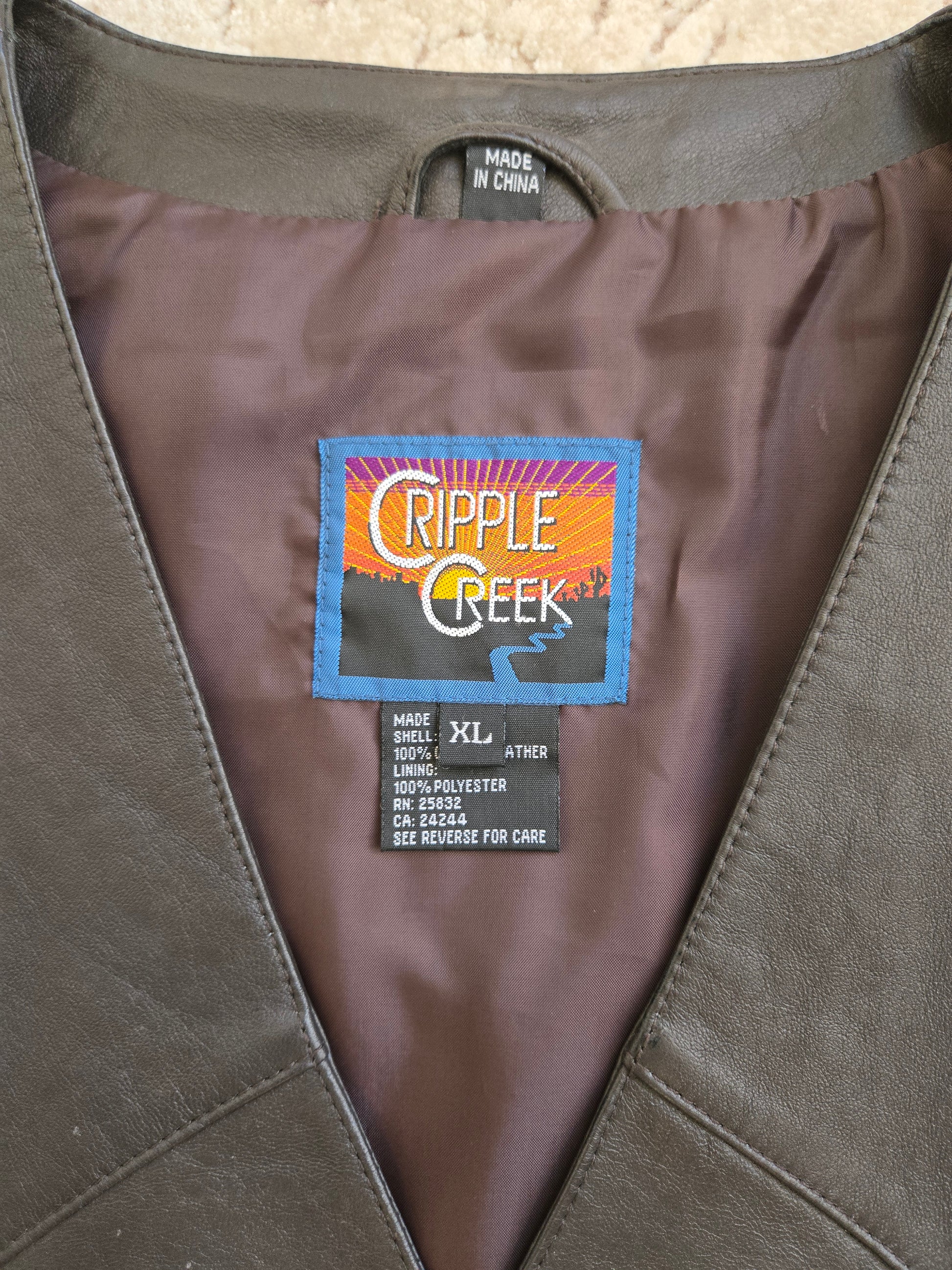 Vintage Cripple Creek dark brown genuine leather western style vest. It has buttons down center front and is fully lined. It is in amazing condition with no imperfections to call out.