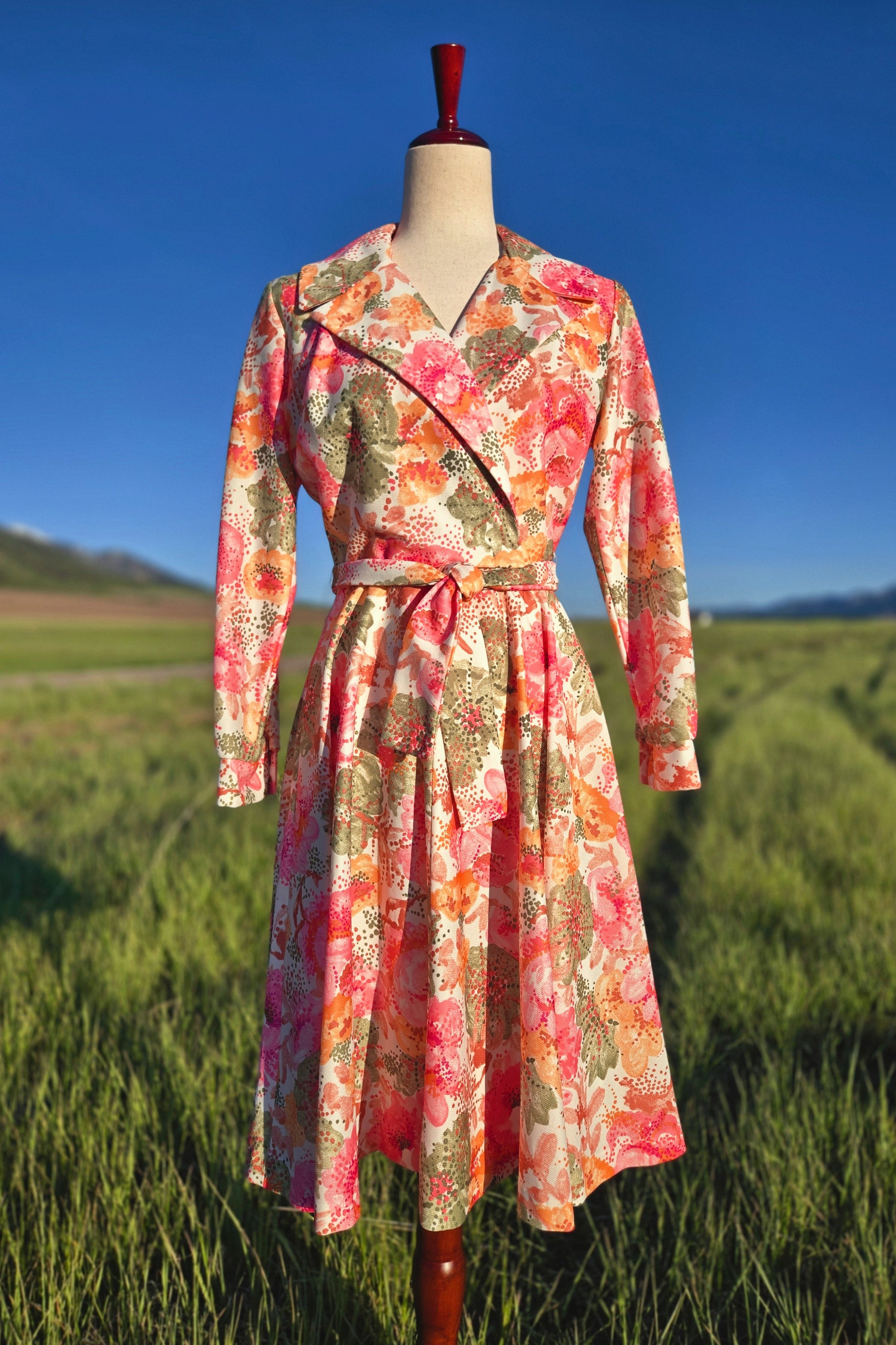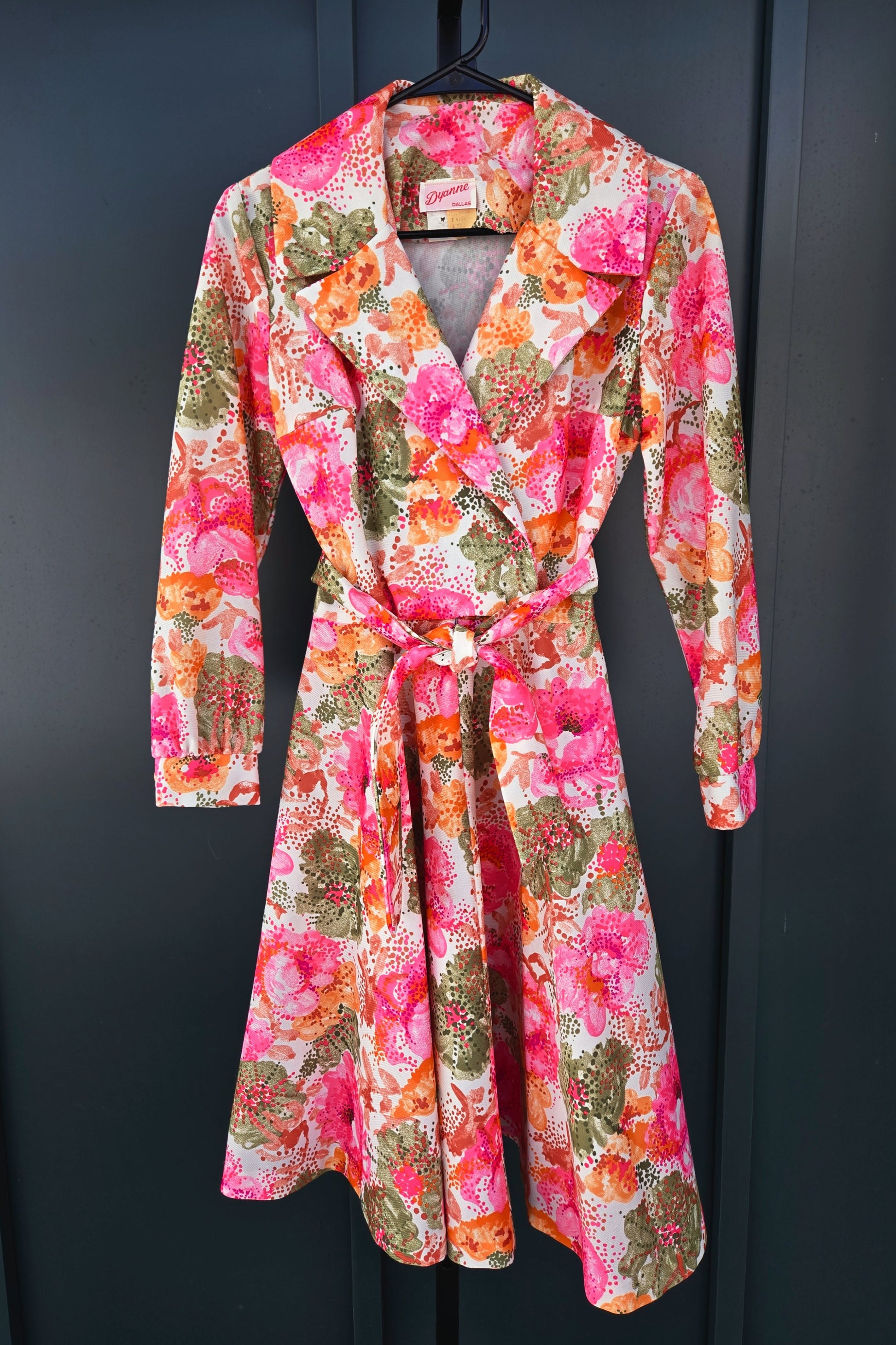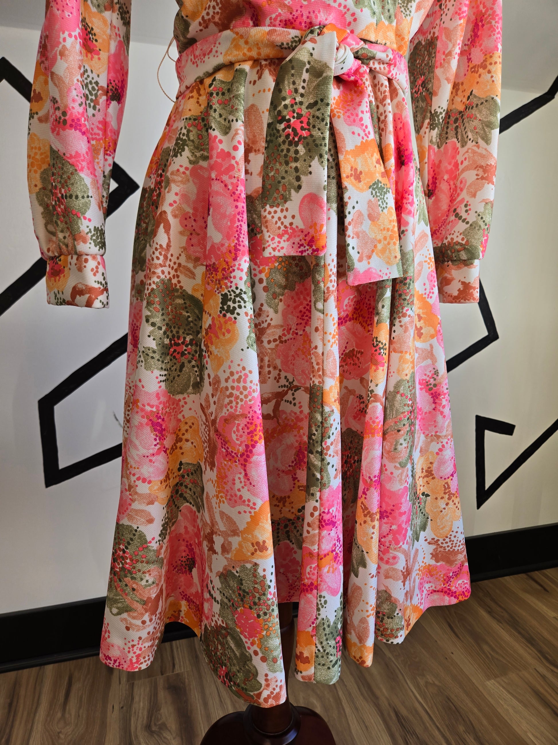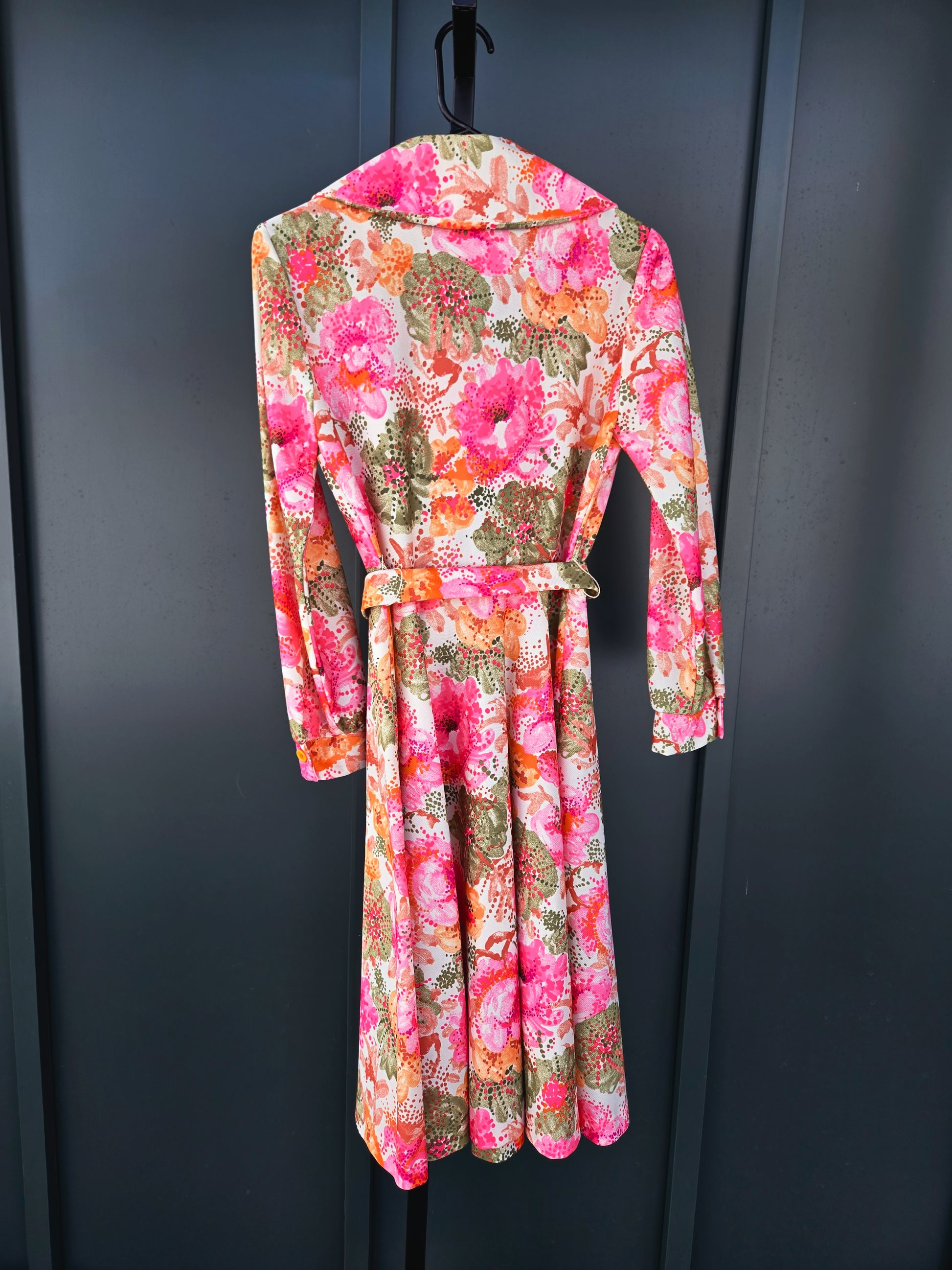 Dyanne Dallas Vintage 70s Bright Floral Dress with Belt - small