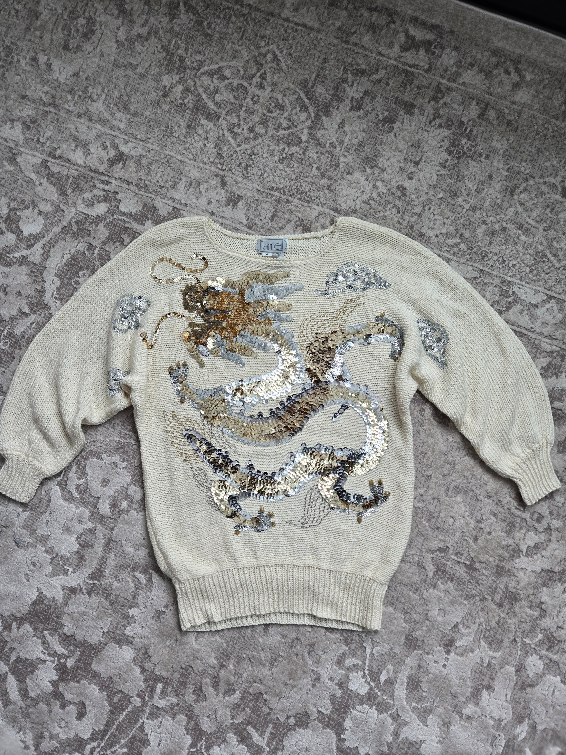 Nannell Vintage 80s Sequin Dragon Sweater - medium