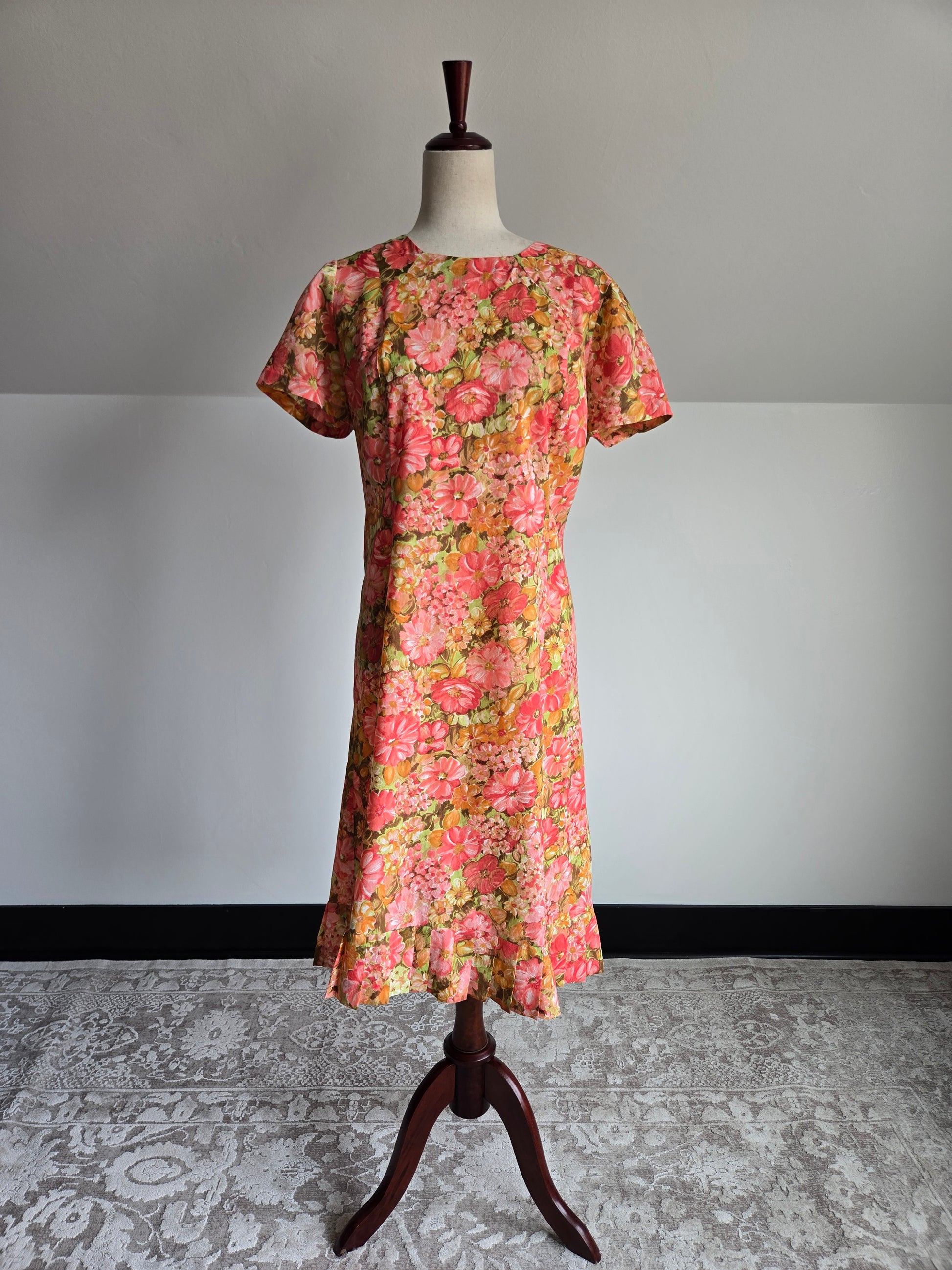 Vintage 1950s Handmade Flower Power Dress - L/XL