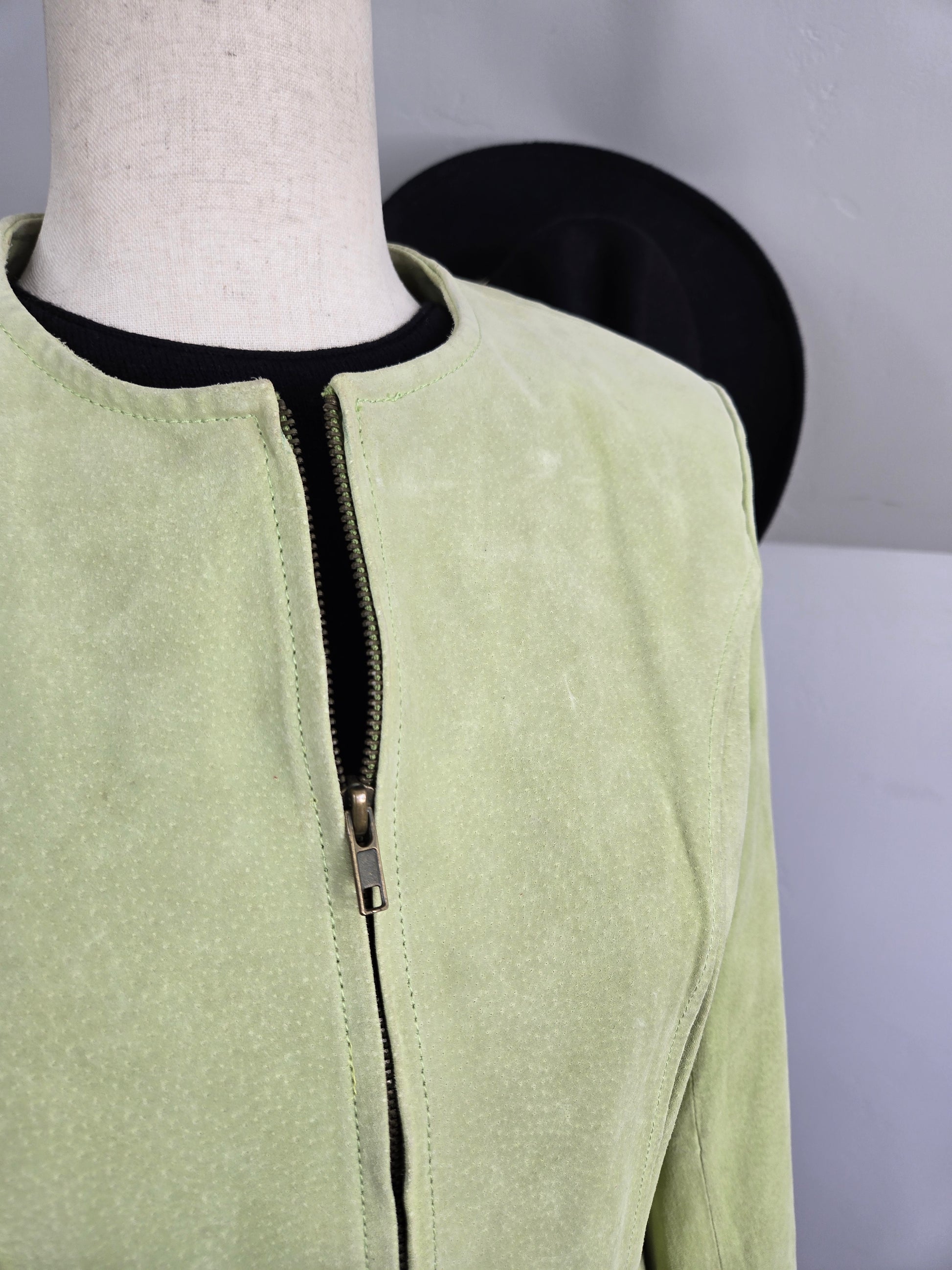Deadstock Lime Green Suede Leather Fringe Jacket - Meidum