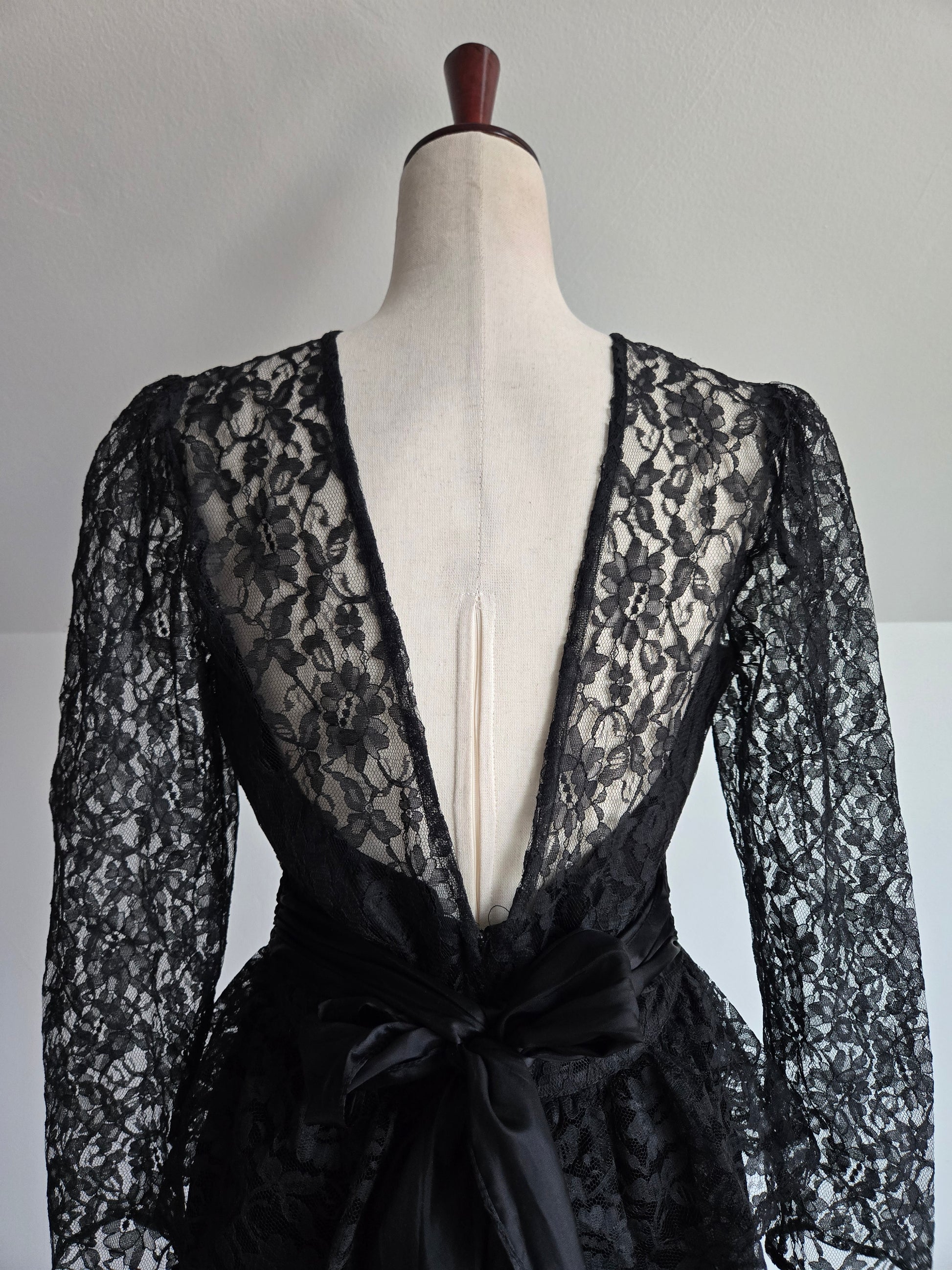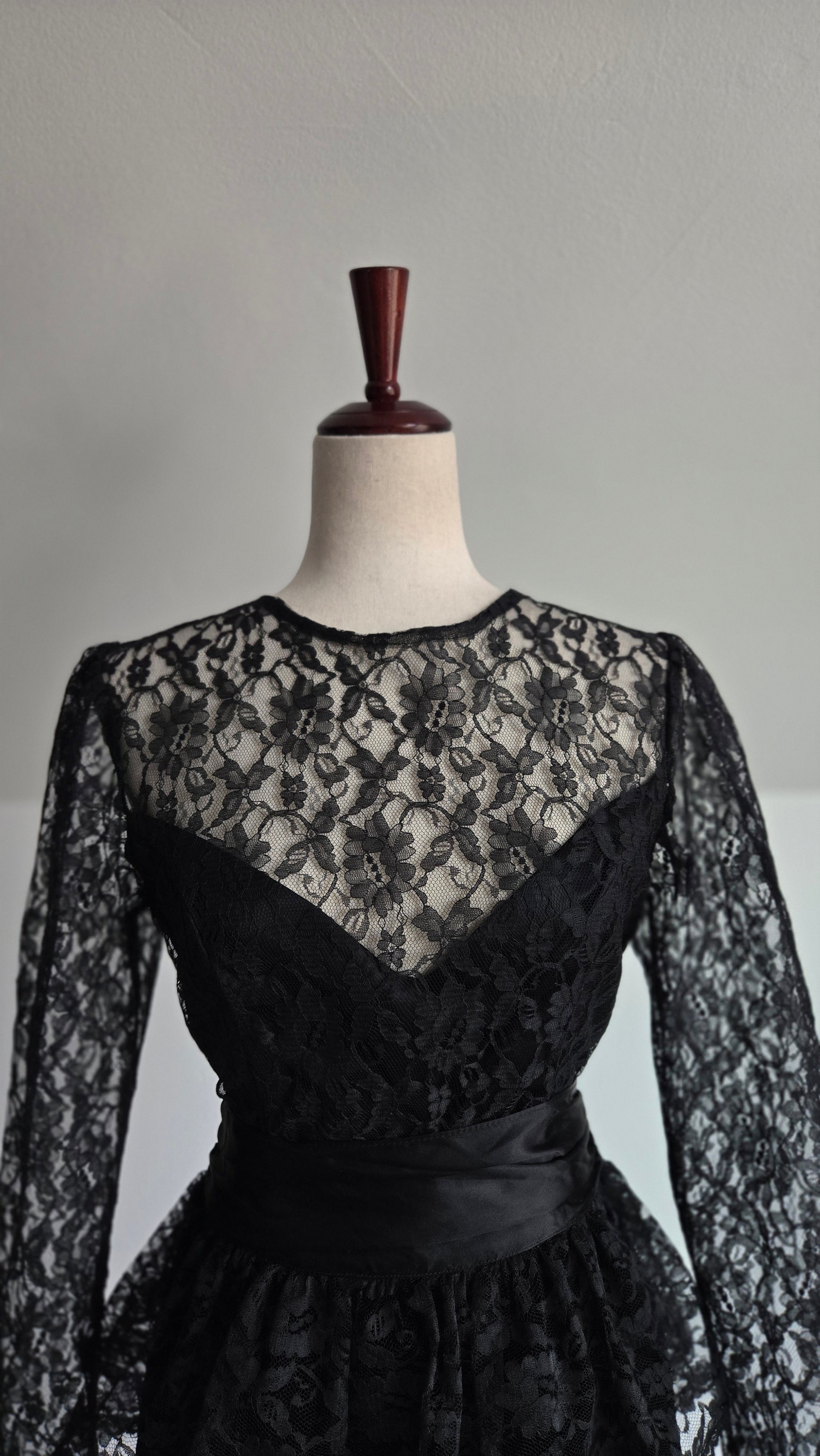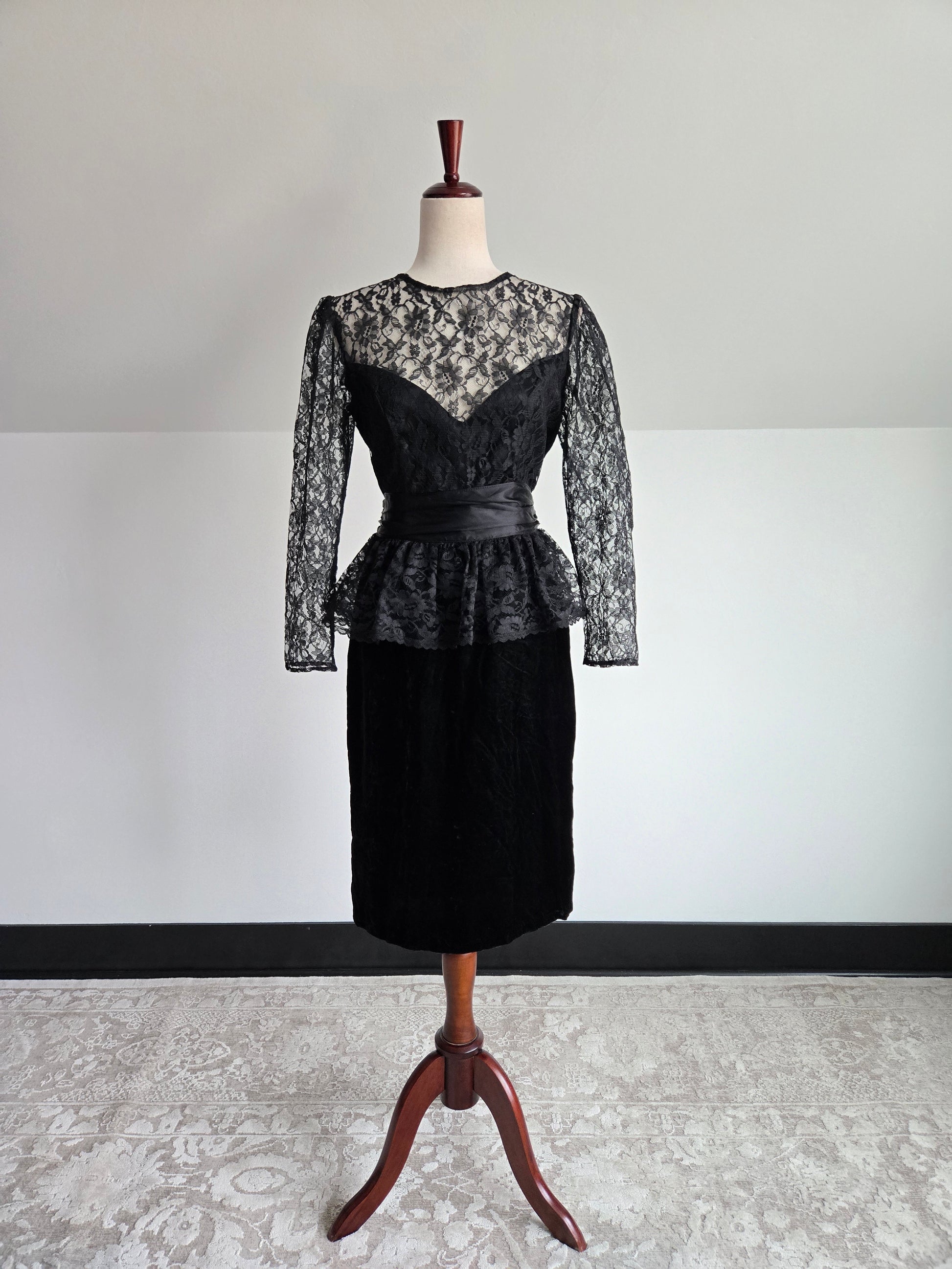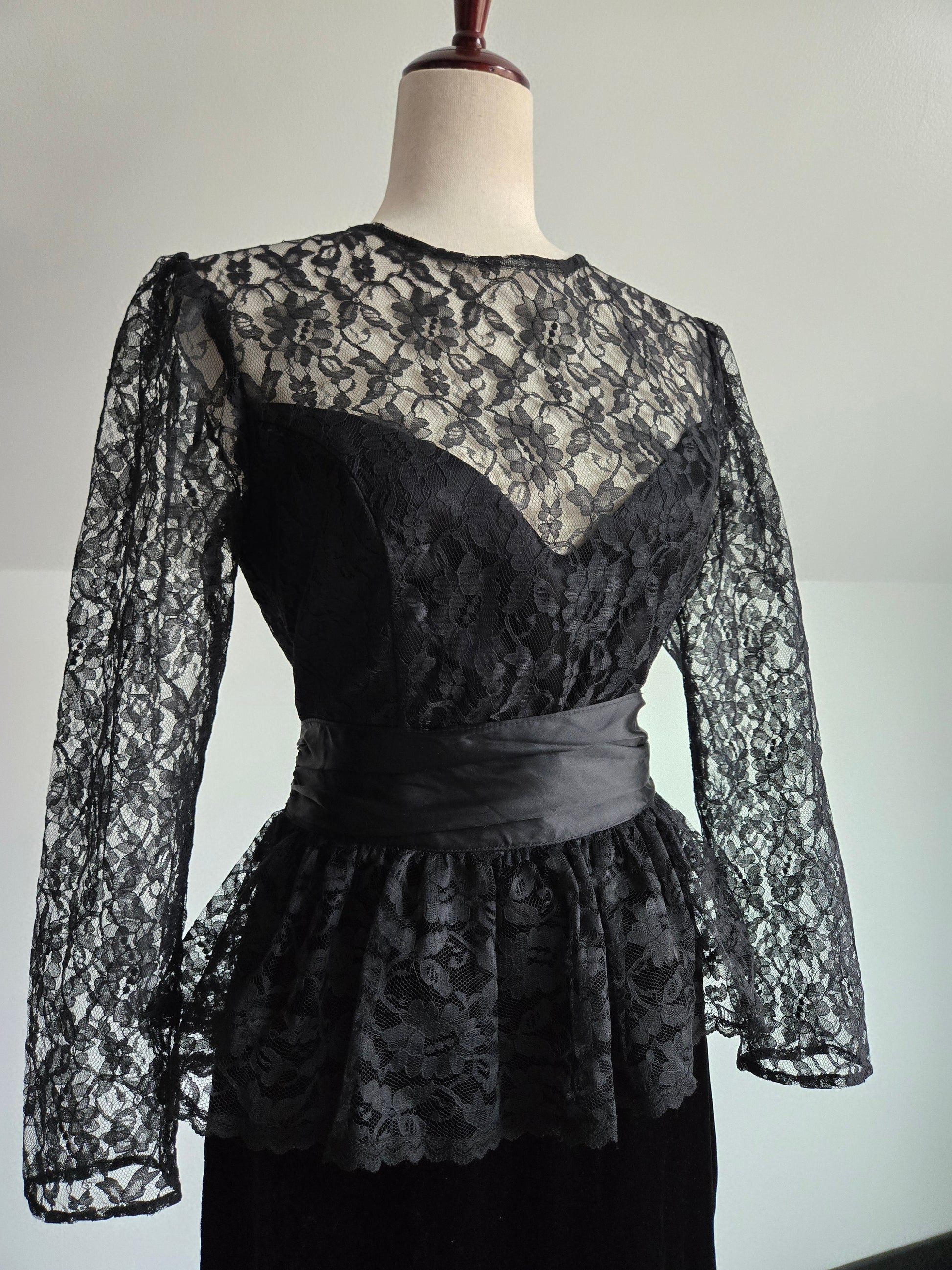 Gunne Sax Jessica McClintok Vintage 1980s Black Lace and Velvet Dress - S/M