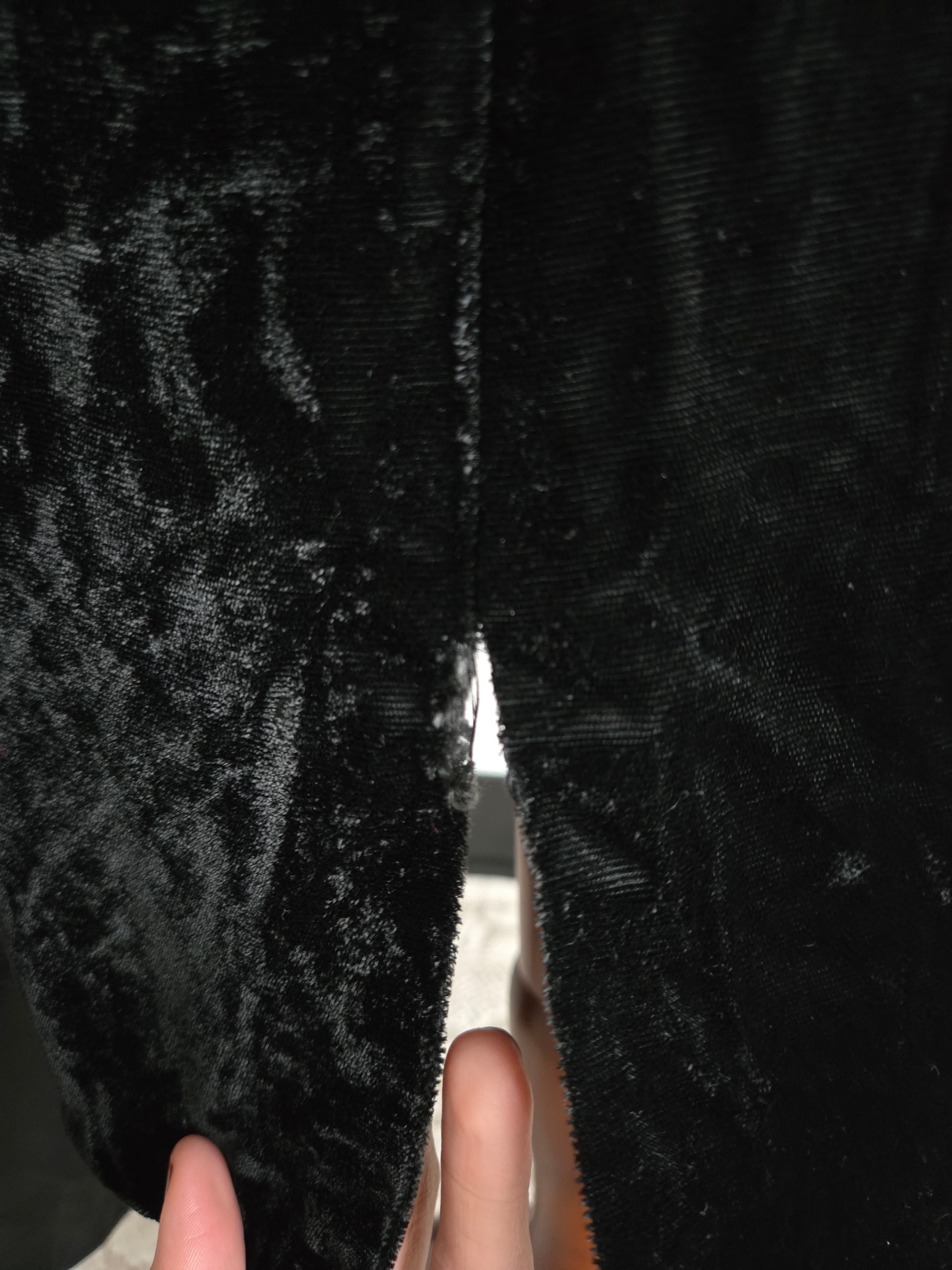Gunne Sax by Jessica McClintok vintage 80s black lace and velvet dress with a satin waist sash. It has shear lace at the collarbone and sleeve, and then is lined in a sweetheart neckline. It has a satin sash at the waistline to give the illusion of a waist tie and small peplum, and a crushed velvet skirt. I love the way the back dives down to the waist in the back. This is classic, chic, and makes a statement all at the same time. Great condition with very minor fraying at back kick split.