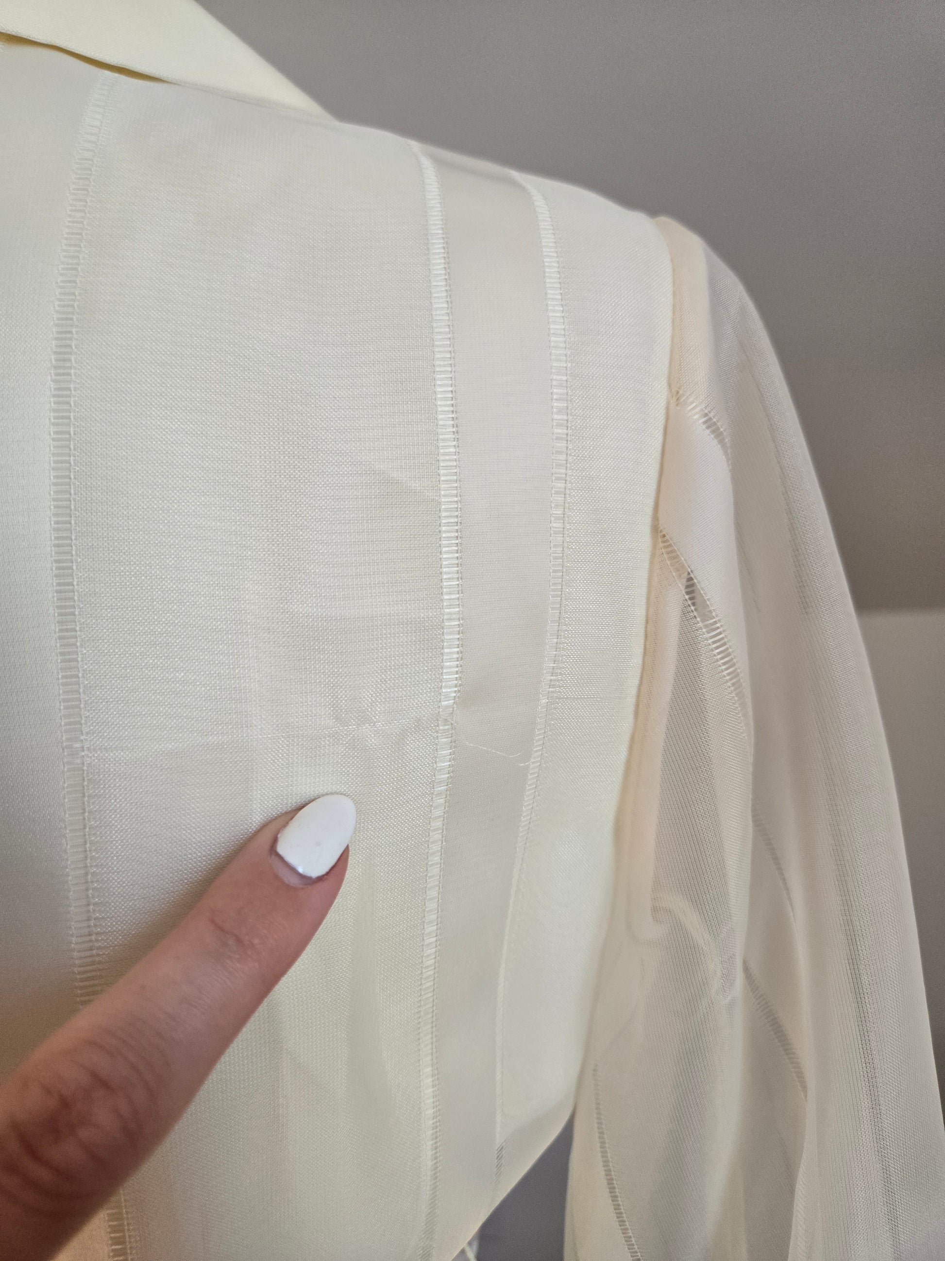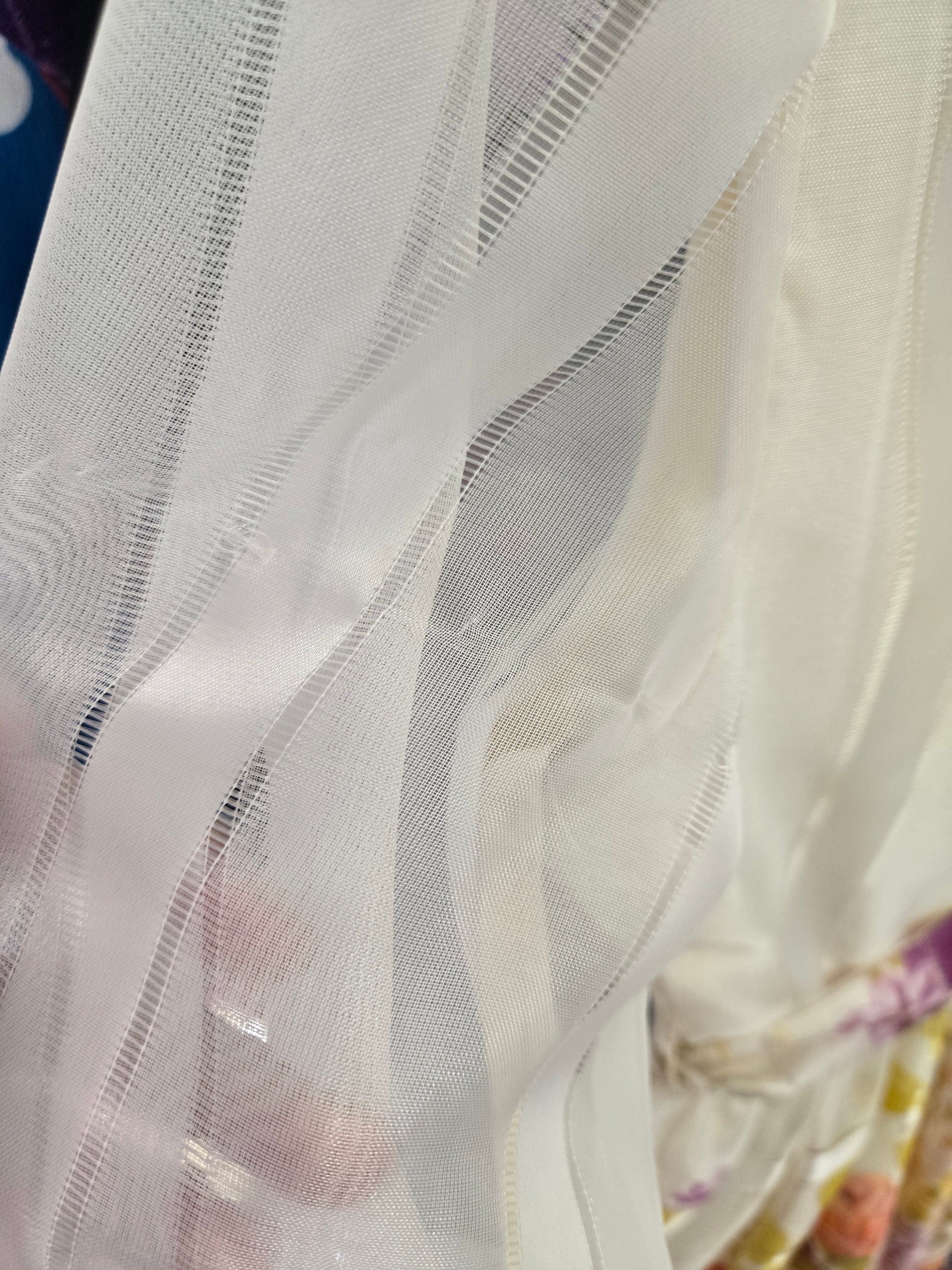 Fabric content: NA but best guess is a polyester chiffon with an acetate liner