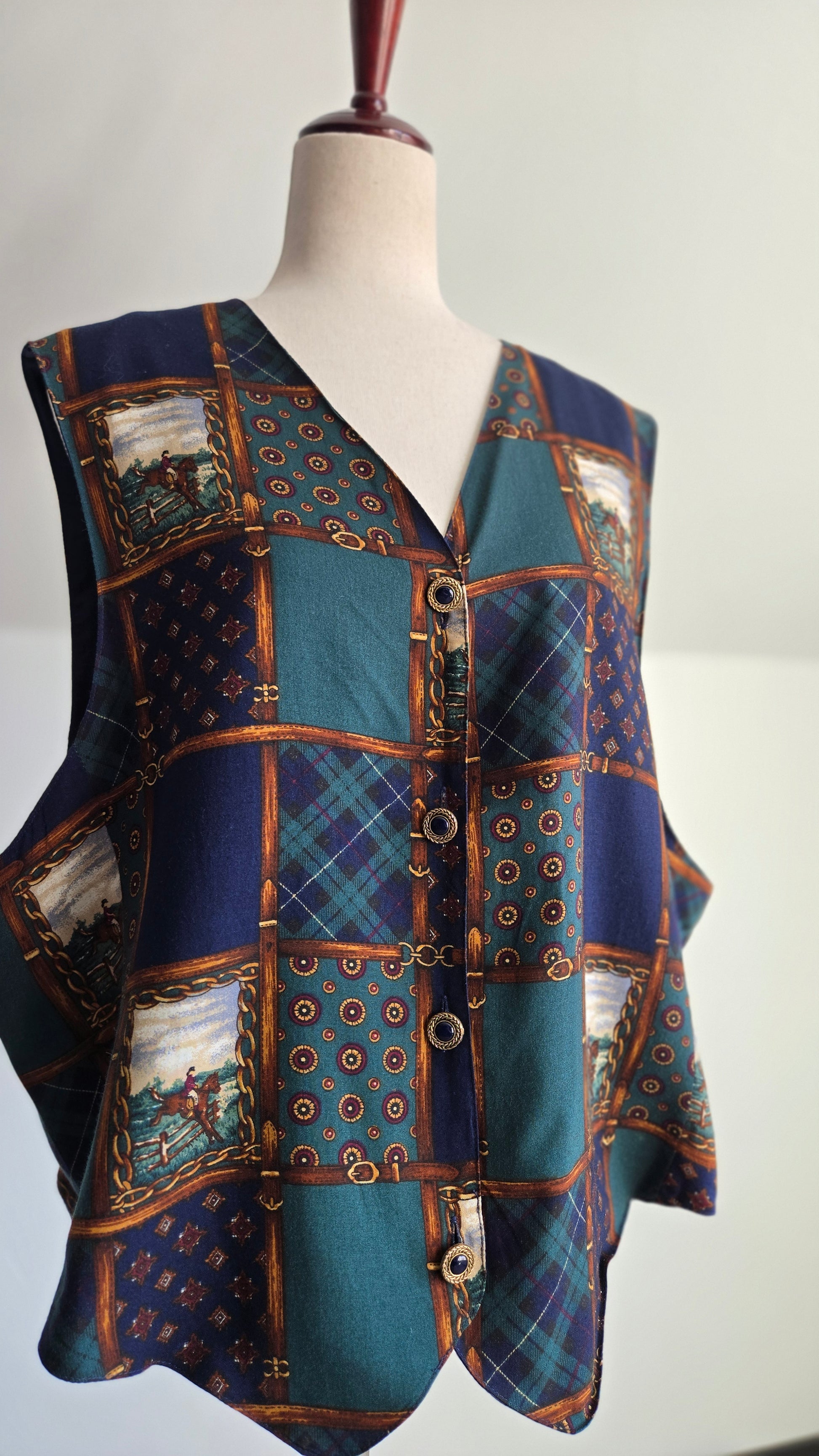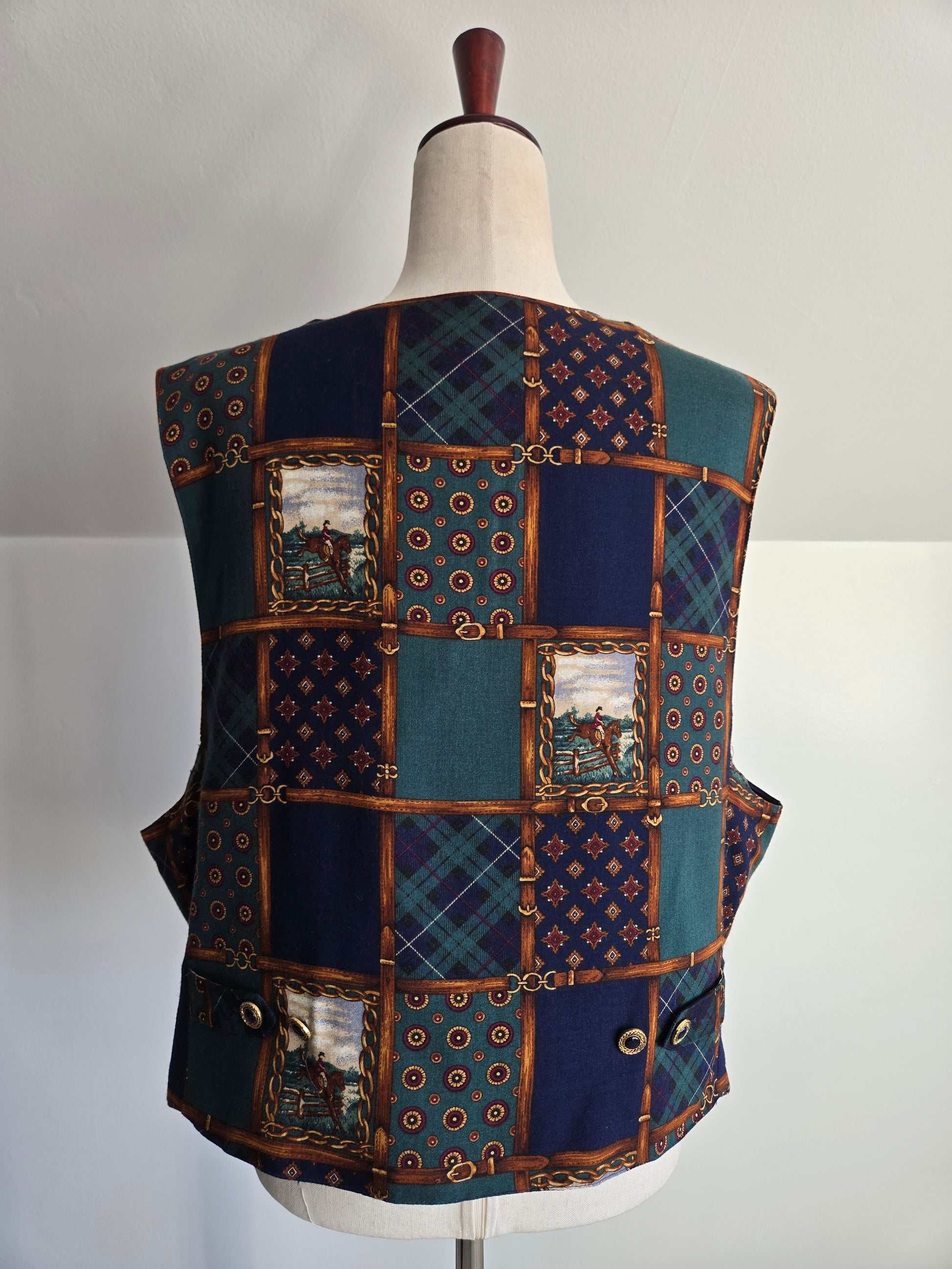 Jantzen Vintage Equestrian Print Plaid Vest - 2XL