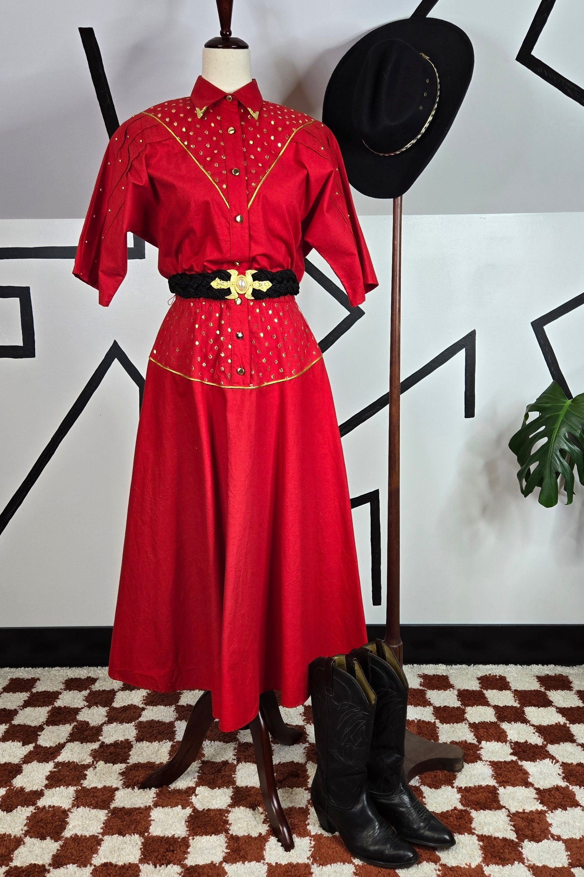 Lilia Smith Exclusive Vintage 70s Western Red and Gold Dress
