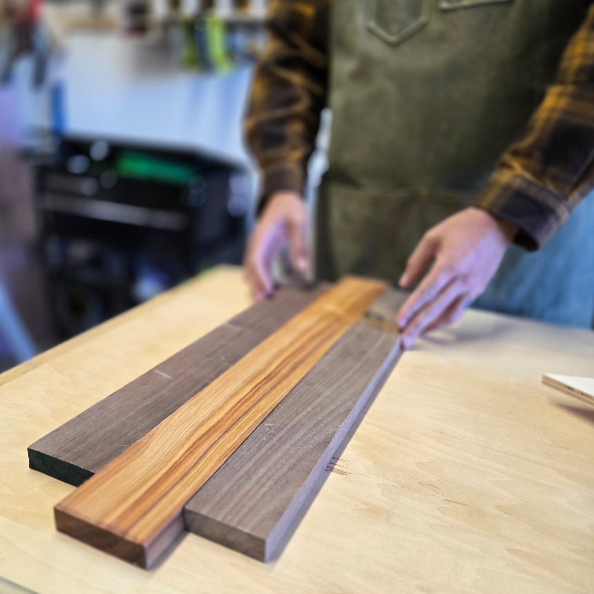 Hello, friends! My name is Seth Runge, and I am the woodworker behind Stormcrow Workshop, located in the mountains of Swan Valley, ID. I got into woodworking about 10 years ago making small gifts for my now wife, Kelsey of Valley Made Studio, and it transformed into furniture and other hand-crafted home enhancements over the last few years. I started gifting cutting boards to friends and family, and have decided to start sharing them with you all as well! All of my domestic hardwoods are USA-grown and sourced from a local lumberyard and my collection of exotic woods is sourced from a specialized dealer in Boise, ID.