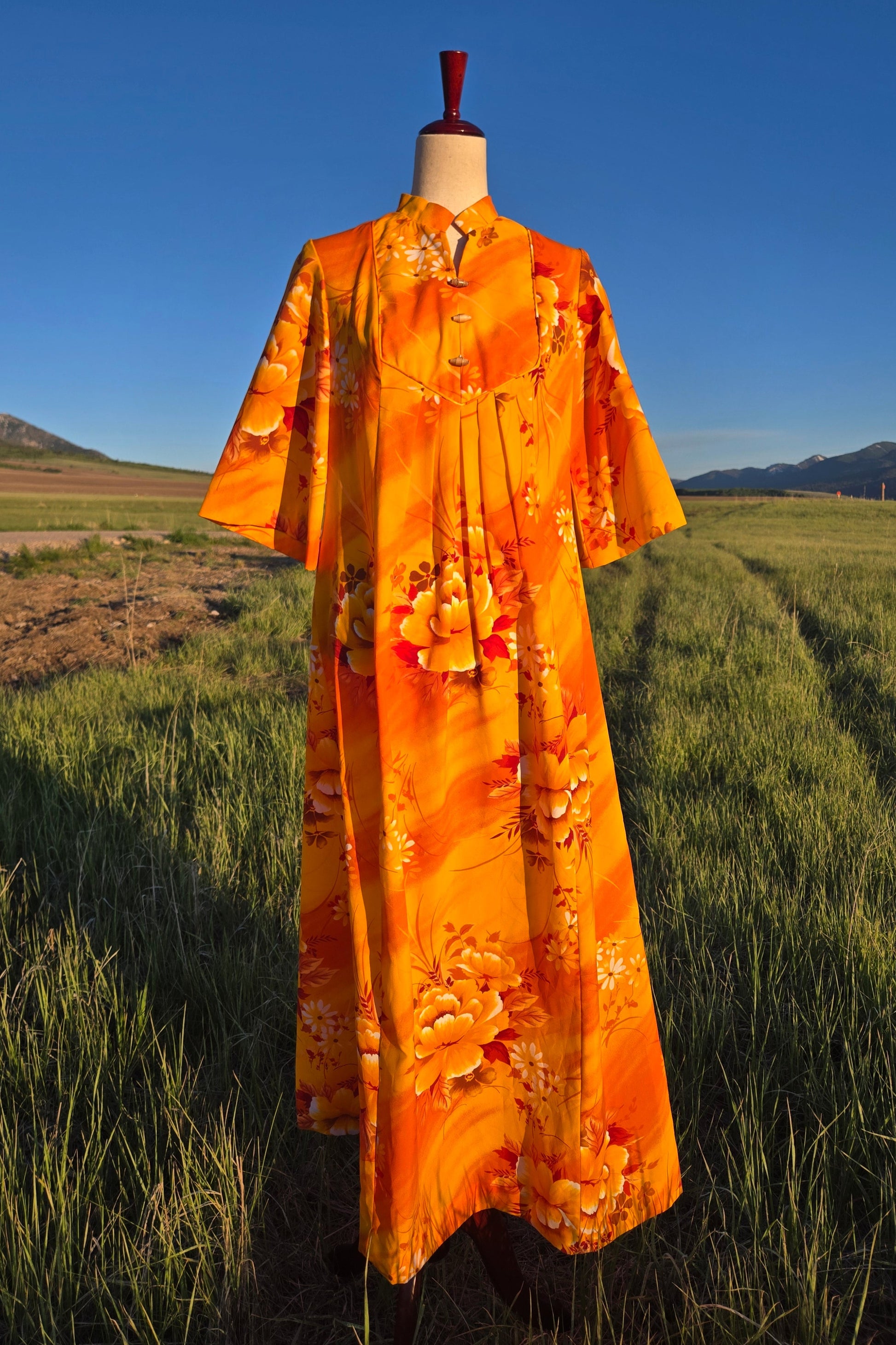 Moko Hawaii 1960s Vintage Orange Floral Dress - small/medium