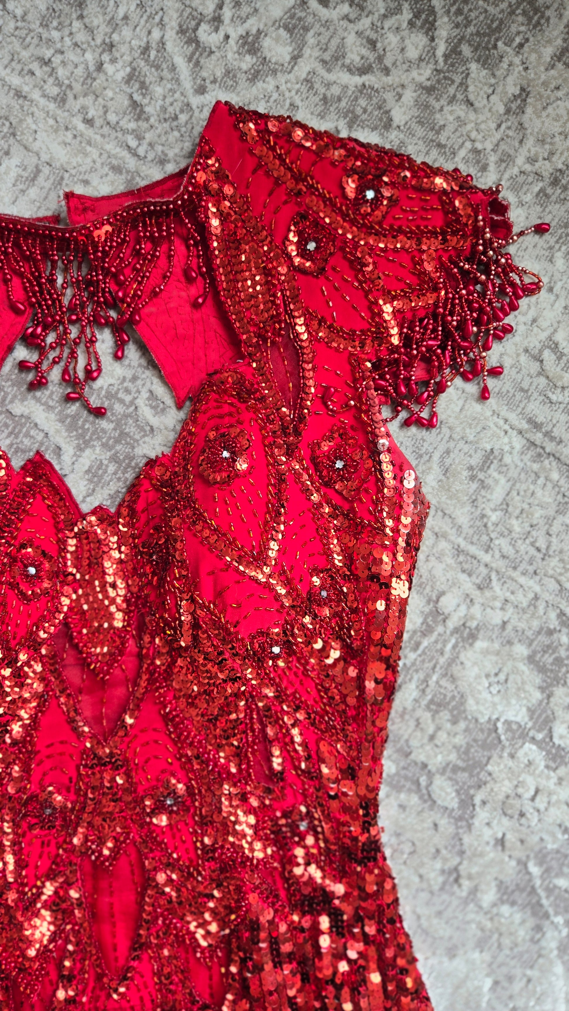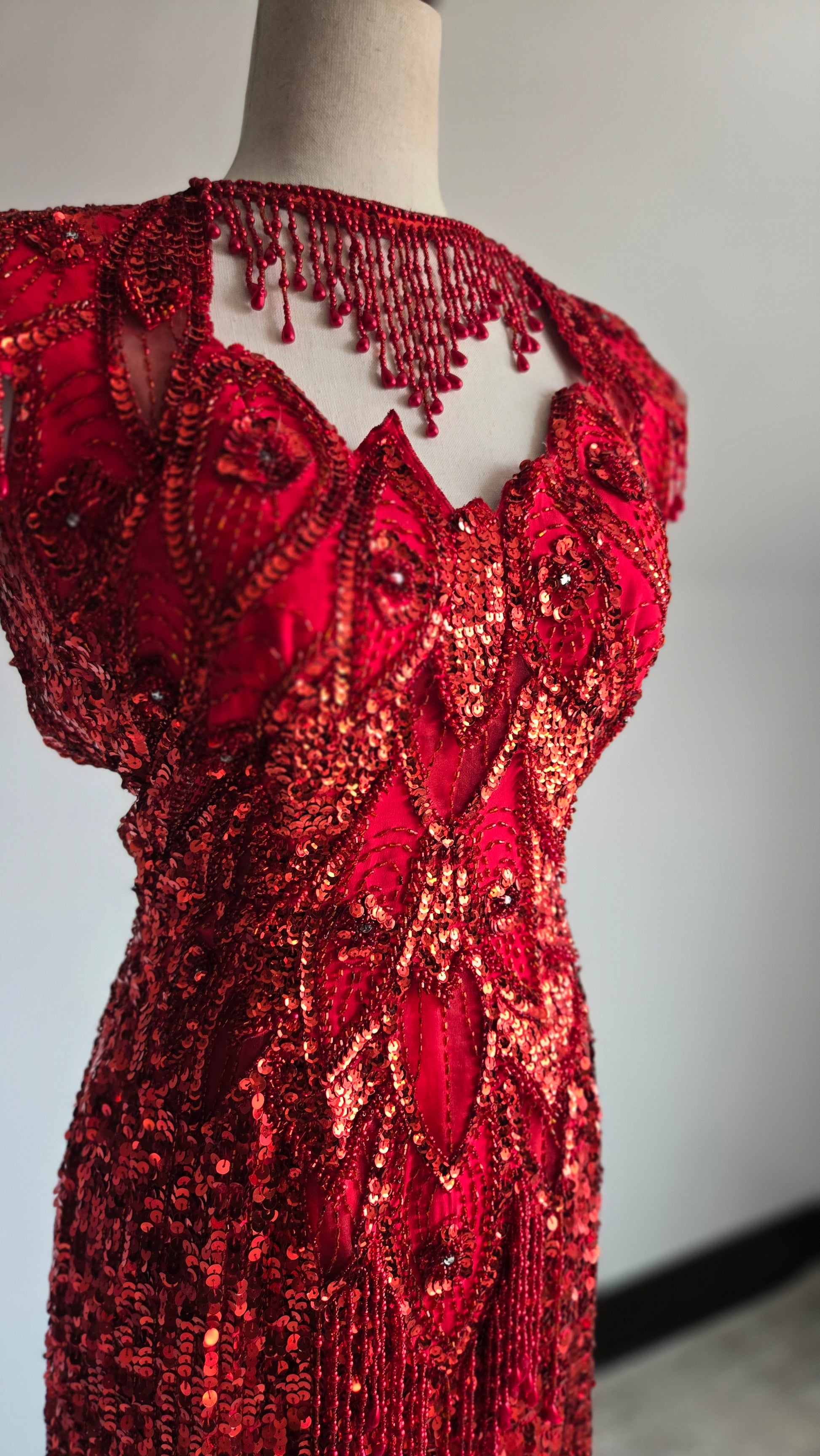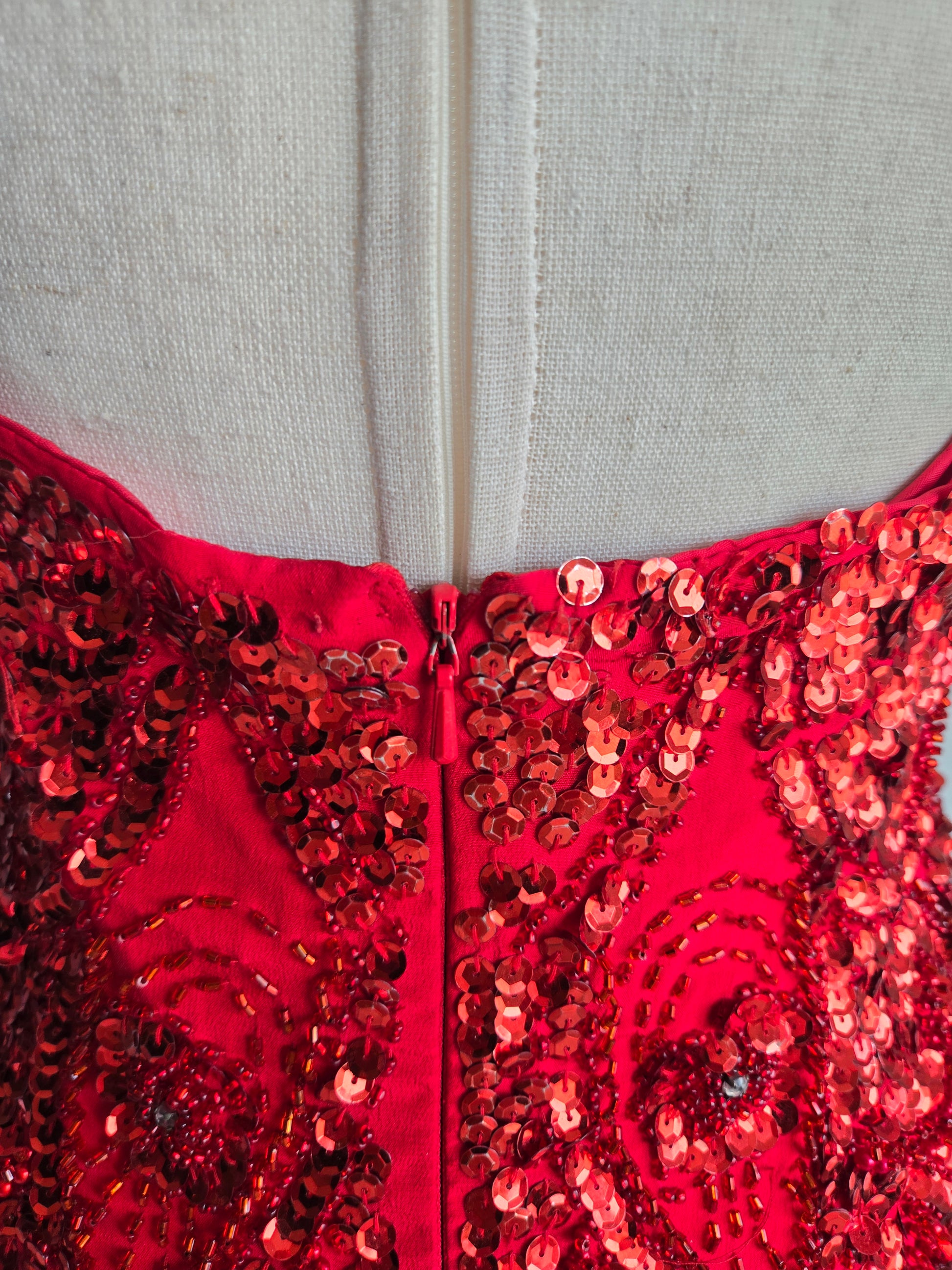 Miss Kansas Estate Vintage Red Beaded and Sequined Hand Made Dress - XS/S