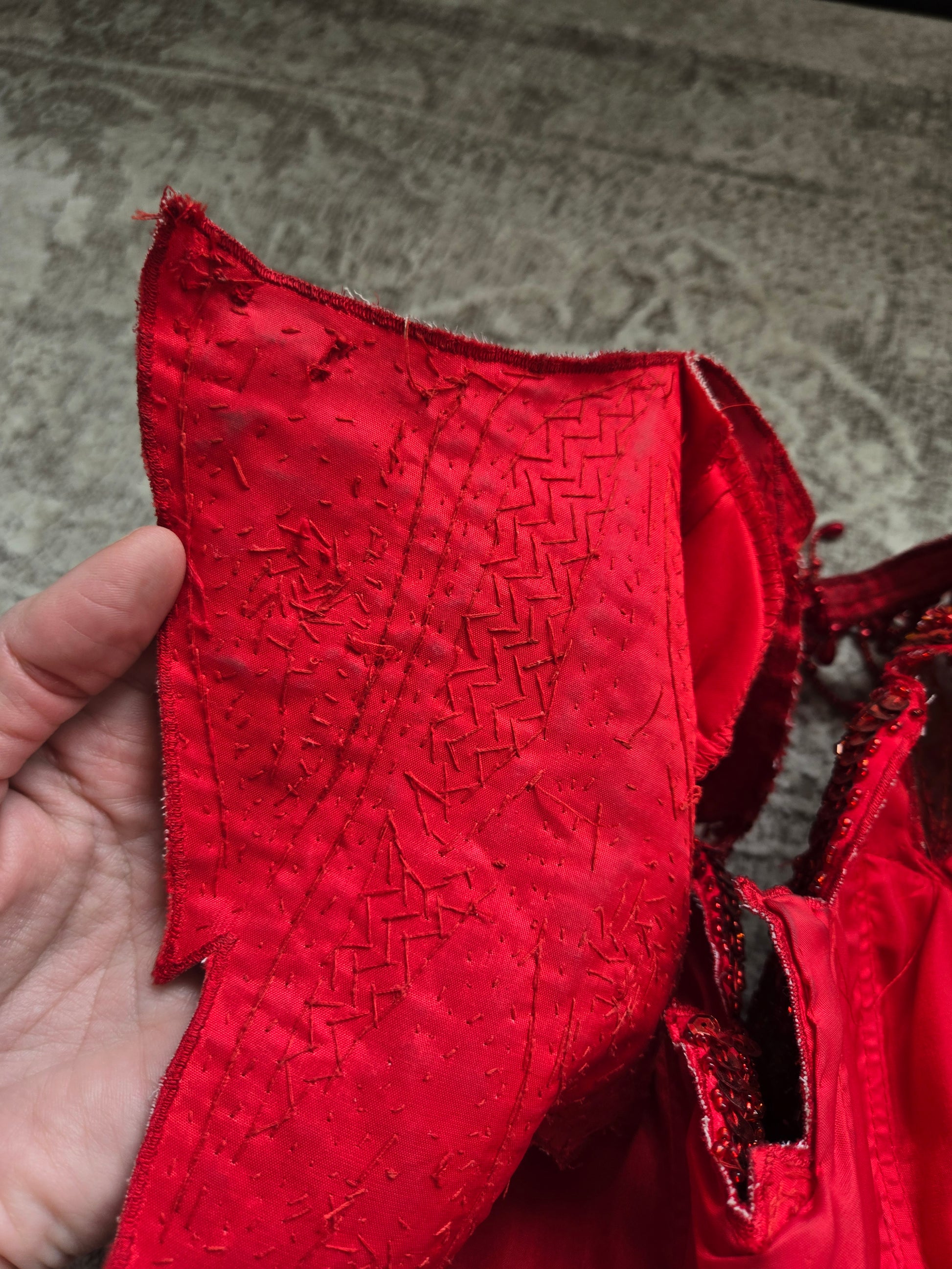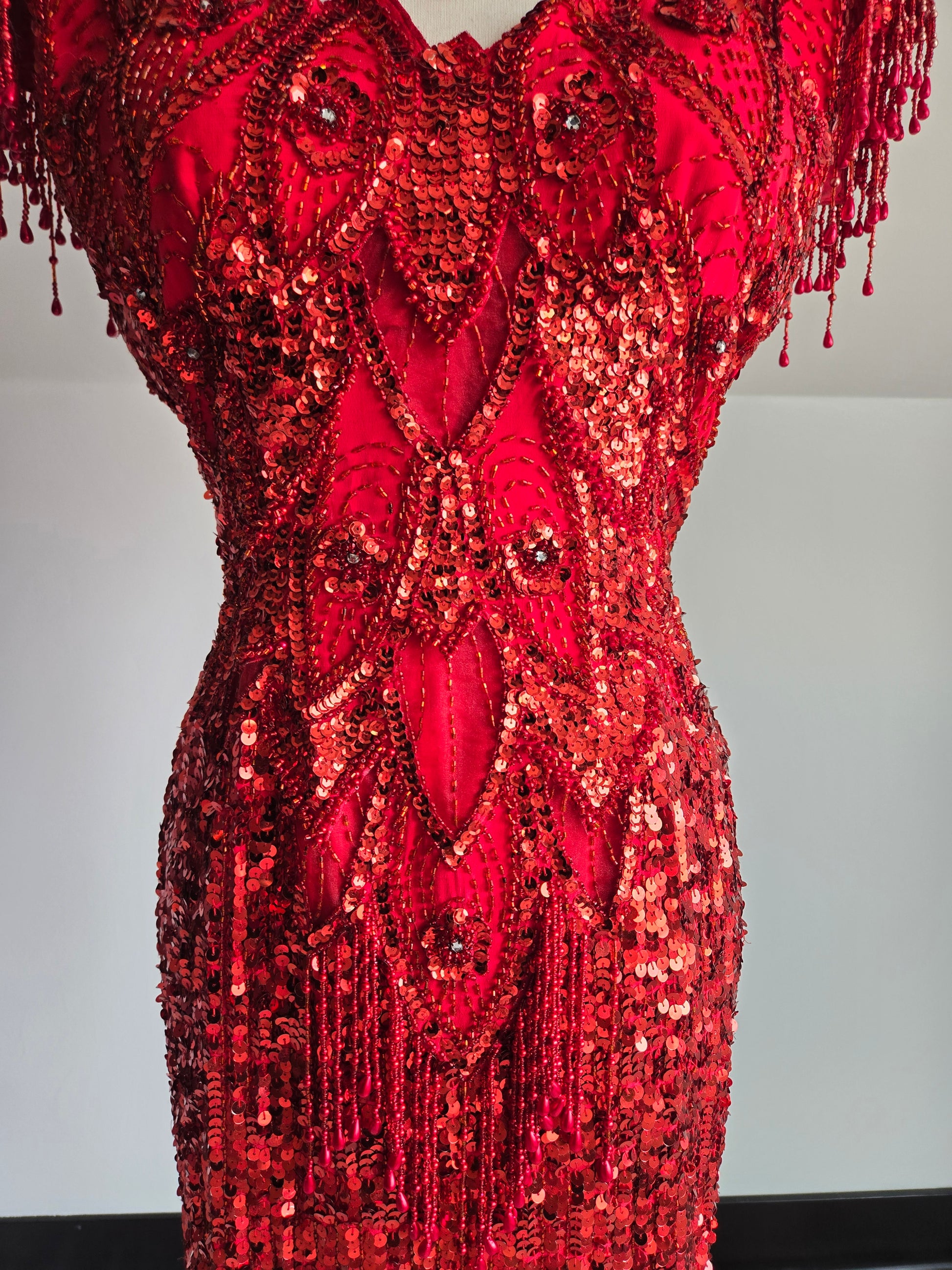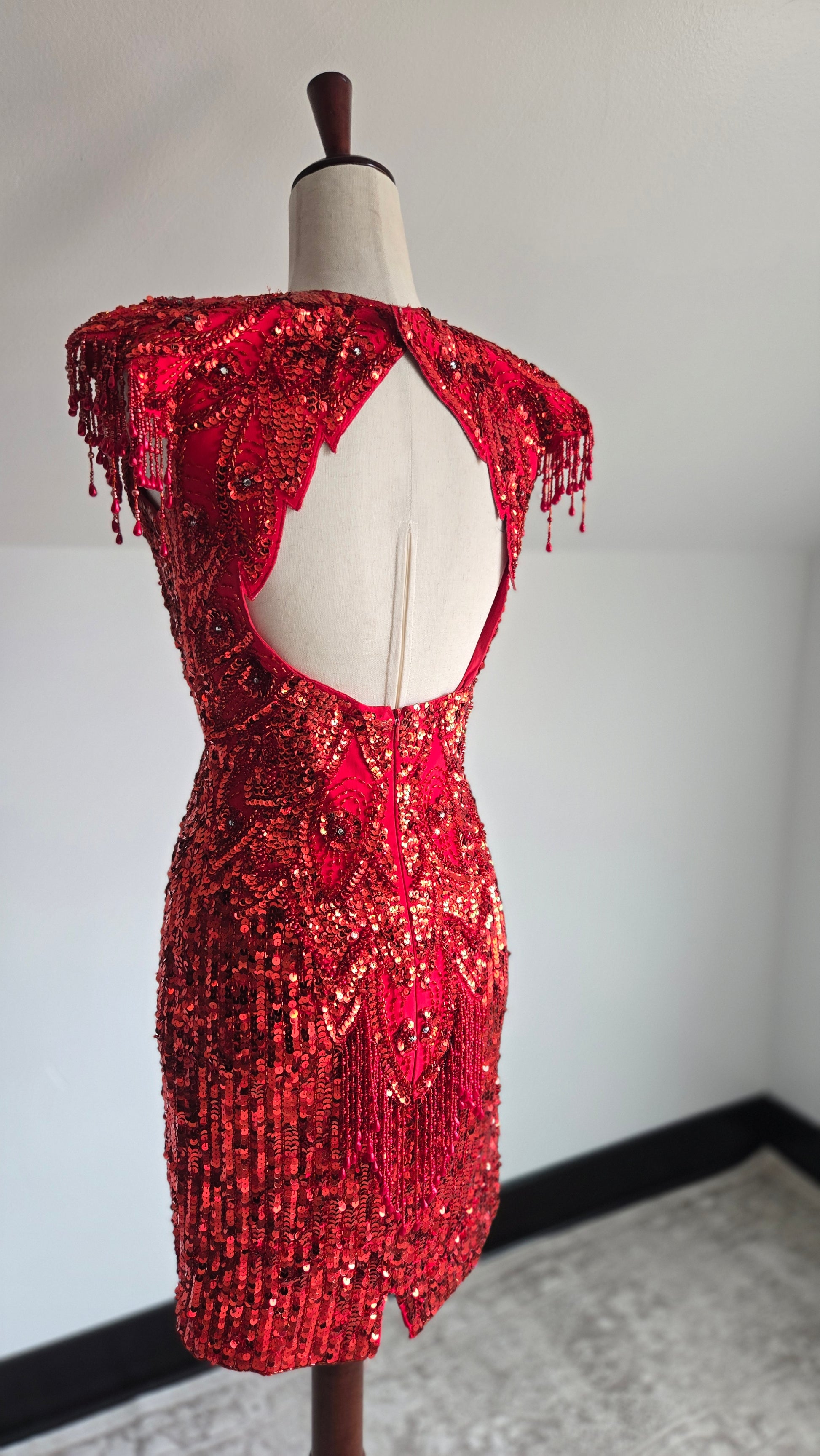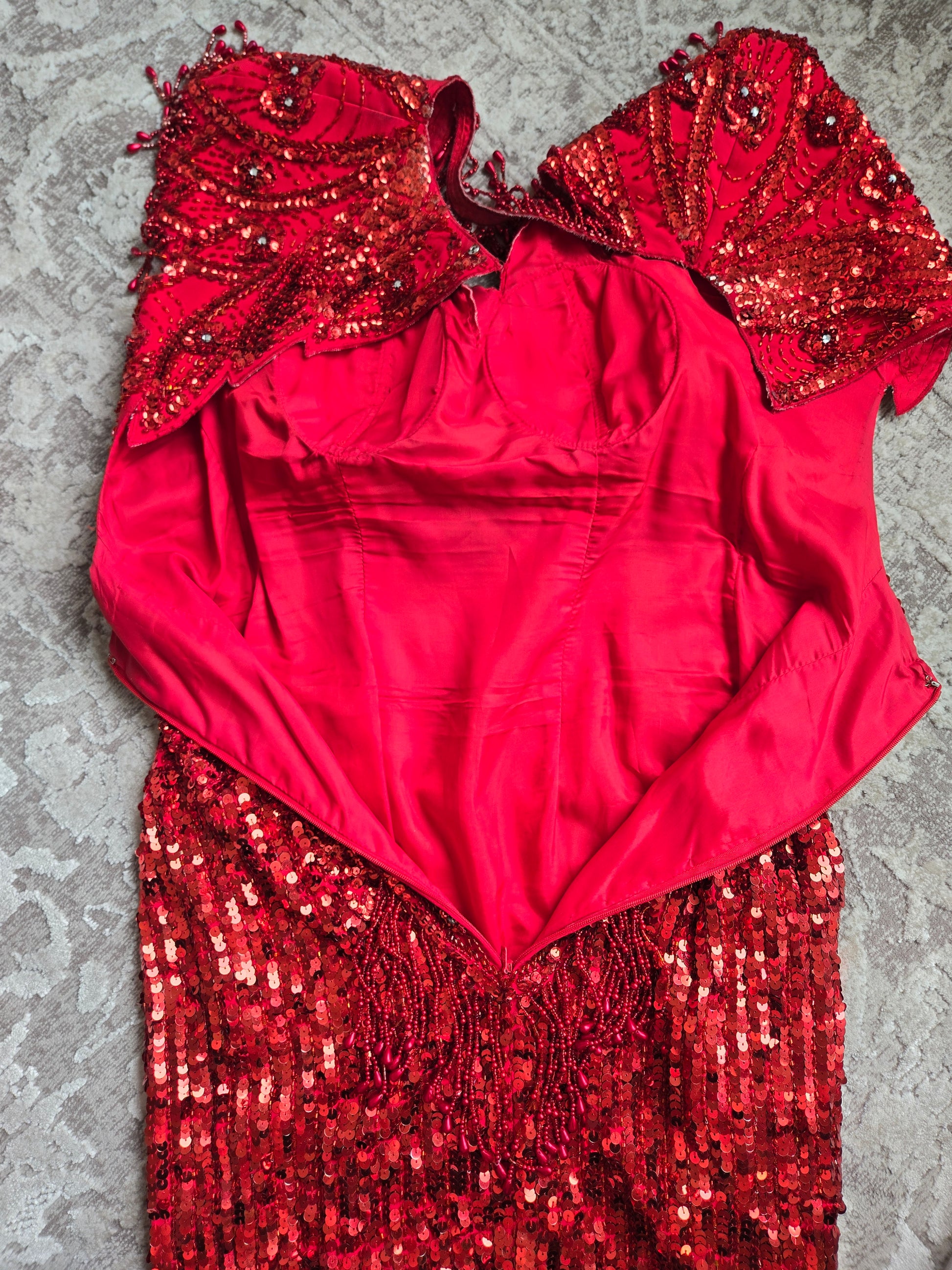 Miss Kansas Estate Vintage Red Beaded and Sequined Hand Made Dress - XS/S