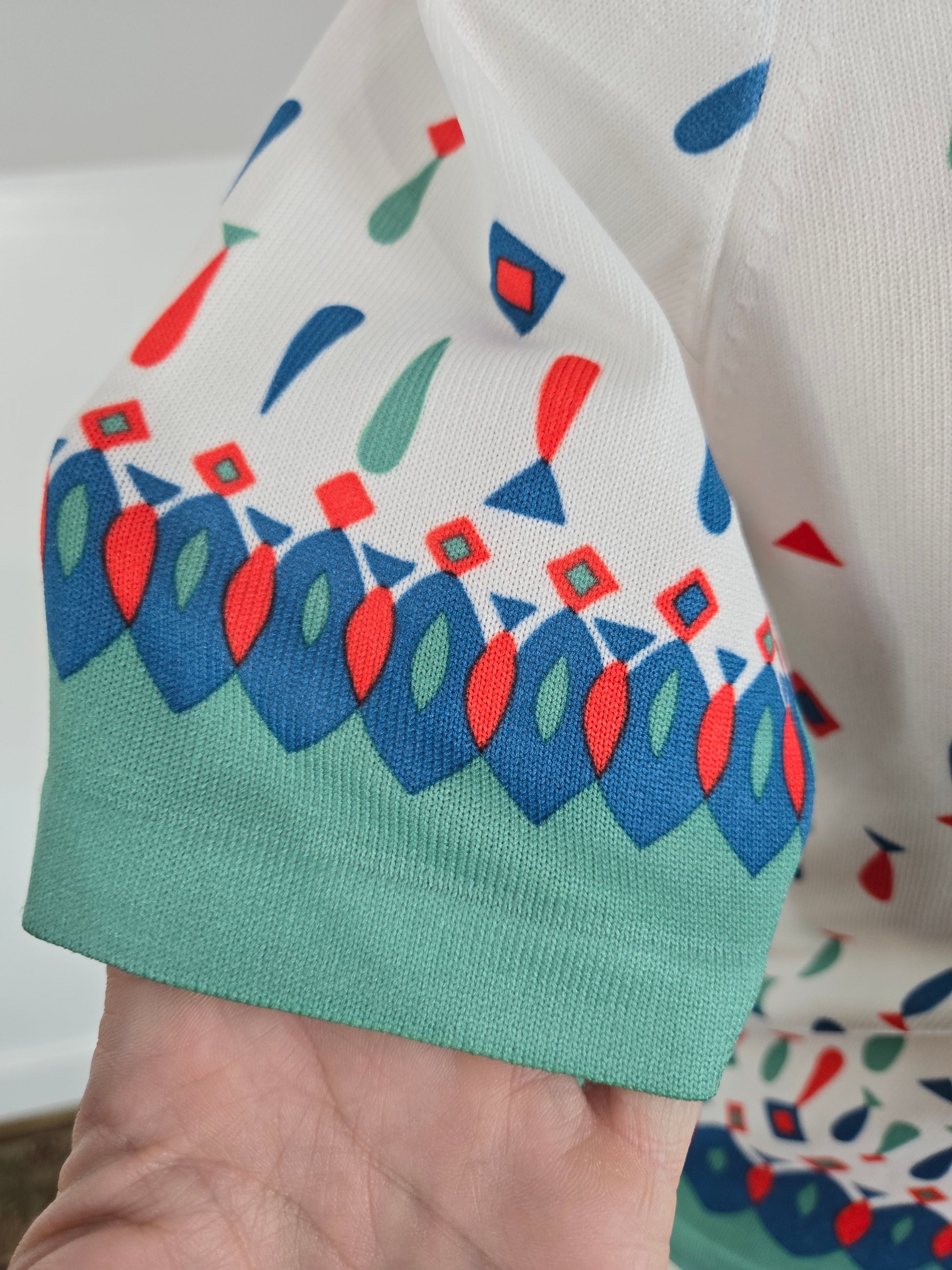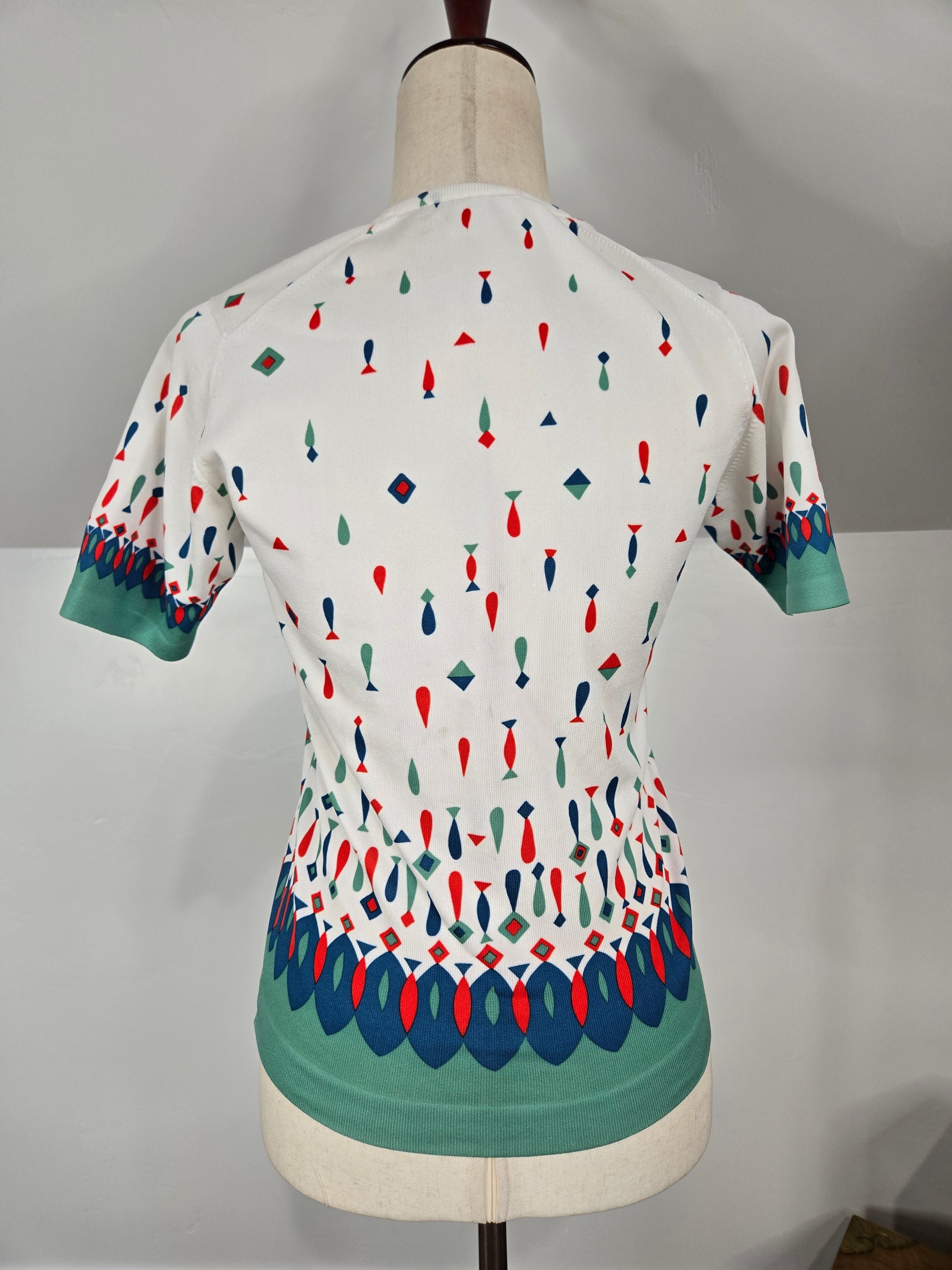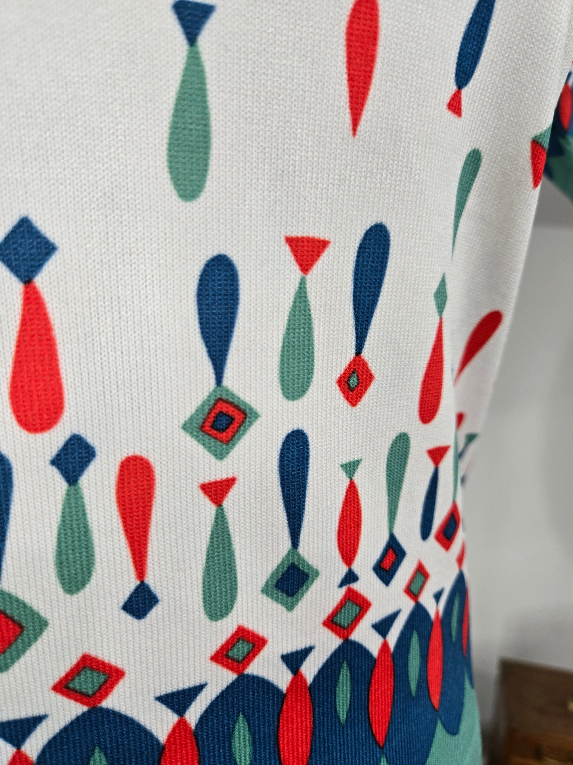 Neyret Paris made in France vintage mid century mod print knit tshirt. It is seamless at the hems, which is impressive for how old it is!! It is in amazing condition.