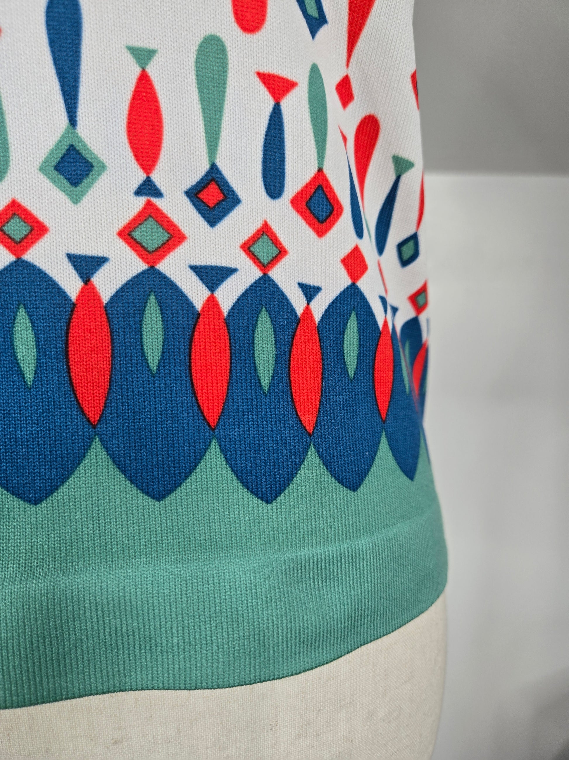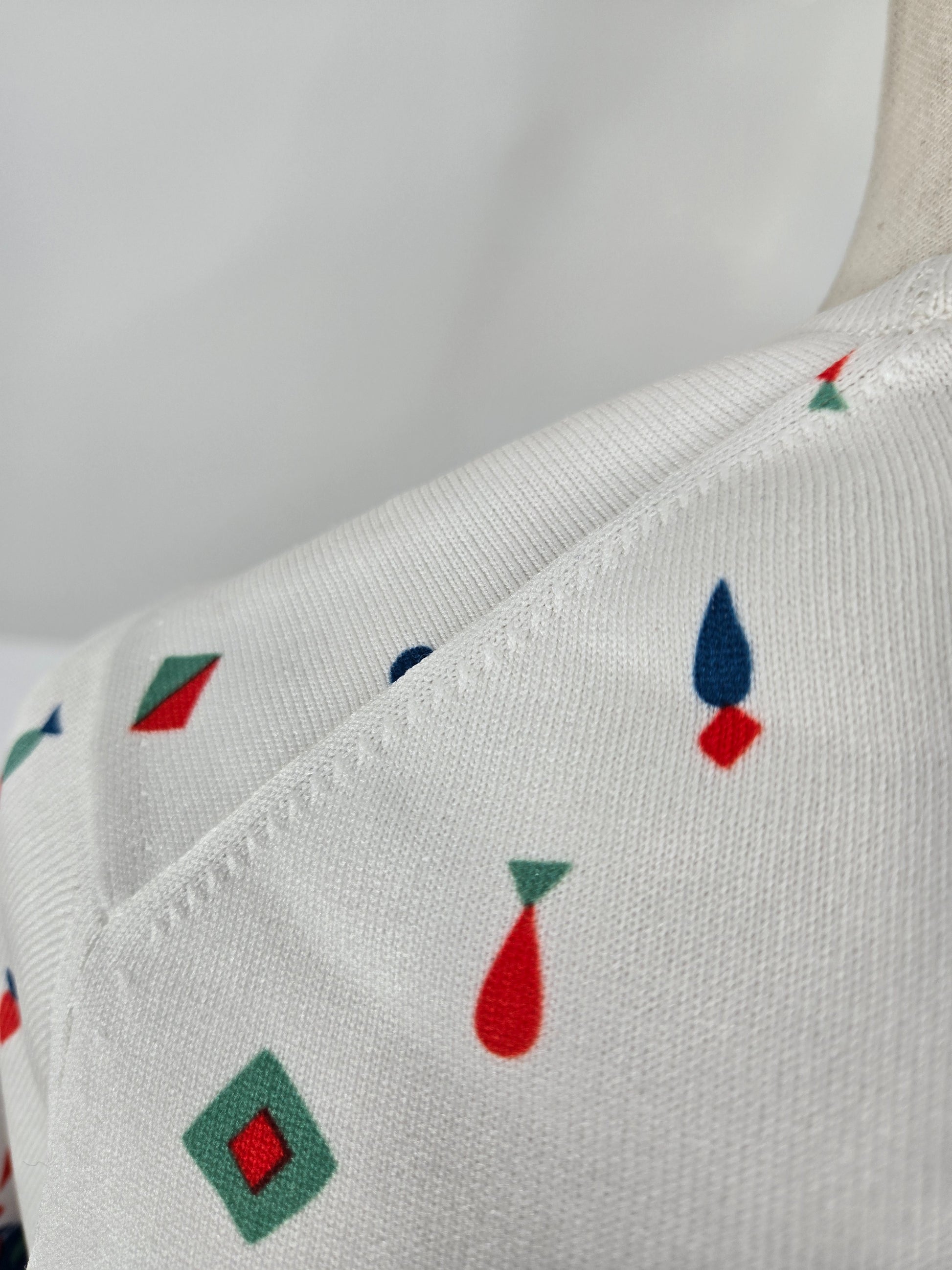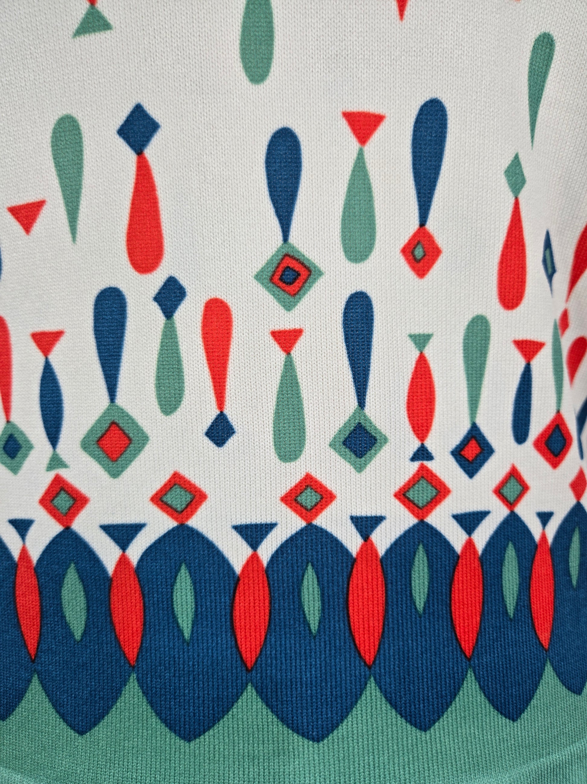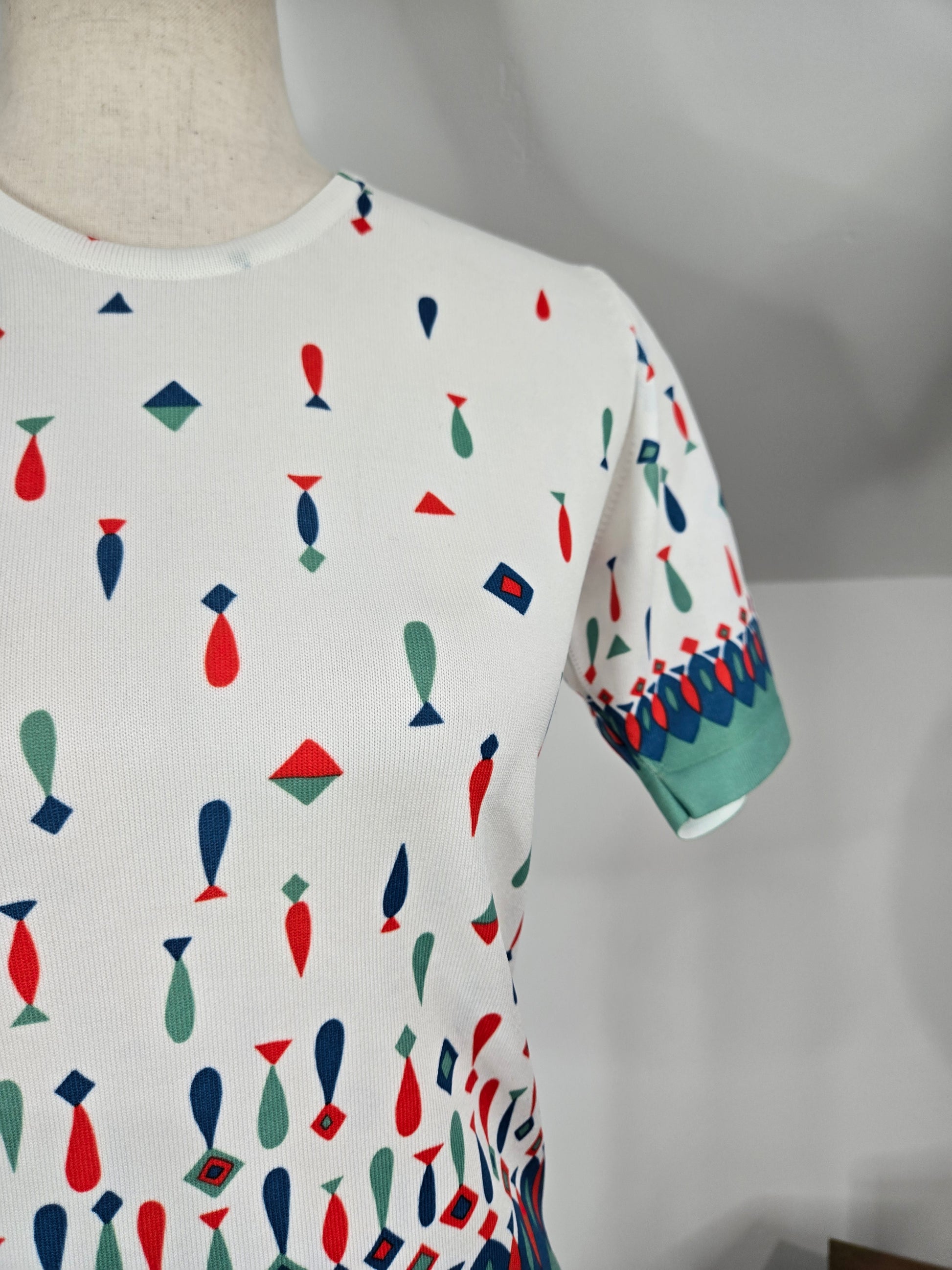 Neyret Paris made in France vintage mid century mod print knit tshirt. It is seamless at the hems, which is impressive for how old it is!! It is in amazing condition.