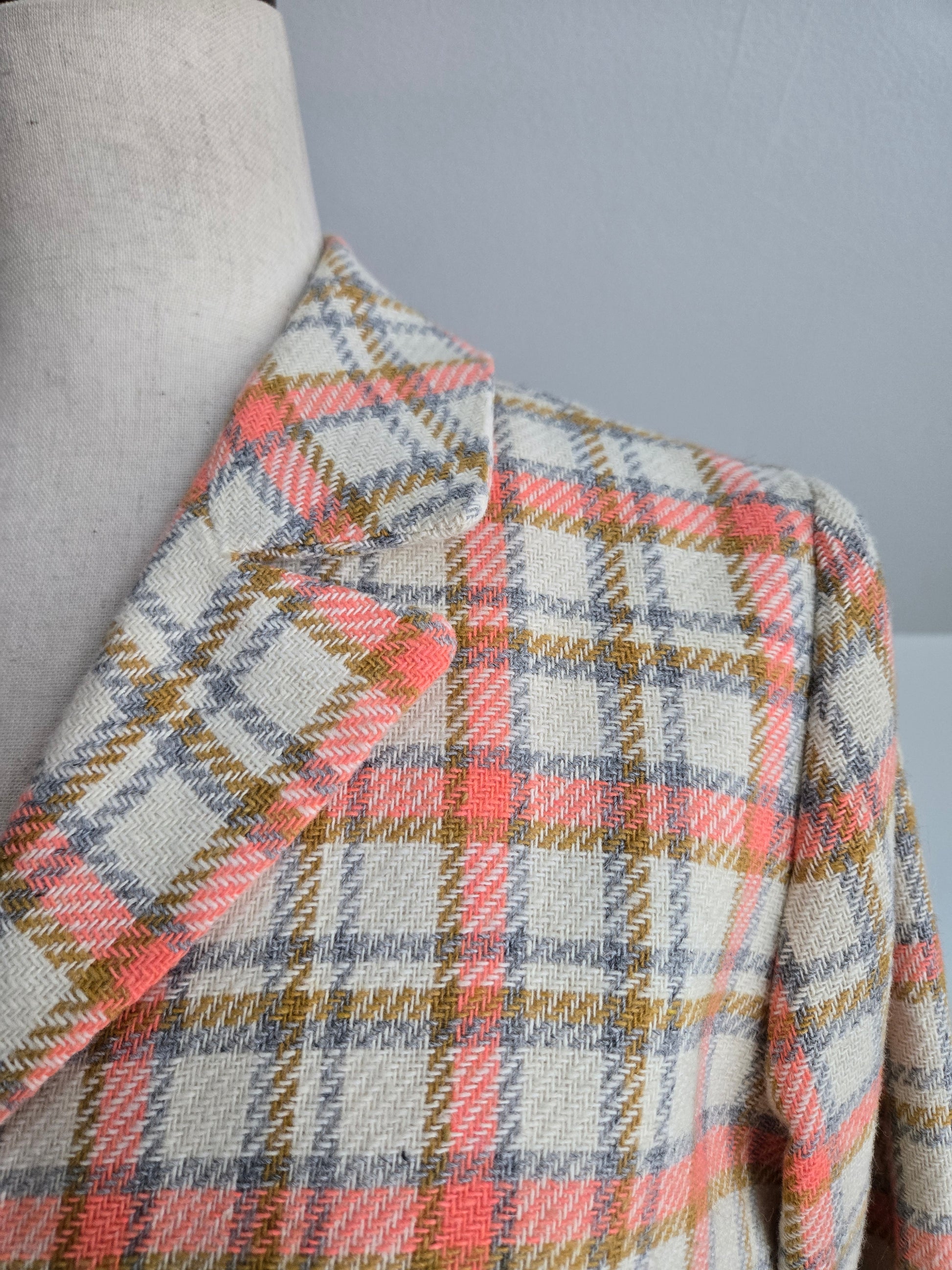 Vintage 70s Plaid Blazer and Skirt Two Piece Set - Medium/Large