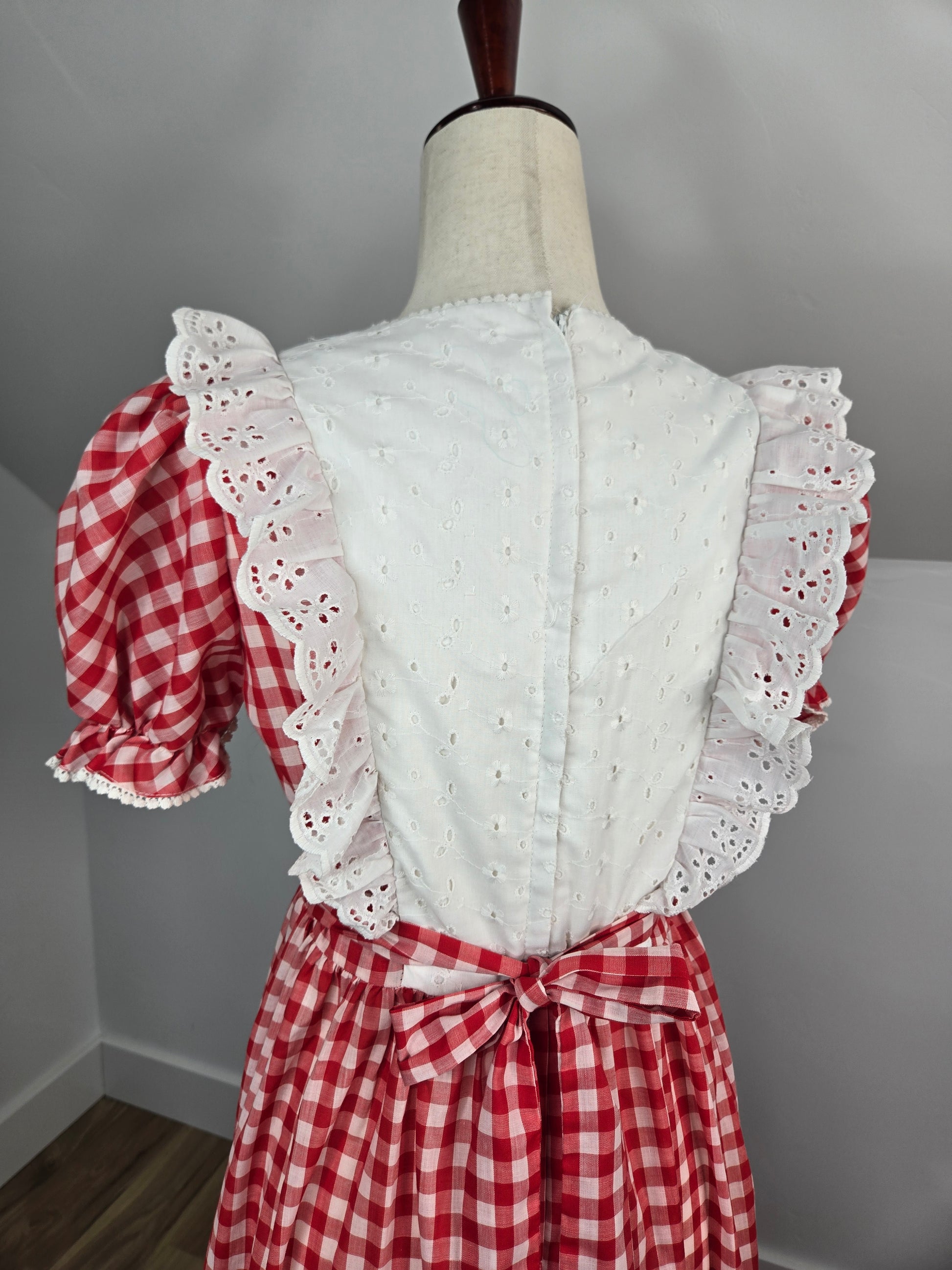 Vintage 60s Prairecore Red Gingham Dress with Eyelet Lace - small/medium