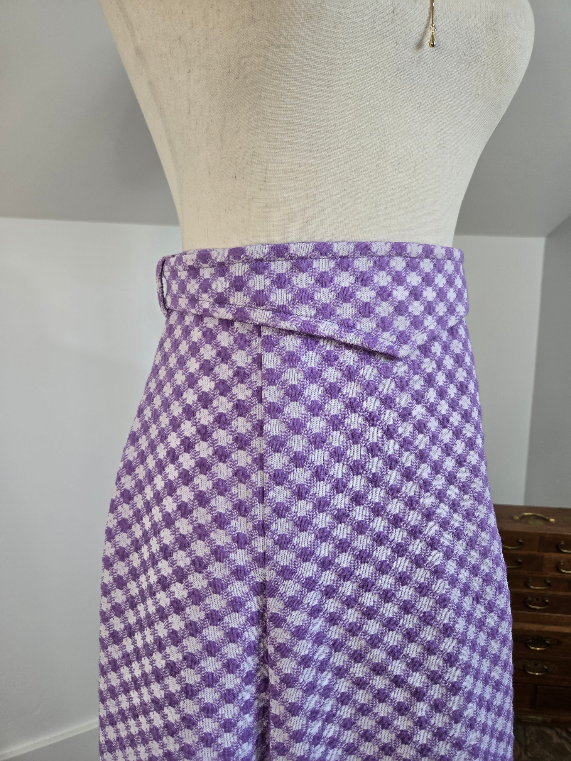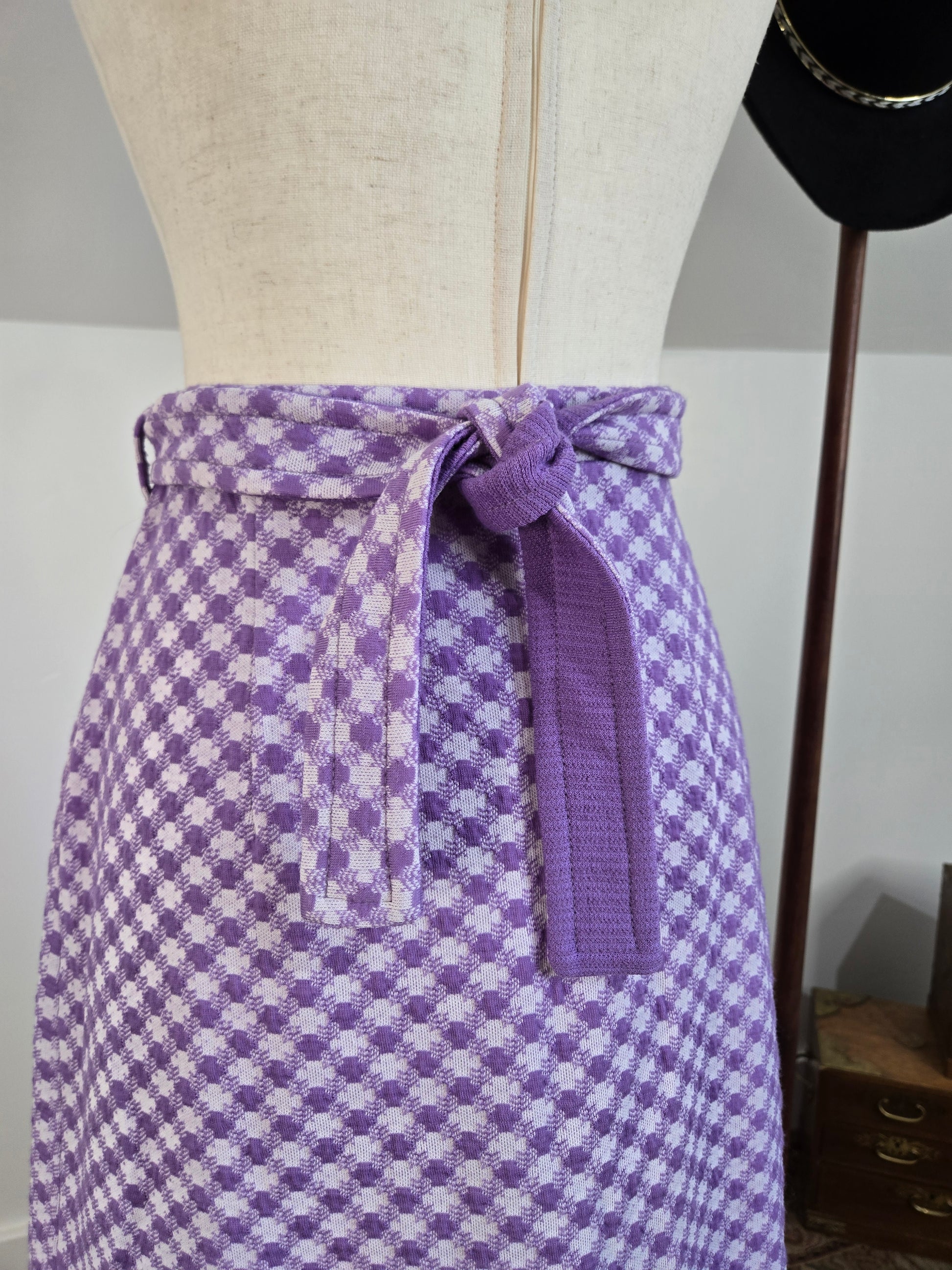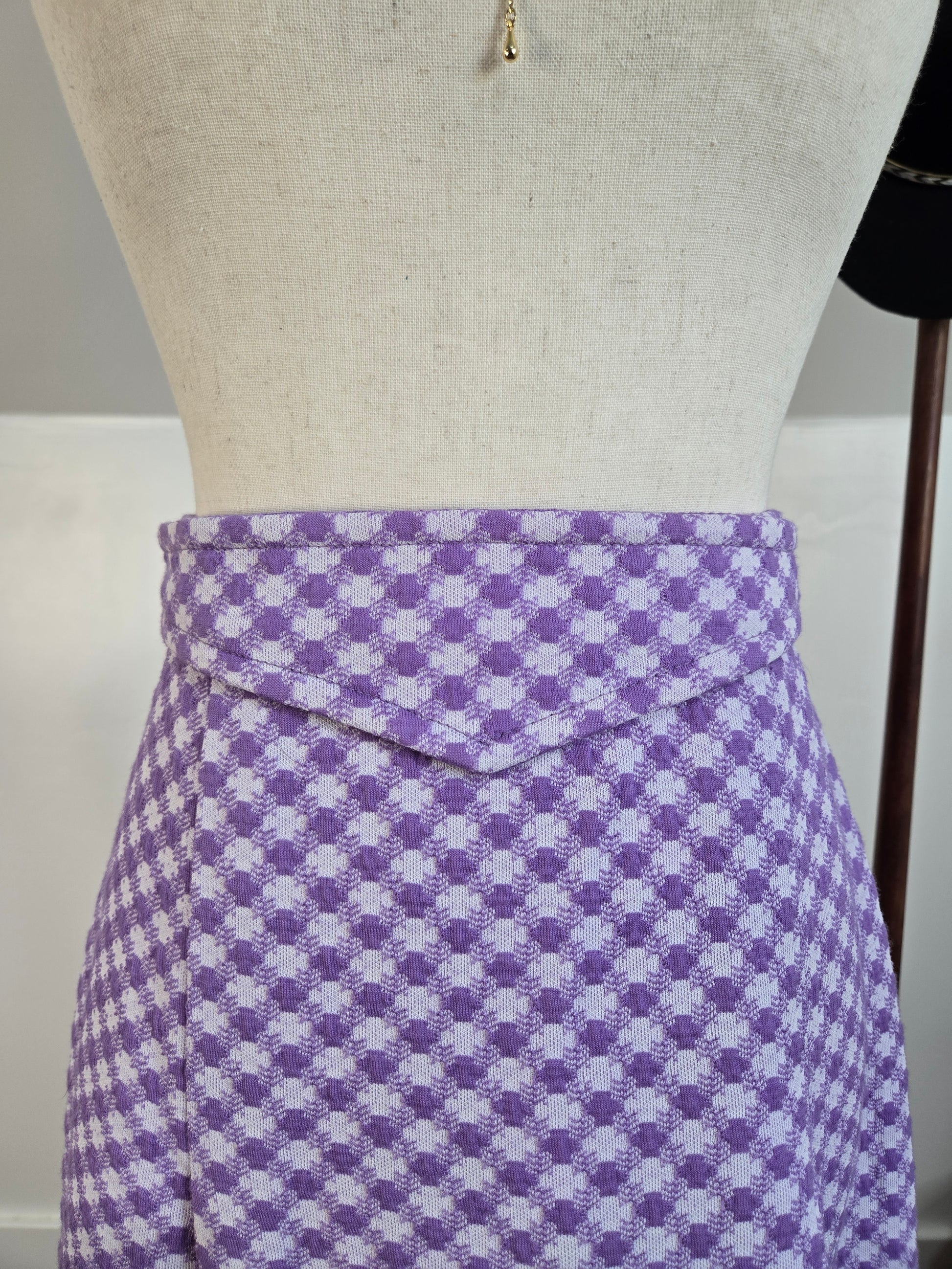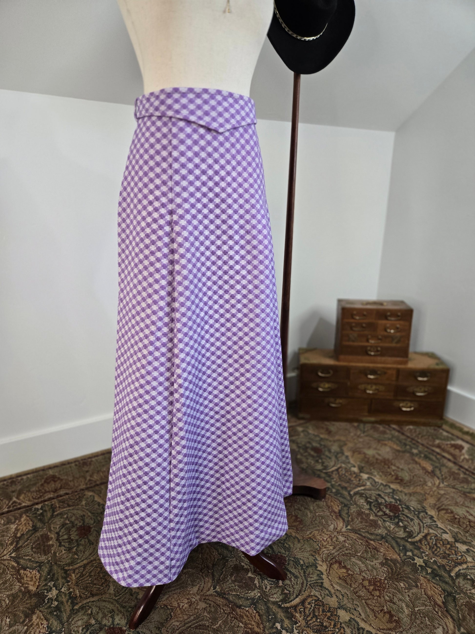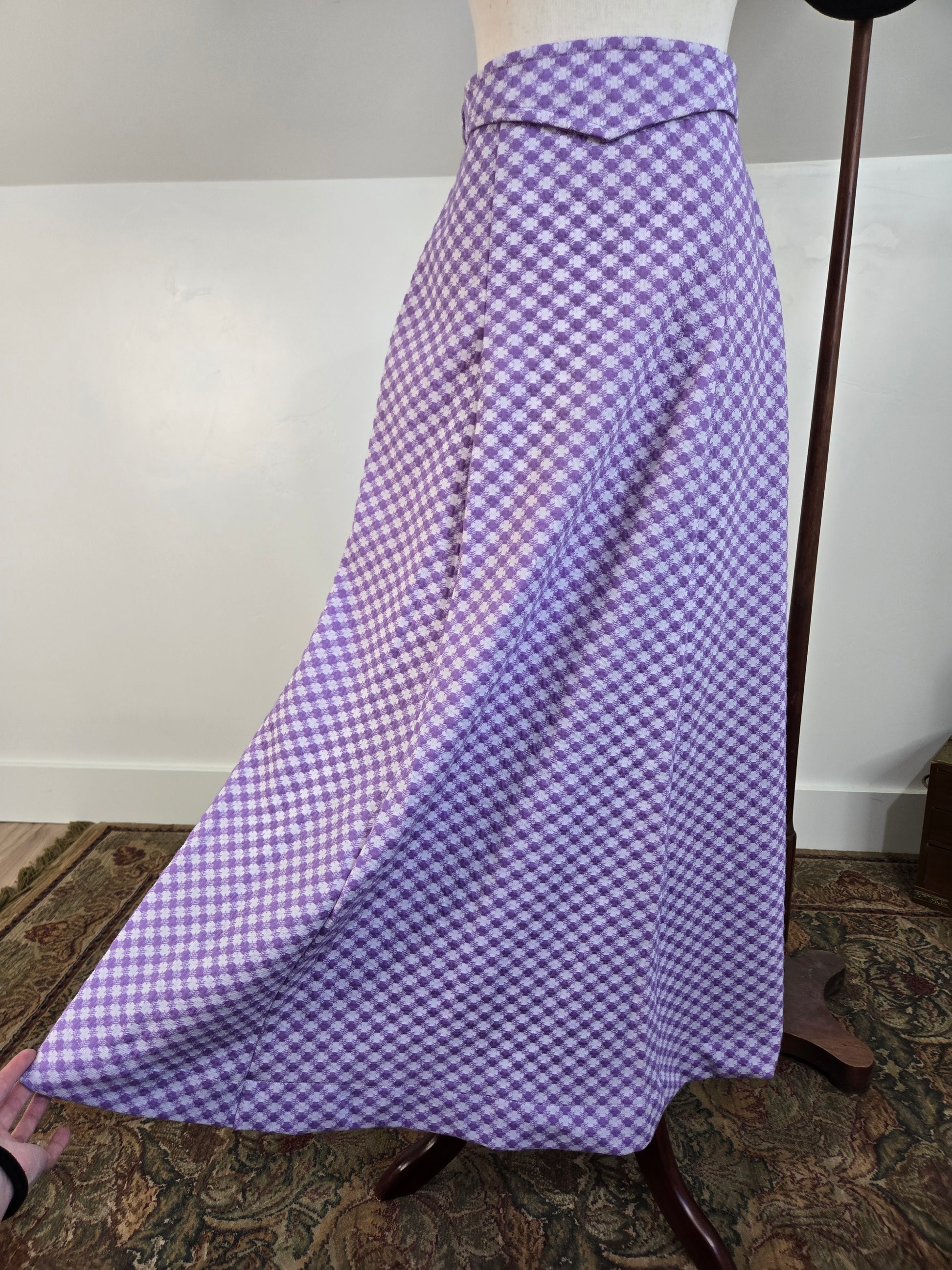Jantzen Vintage 70s Purple and White Checkered Knit Maxi Skirt - medium