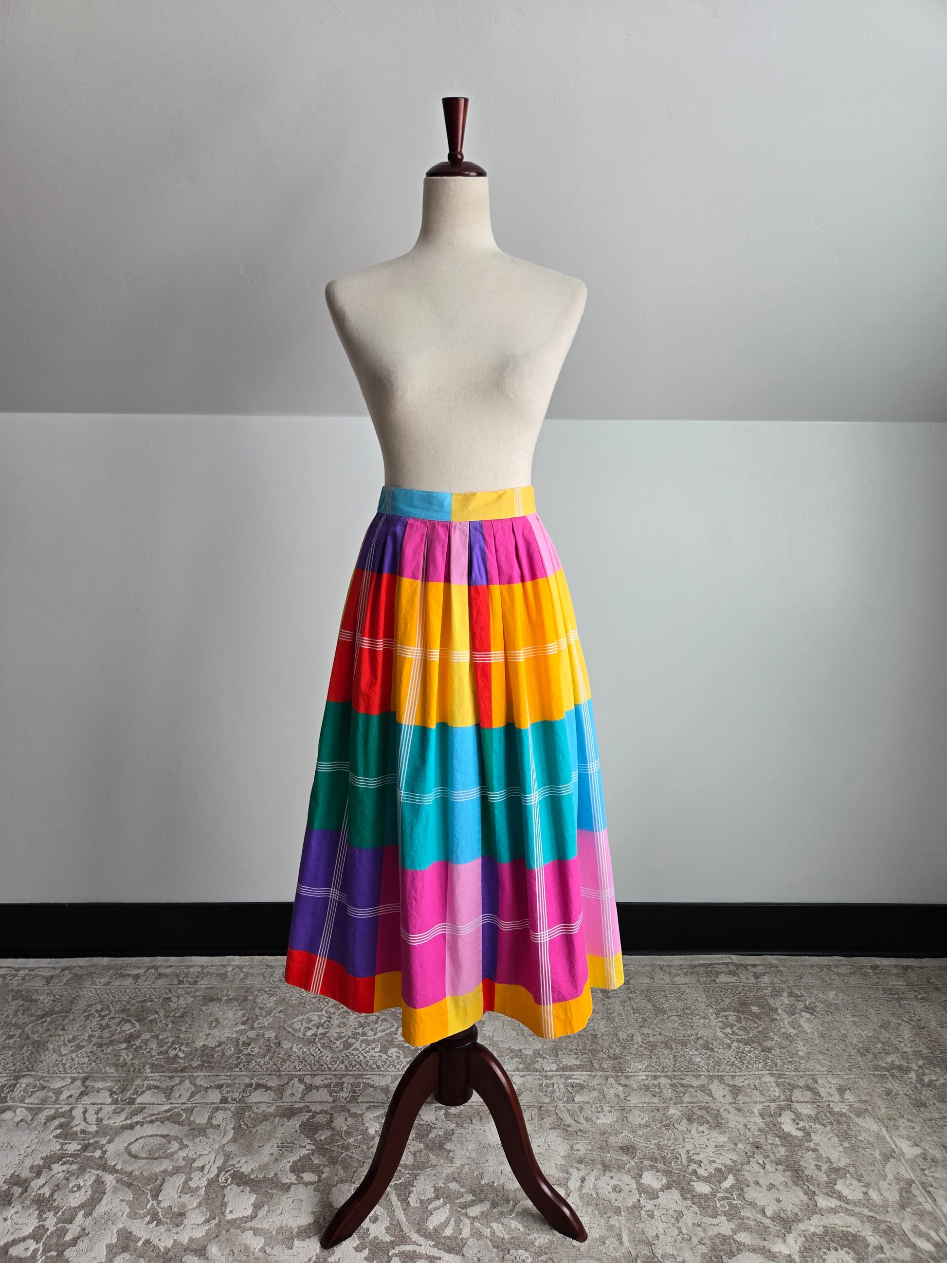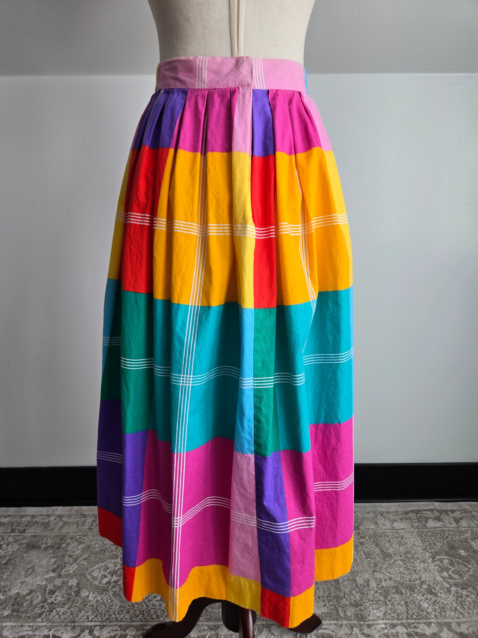 Century Boston Vintage 60s Rainbow Cotton Plaid Skirt - W26"
