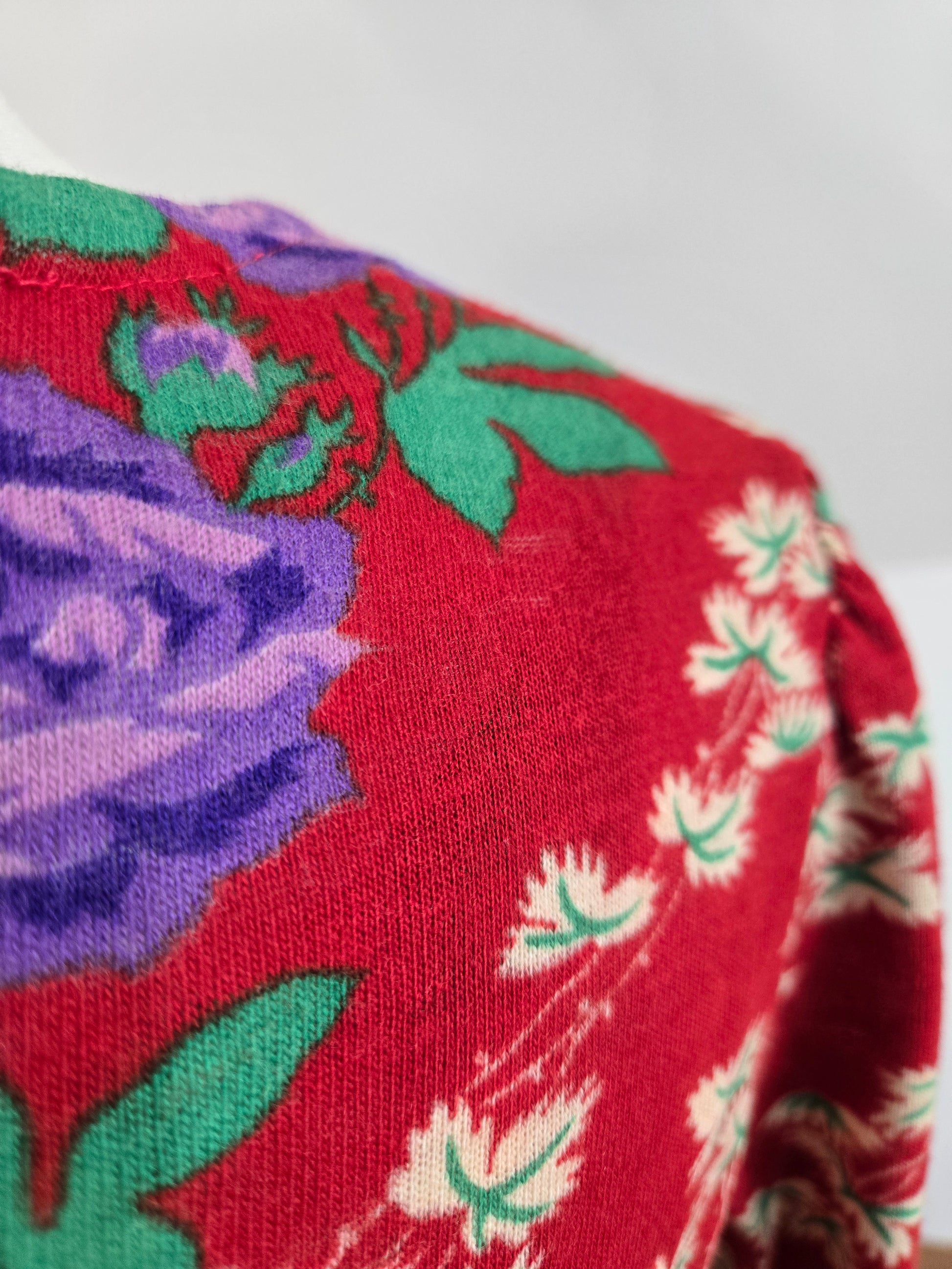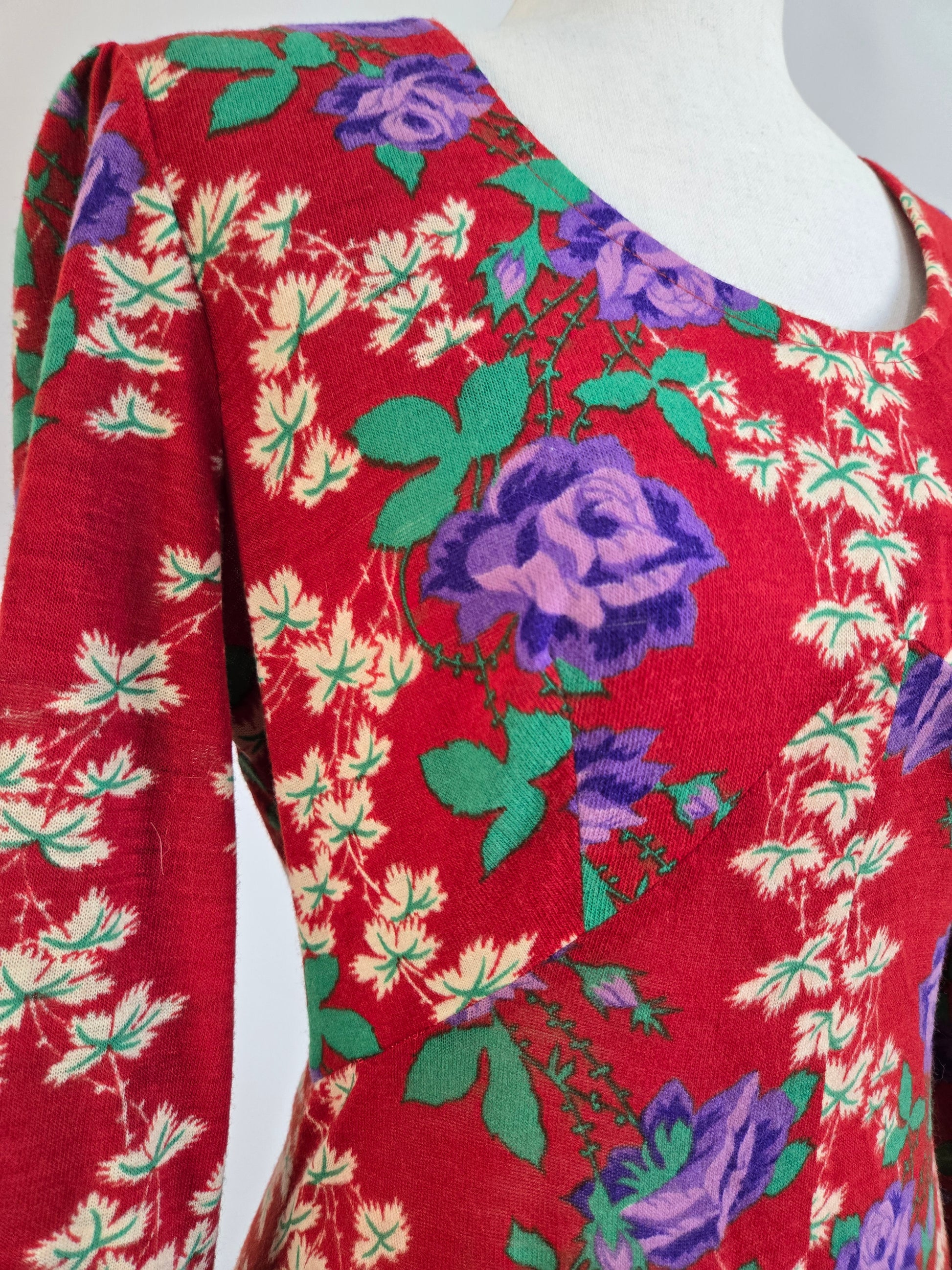 Vintage 70s Red Floral Psychedelic Print Maxi Dress - Small