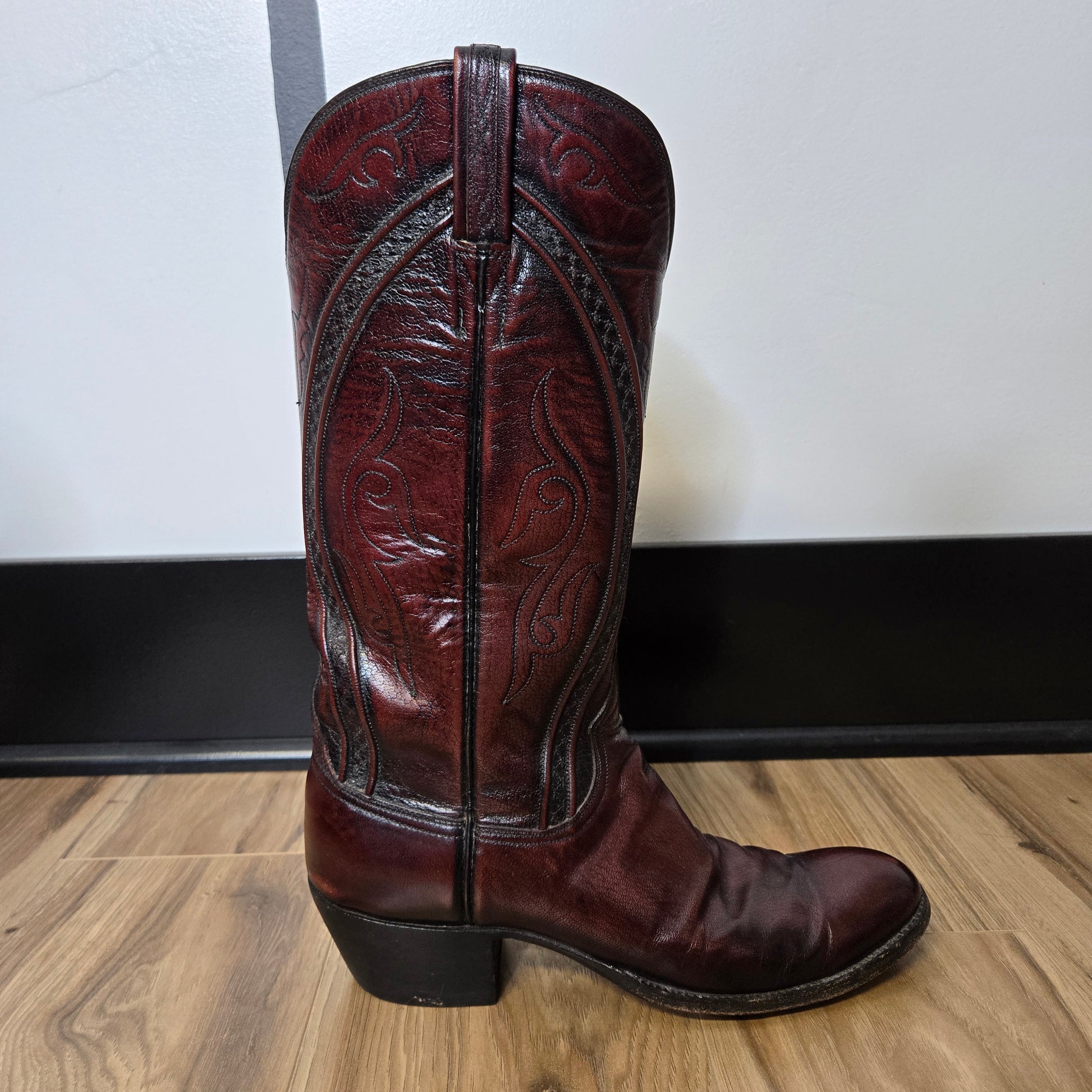 Lucchese San Antonio Black Cherry Leather Western Boots - Size 9 (womens)