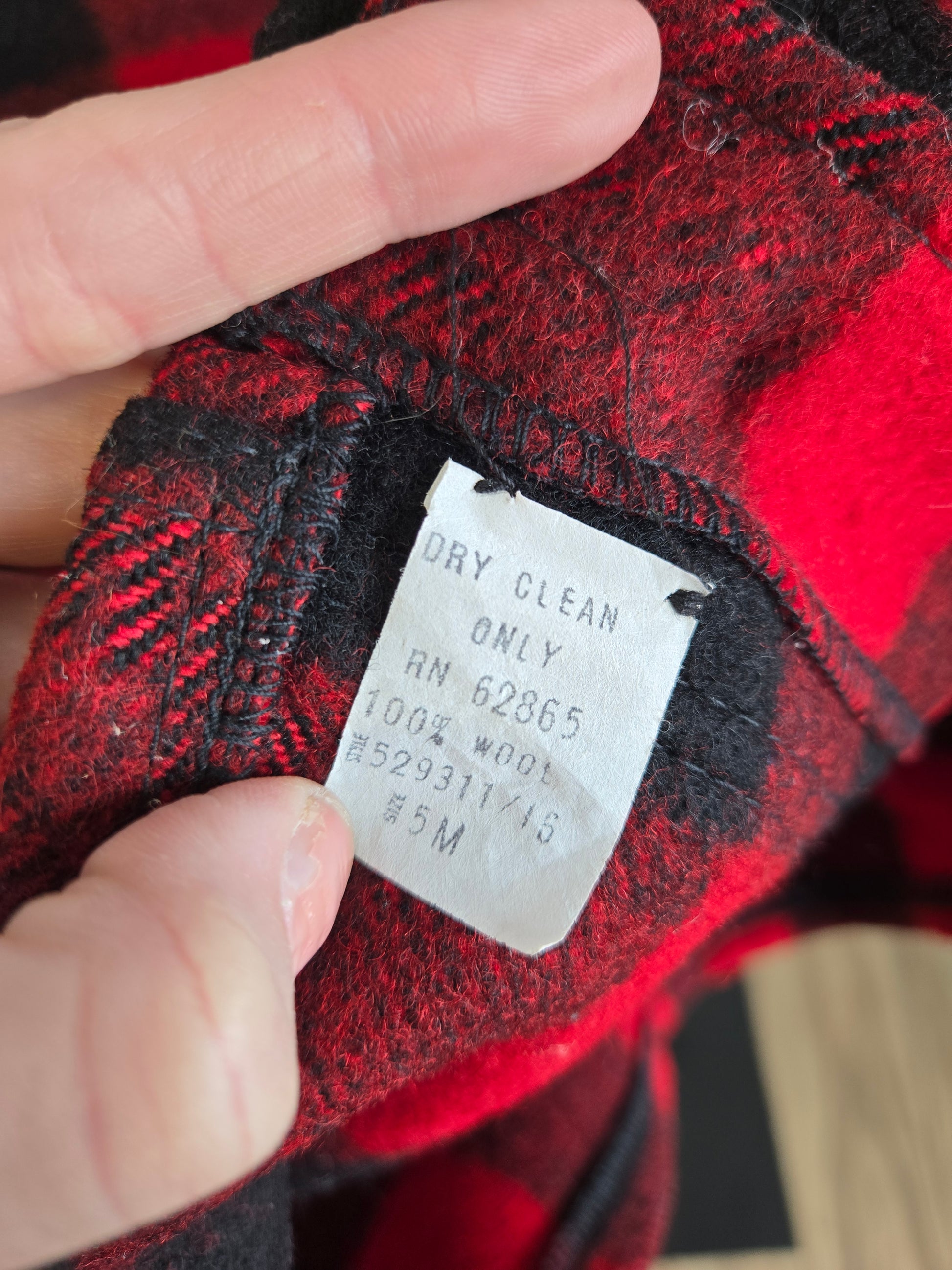 Vintage Ruff Hewn thick wool red and black buffalo plaid workwear vest. There are two hand pockets and then two utility pockets above those. It has a paper tag on the inside and is in perfect condition. Such a high quality piece!! This specific one in the thick wool is a rare find from a great brand.