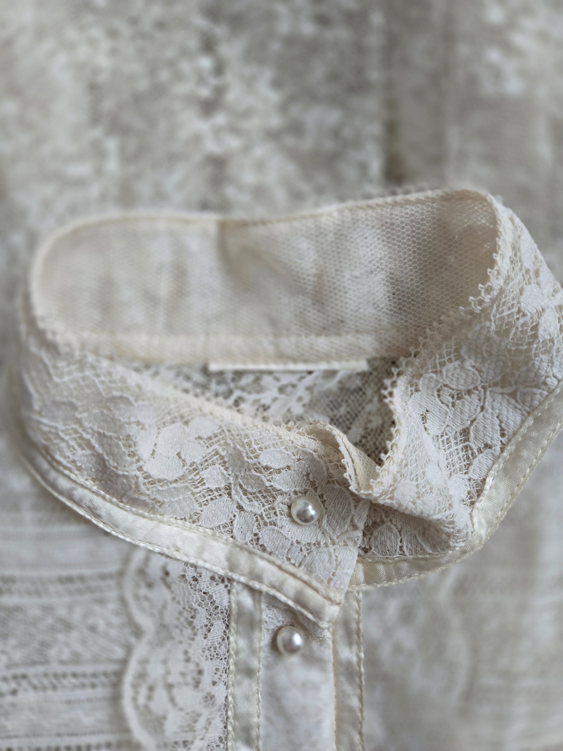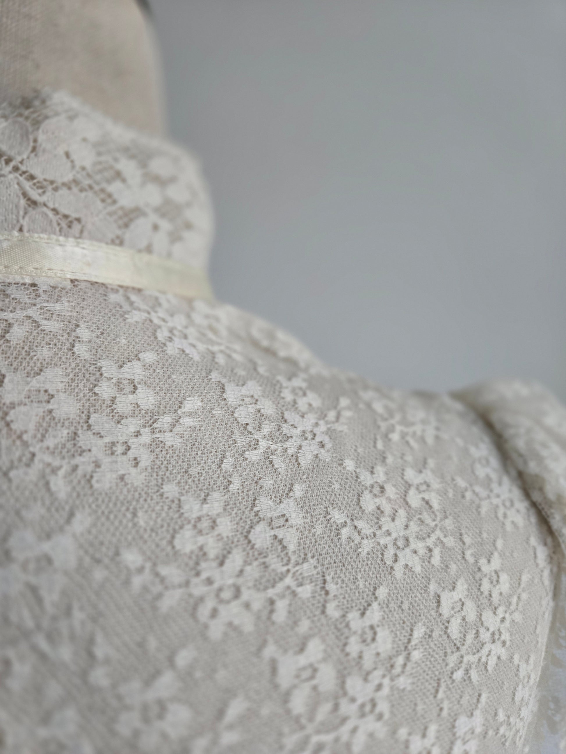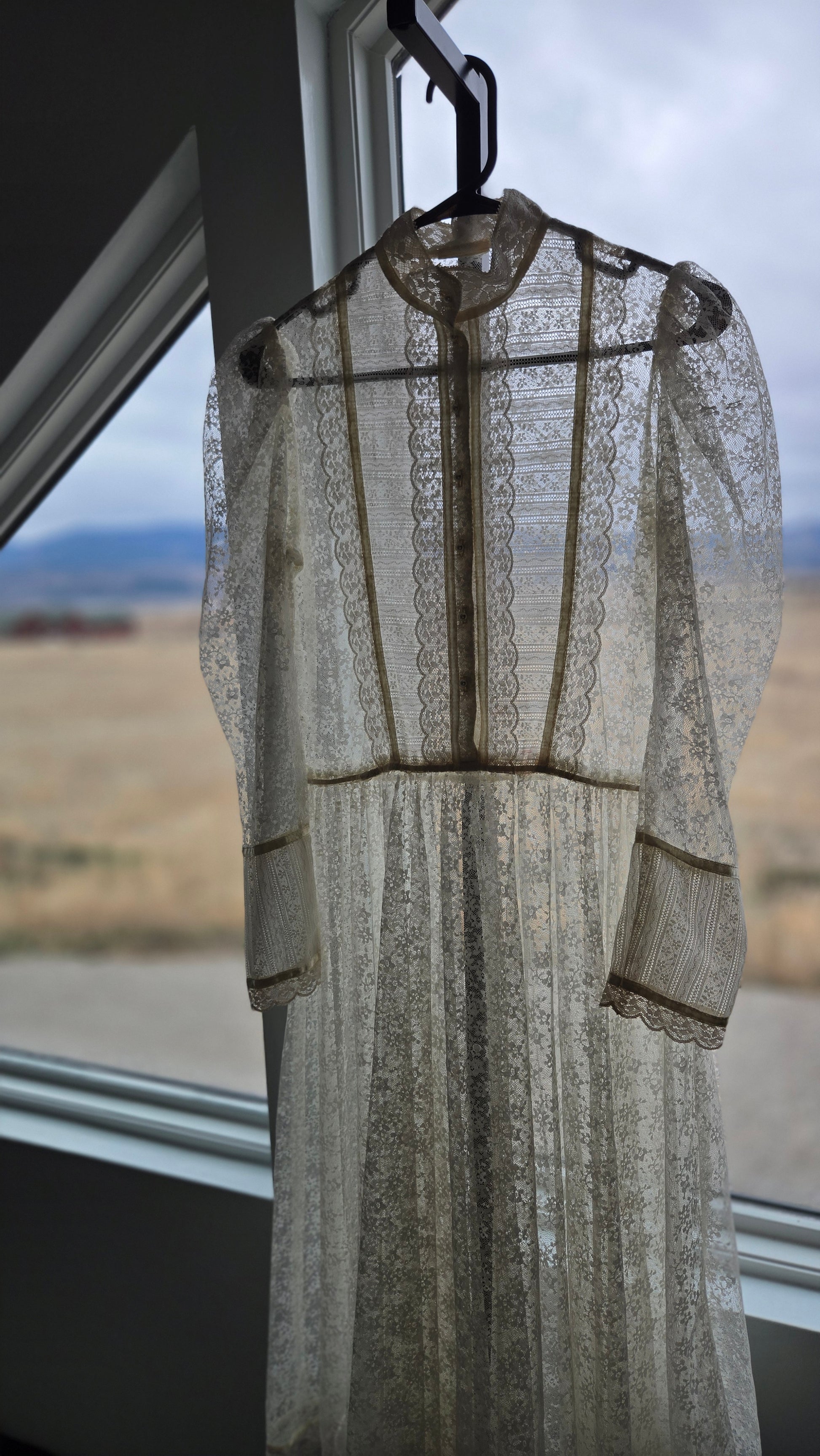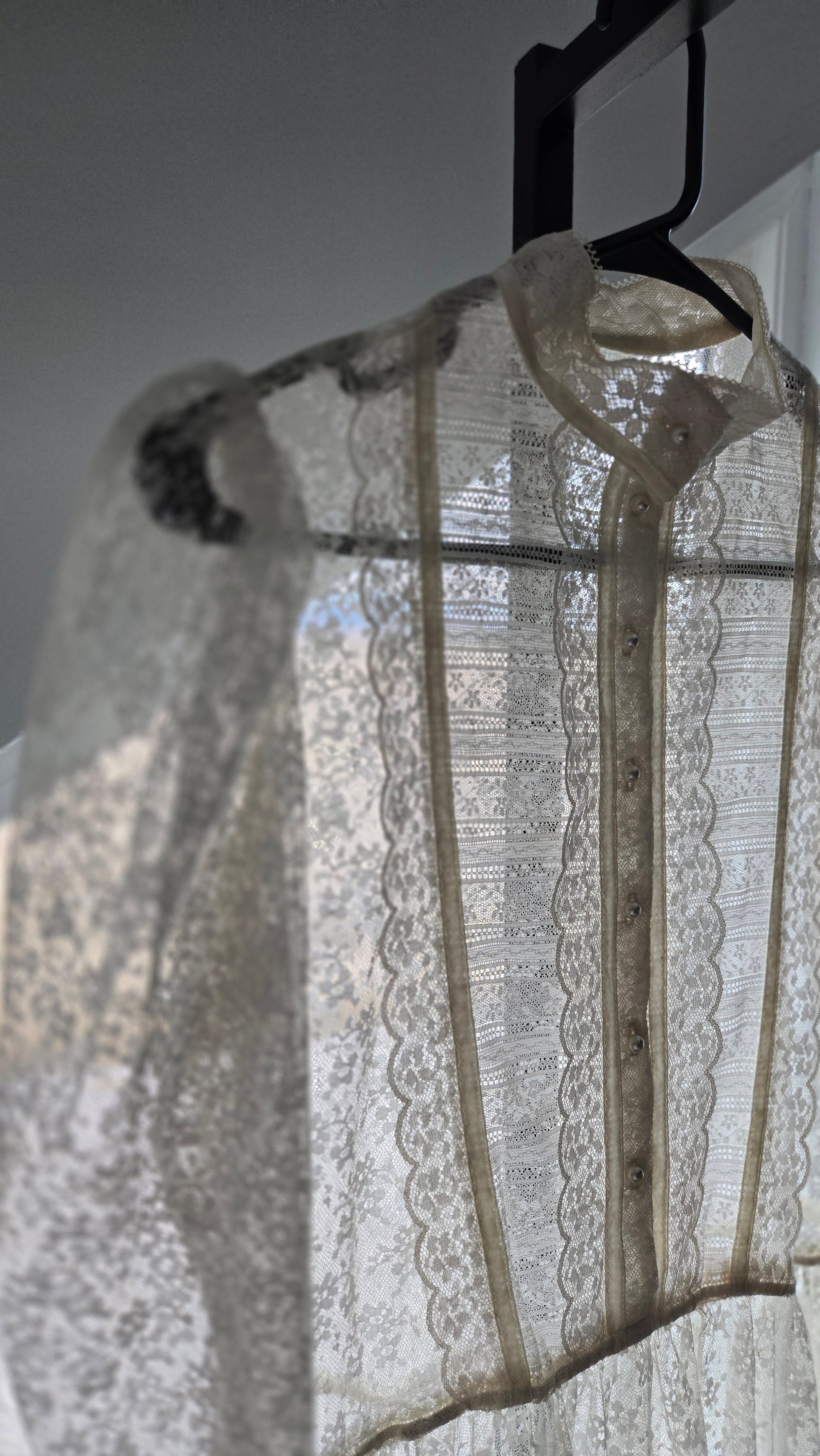 This dress does not have an internal label, but based off my knowledge, where I got the dress, constructions, fabrics, trims, size of cute tag, etc, I do believe this is an authentic Gunne Sax dress. It is amazing either way, but will be priced appropriately since it does not have it's tag. I have to imagine the tag was cut because it is a fully shear lace dress, but I understand it is not ideal. This lace is absolutely gorgeous and in great condition. It has a puff shoulder and tapered sleeve, with the classic Gunne Sax pearl buttons down the front. The waistband is stationary (so no stretch) and it has a fully skirt for some volume after the waistline. I have never seen such beautiful quality lace. It is truly mesmerizing and in perfect condition. This dress has been dry cleaned by me and is ready to wear.