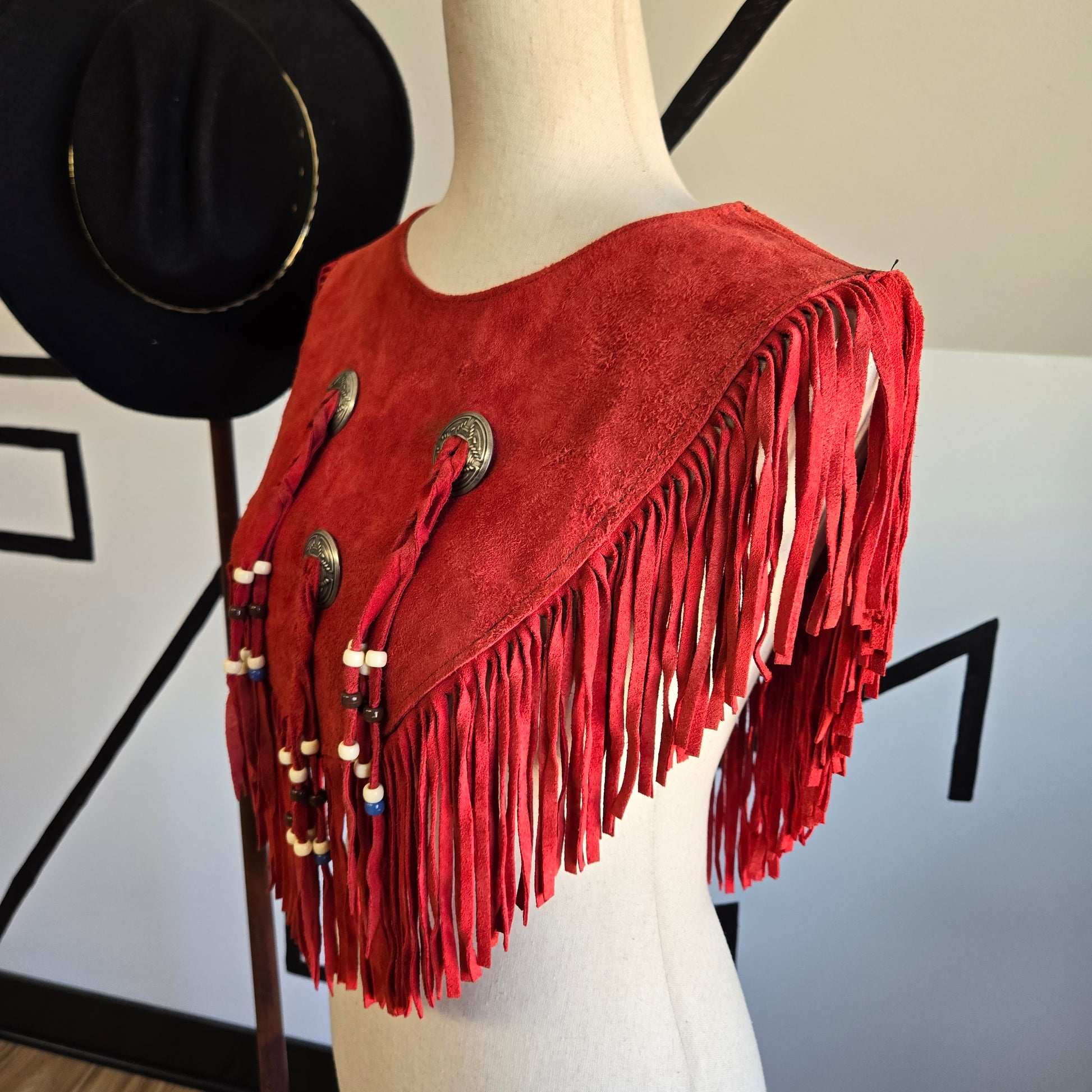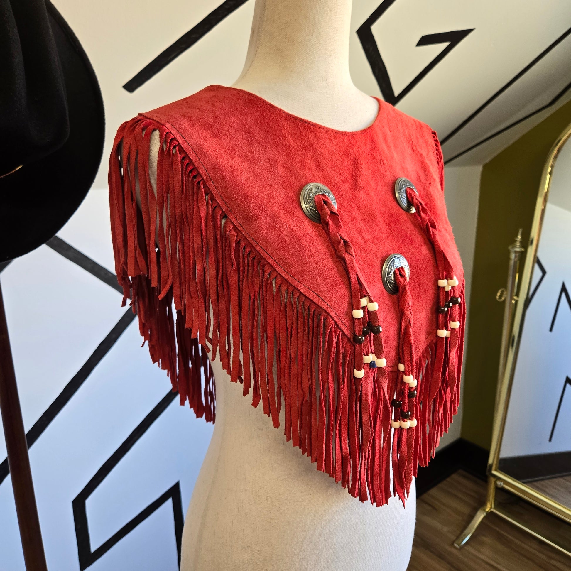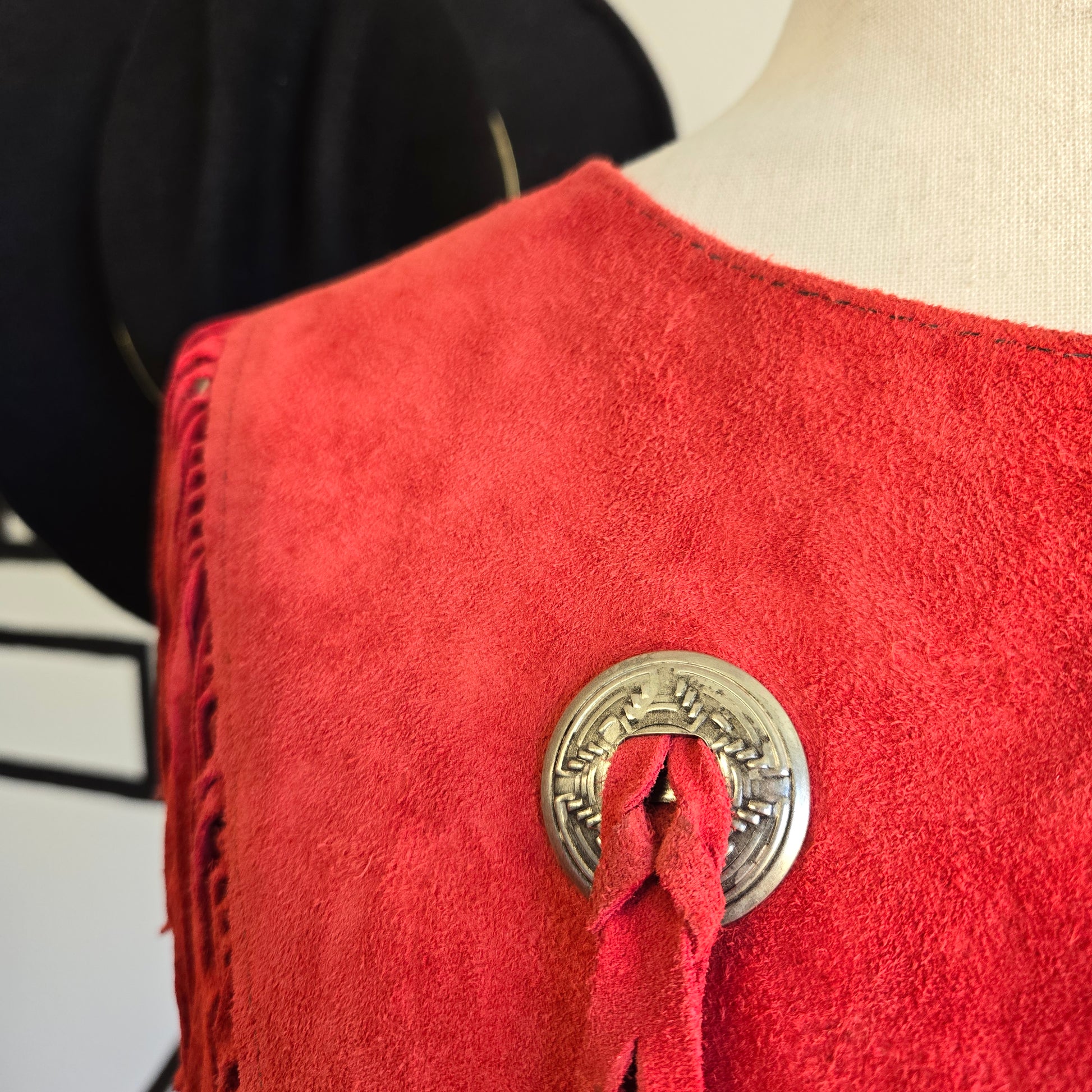 Steer Brand Red Genuine Suede Leather Fringe Cape - OS