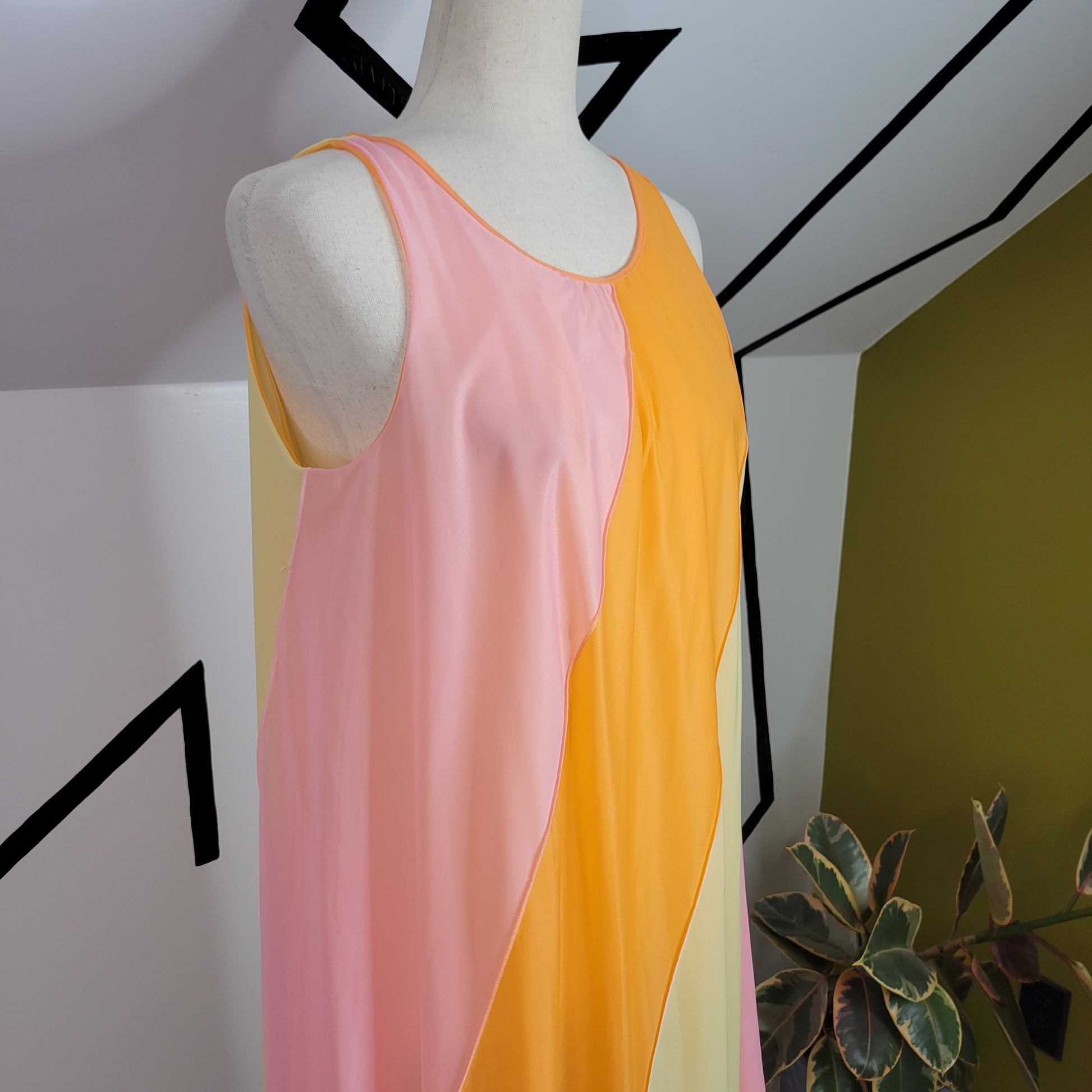 Vintage 60s Pastel Swirl Nylon Chiffon Lingerie Peignoir Dress - medium