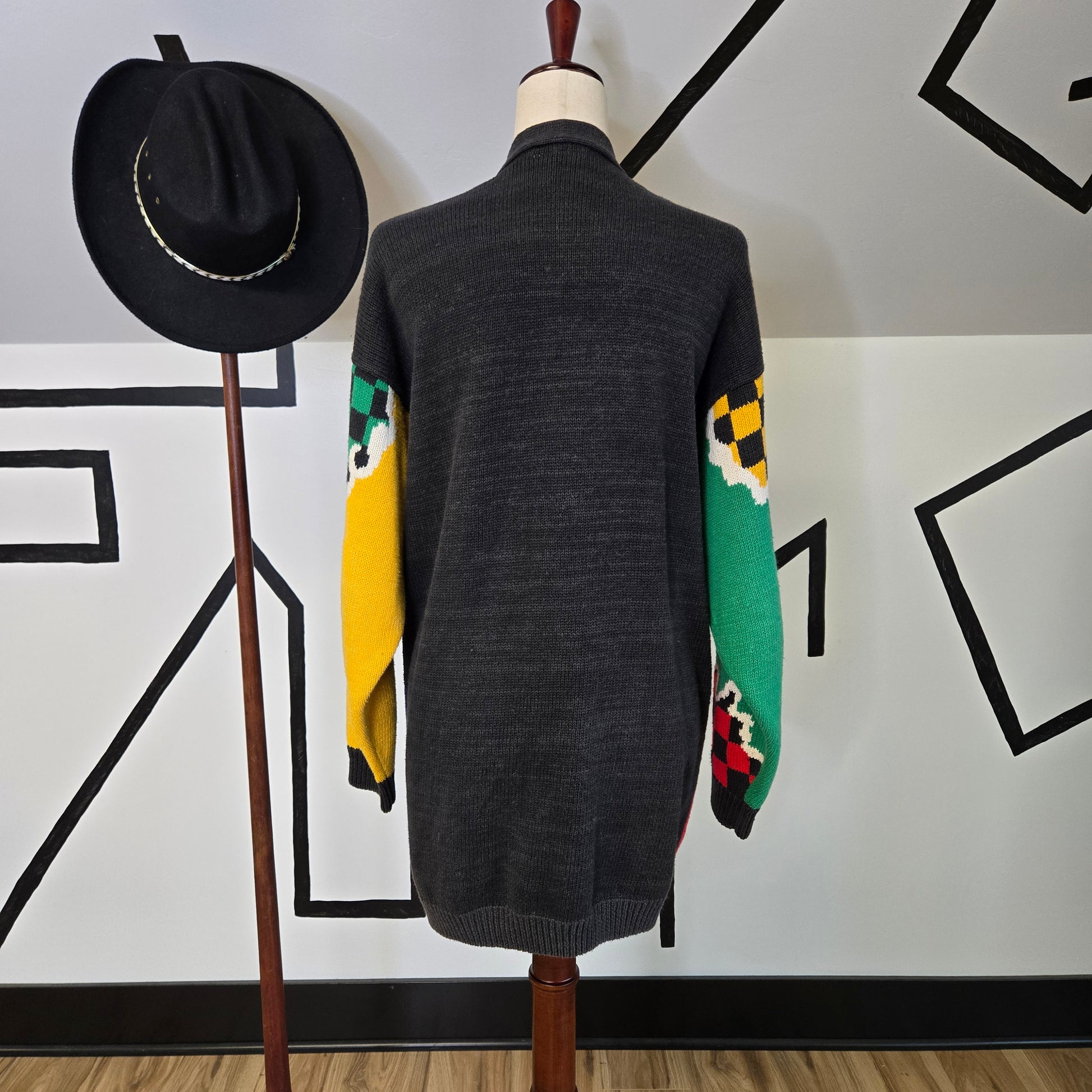 Vintage 80s Limited Edition Cotton/Ramie Primary Colored Checkered Cardigan - XL