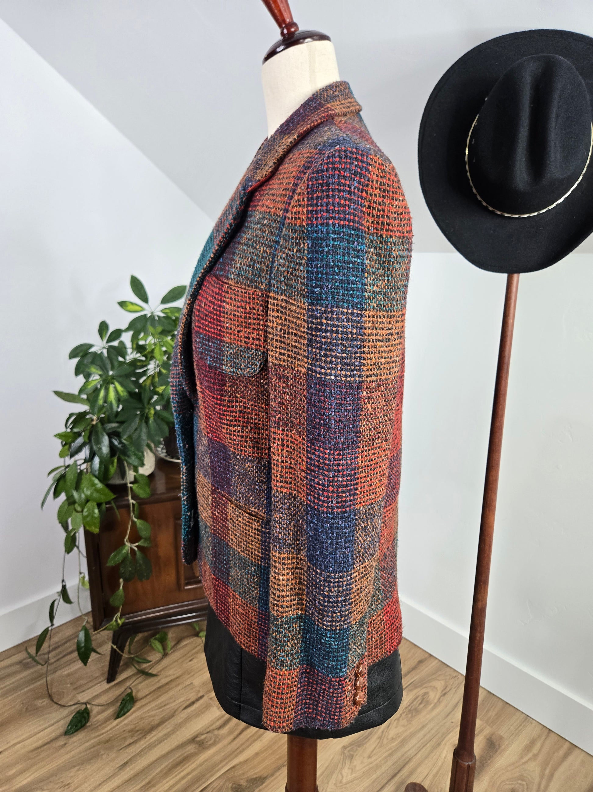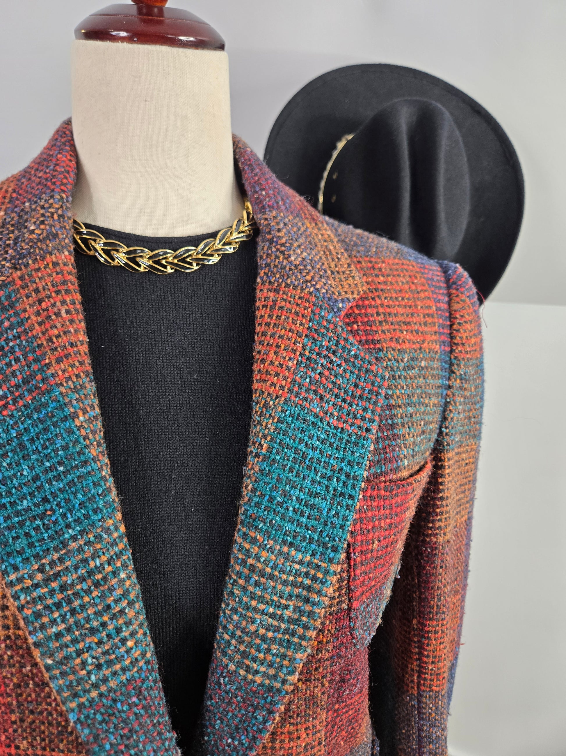 Liz Claiborne Vintage Union Tag Colorful Plaid Wool Blazer - small